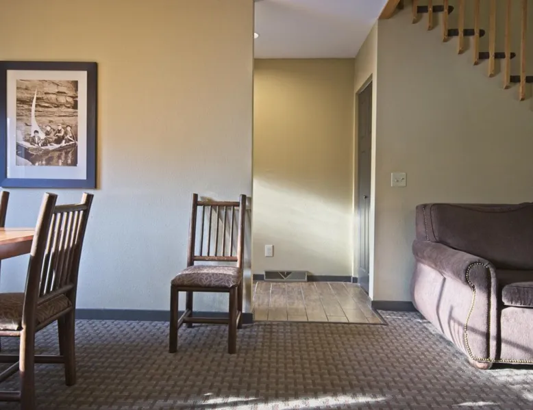 Relaxing Cabins & Spacious Townhomes + Indoor Pool & Golf - Wisconsin Dells Start your day with a dip in the heated indoor pool, then hit the trails or the nearby golf course. After an adventurous day, unwind in your cozy cabin or townhome in the beautiful Wisconsin Dells. The space 2 Bedroom Villa Occupancy: 6 people Room Size: 1,200 sq. ft. Bed Types: 1 King Bed, 2 Queen Beds Room Amenities: Full Kitchen 2 Bathrooms Living Room Fireplace Flat-Screen TV Washer/Dryer Other things to note Please bring a valid form of Picture ID. However, if you would like to change the name of the person checking in after you have provided this information, there will be a $99.00 name change fee. A $100 Pre-Authorization from any major credit card upon checking in is required. Cash is not accepted.