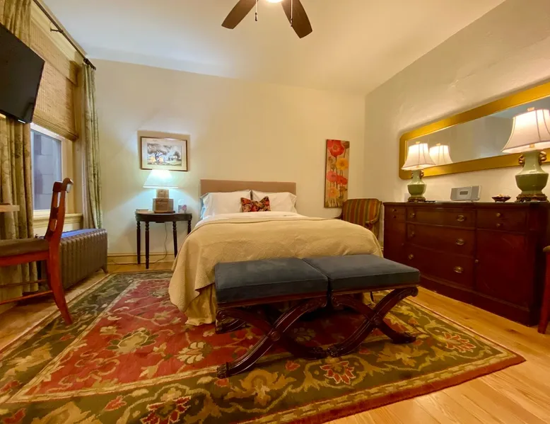 Ingenious in its compact layout, the Roland offers intimate comfort in the heart of St. Louis' historic and fabulous Central West End. Weekly housekeeping is included. The space The Roland is a studio apartment and sleeps up to two people. Upon arrival, soak in the original clawfoot bathtub (or take a shower if you prefer). After walking back from an excellent dinner in the neighborhood, sleep between soft sheets on the Roland's top-quality Queen-sized bed. Before your arrival, the Roland will be stocked with welcome teas and treats, freshly roasted coffee, and light breakfast foods to start your stay. You will find a range of cleaning supplies and complimentary toiletries (soap, shampoo, conditioner, Q-Tips, etc.). To keep rates low, we do not replenish these items during your stay. Enjoy excellent lighting and special storage space for your luggage, over the closet. High-speed internet access is included. The smart TV has an antenna for access to local stations. The Roland's kitchen includes a toaster, coffee maker, gas range, frost-free fridge and dishes, pots, pans and linens. The Roland has a hair dryer, iron & ironing board. While the Roland is on the first floor, please note that the apartment is accessible only by climbing a half flight of stairs from the lobby up to the first floor. Smoking is prohibited in the apartment or anywhere on the premises. Pets are not allowed in the Roland. Upon making a reservation, you will be notified of SF Shannon's House Rules. Creation of a reservation indicates acceptance of SF Shannon's policies. LAUNDRY & HOUSEKEEPING For your laundry, a laundromat is available in the building's upper lobby. We provide weekly housekeeping. We will make the bed, swap out dirty towels and linens, dust and vacuum. Housekeepers do not wash dishes. PARKING Parking is free and on-street on the block in front of the Roland, but please note: The Central West End neighborhood, especially along Euclid street, is home to a number of bars and restaurants. These establishments make our neighborhood great, but can also lead to some challenges. With so many establishments within walking distance, the neighborhood attracts many visitors, especially in the evenings and on weekends. This can make parking tricky. You may need to circle the block a few times, but most of our guests don’t report too much trouble getting a spot. GREAT LOCATION You do not need a car to live here. The Roland is on McPherson at Euclid, footsteps from fine restaurants and delightful shopping. Walk to three supermarkets (Aldi, Straub's or Whole Foods). The Roland is within walking distance of Forest Park, home to the St. Louis Zoo, St. Louis Art Museum, Steinberg Rink and other beloved institutions. The World Chess Club is three short blocks from the Roland. Walk to Washington University Medical Center & Barnes Hospital. One-of-a-kind historic architecture, restaurants, coffee houses and so much more are footsteps away. It is easy to take transit to the world-renowned Gateway Arch, which is five miles east. It is a short walk south on Euclid to Metrolink, the city's regional rail system. From the Central West End Metrolink stop, it is a 20-minute ride to St. Louis Lambert International Airport. IS IT SAFE? Since all SF Shannon apartments are in the historic core of St. Louis, we occasionally receive the question: “Is it safe?” This question is impossible to answer, because we typically know nothing about the person asking it. Your host lives within walking distance of the Roland. Karen and her husband raised their family in the neighborhood, and have always felt perfectly safe. WHY THAT NAME? The Roland is named after our dad, whose middle name is Roland. Dad owned the building from from 1975 until 2007. The Cambridge was his first large apartment building. Mom fought the decision to purchase to purchase the building. Dad, we are glad that you won the contest! Enjoy a unique accommodation as you explore the best of St. Louis! Guest access The apartment is all yours! There is a shared laundry room in the upper lobby and shared hallways with other guests and residents. Other things to note The Roland has central air conditioning. In the winter steam heat is provided by the building's boiler.