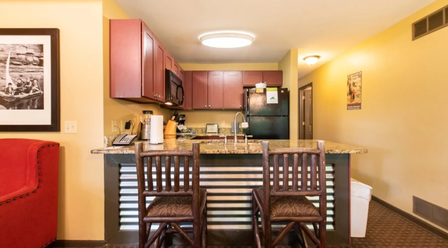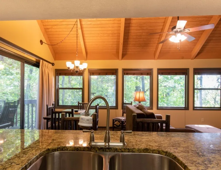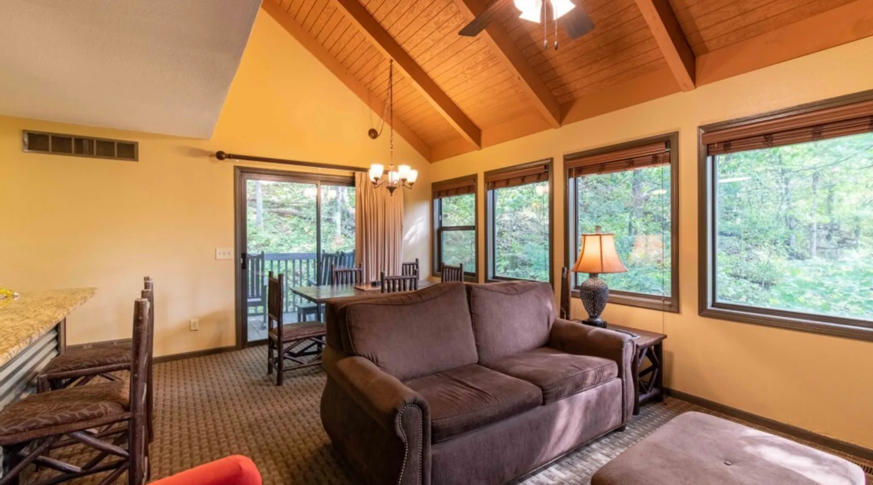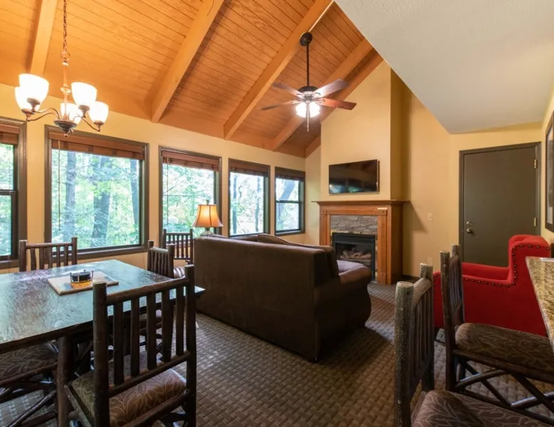 Relaxing Cabins & Spacious Townhomes + Indoor Pool & Golf - Wisconsin Dells Start your day with a dip in the heated indoor pool, then hit the trails or the nearby golf course. After an adventurous day, unwind in your cozy cabin or townhome in the beautiful Wisconsin Dells. The space 2 Bedroom 2 Bath Townhome Occupancy: 6 people Room Size: 1,200 sq. ft. Bed Types: 1 King Bed, 2 Queen Beds Room Amenities: Full Kitchen 2 Bathrooms Living Room Balcony/Patio Fireplace Flat-Screen TV Other things to note Please bring a valid form of Picture ID. However, if you would like to change the name of the person checking in after you have provided this information, there will be a $99.00 name change fee. A $100 Pre-Authorization from any major credit card upon checking in is required. Cash is not accepted.