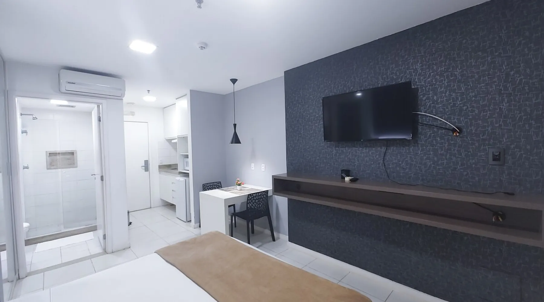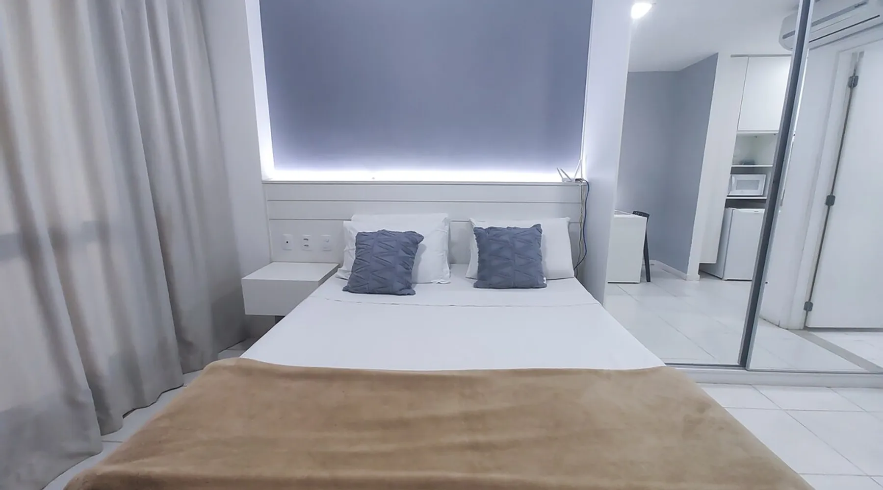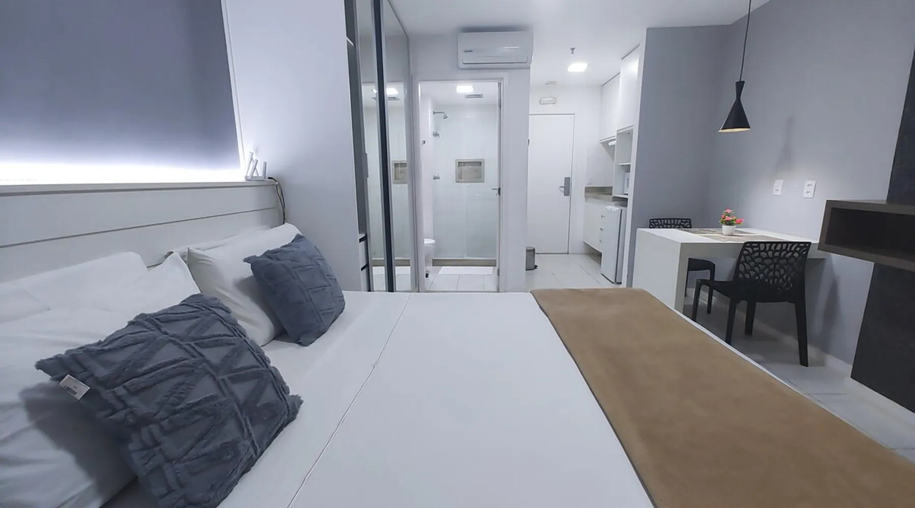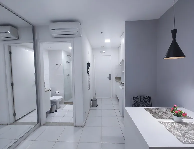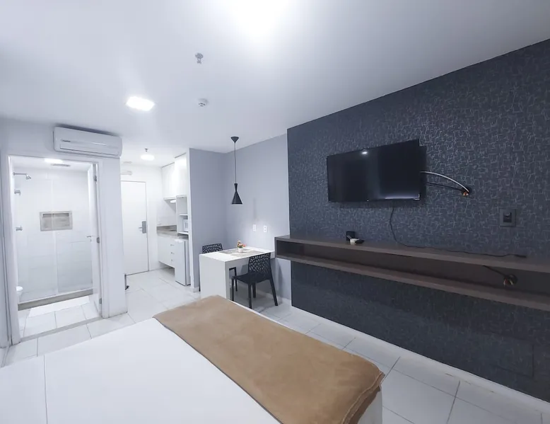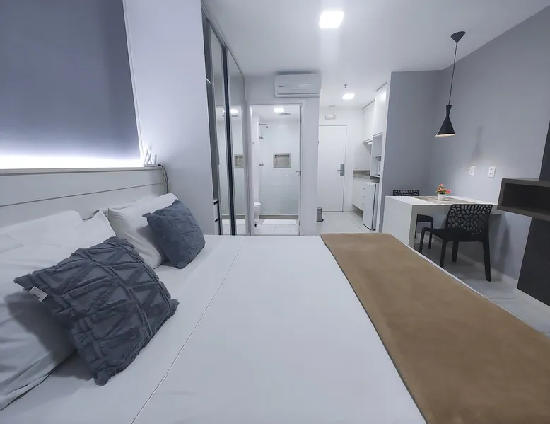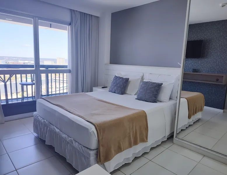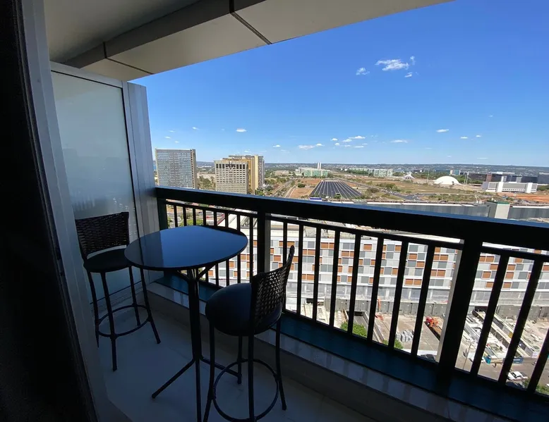 Flat on the 15th floor, located in the Setor Hoteleiro Norte de Brasília. Featuring stunning city views, this centrally located accommodation offers elegance and functionality, ideal for business or leisure travelers. The flat is equipped with free Wi-Fi, air-conditioning and a compact kitchen, ensuring a pleasant and convenient stay. In addition, the privileged location provides easy access to tourist attractions and business centers, ensuring a memorable experience in the capital. The space Enjoy a comfortable stay with a great location and a stunning view of the city, this space is ideal for up to 2 guests, with a structure designed for your well-being, including a cozy room, Guarantee a memorable stay in Brasília, where comfort and practicality meet. In the flat - Central Location - Double bed - Self Check-in - Flat-screen TV and work area. - Compact kitchen - Two-burner electric stove - Microwave - Minibar - Kitchen utensils. -Bathroom - Towels and toiletries. - Free Wi-Fi - Air-conditioning Common areas of the building: - Indoor pool - Rooftop pool - Gym - Garage included - Sauna - Restaurant in the building - Patio Guest access Guests have convenient and secure access to the condominium, with 24-hour reception available to meet their needs at any time. Modern elevators provide easy mobility, where this flat offers a panoramic view and all the essential amenities for a comfortable stay. The strategic location in the North Hotel Sector allows easy access to restaurants, cafes, shopping malls and tourist attractions, ensuring a complete experience in Brasília. Access to the building is done with the identification of all occupants at the reception for release, so the full name and CPF are requested to be included in the authorization. Other things to note The Setor Hoteleiro Norte is a strategic area in Brasília, located just minutes from the city's main tourist attractions and government structures. Located near the Eixo Monumental, it offers easy access to places such as the National Congress (about 5 minutes by car), the Esplanada dos Ministérios (approximately 7 minutes by car) and the Palácio do Planalto (about 8 minutes by car). It is a dynamic region, with a variety of hotels that cater to both business travelers and tourists. In addition, it is approximately 15 minutes by car from Brasília International Airport and about 20 minutes from Brasília Interstate Bus Station. Also close to the City Park (about 10 minutes by car) and the Mané Garrincha National Stadium, the North Hotel Sector is a convenient choice for exploring the sights and participating in sporting events in the Brazilian capital.