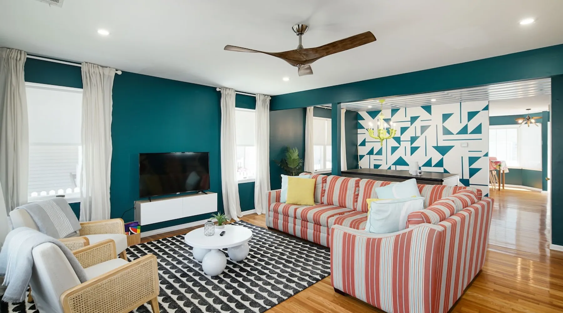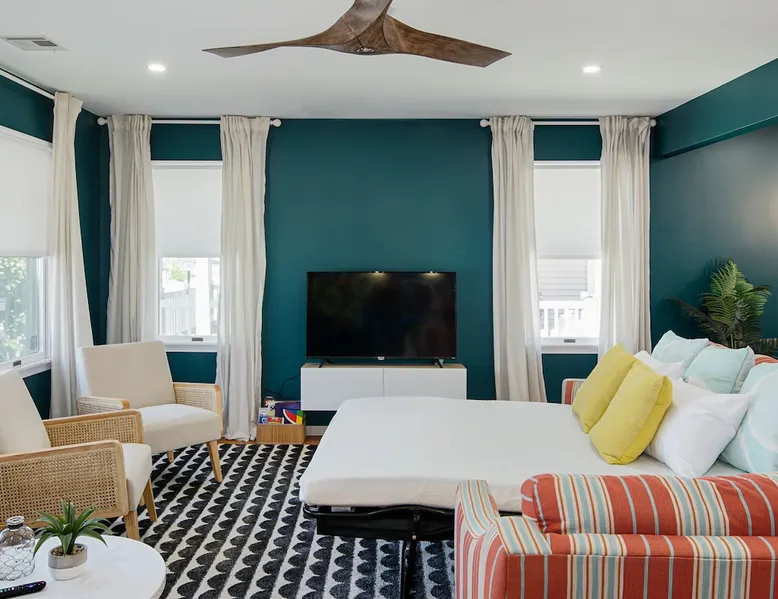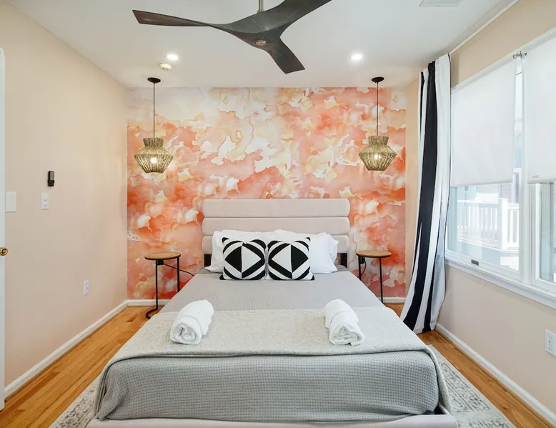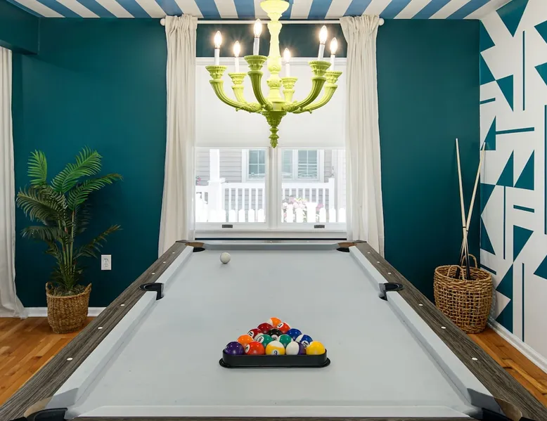 You’ve asked, so we’ve responded: a BIGGER Playce Collective property perfect for birthdays, bachelorettes, or larger families. Located 3 houses from the water and boardwalk, you won’t want to miss this amazing home! The space This uniquely designed home is an amazing place to take memorable photos with your friends or spend a wonderful getaway with your family. The home features several murals and works of art by local and international artists. This home is professionally designed and one of the most unique in all of Atlantic City and we would love to host your group. Spacious, detached single family home in the beautiful inlet neighborhood, close to Gardners basin. Along with a party room garage to provide double the fun at this one! FIRST FLOOR: The open concept on the first floor is amazing for hosting or all gaming together. When entering from the front porch, the living room offers a smart tv (There is no cable for the TV, just streaming apps), comfortable seating and opens to a dining area with a pool table. There’s also a large kitchen and full bathroom on the first floor. The backyard is a nice patio space to BBQ (we have a small grill for guests to use- must provide your own charcoal, supplies and dispose of used charcoal) and continues to the party room/garage- great for more photos or a separate area to hang out. SECOND FLOOR: The 2nd floor has 3 nice size rooms and 2 full bathrooms - both with tub/ showers - plenty of room to get ready before heading out for the night. All bedrooms have comfortable memory foam mattresses. The balcony on the master bedroom has views of the water at the inlet. SLEEPING ARRANGEMENTS: The house sleeps 11 guests. Please review bedding layouts when considering space and comfort. -MASTER BEDROOM: 1 Queen Sized Bed and TV with streaming apps -MIDDLE BEDROOM: 1 Queen Sized Bed -BACK BEDROOM: 2 Twin sets of Bunk Beds (4 Single Twins) -LOFT: Full Sized Bed -LIVING ROOM: Pull Out Sofa There is also an air mattress for an additional sleeping arrangement if needed. PETS: We will consider pets, but they must be pre-approved, meet our insurance guidelines, and there is a $40/night fee. You are fully responsible for damages, stains, and abiding by our pet rules. Not all breeds are allowed. Failure to follow rules can result in a $500 fee and/or immediate eviction. LARGER GROUPS: If you have groups larger than 11 people, please consider renting 2+ houses. Rockwell, Boho, Imani are all within a few blocks. All guests MUST be over 21 and registered prior to your stay, and max guests allowed is 11. Groups with more than 11 will have to rent an additional or larger house. We reserve the right to cancel your stay at any time if rules are not followed. LOCATION: Please keep in mind this is a city so there is potential for noise and other similar issues. Be aware of your surroundings. This house is 1/2 block from the boardwalk & approximately 3.5 blocks to the inlet and ocean beach entrances. Use #BadandBeachyPlayce for more updates and special packages on IG . BOOK WITH US and unlock discounts and special offers exclusive to Cozy Cohost guests. Take advantage of all that Atlantic City has to offer and enjoy savings at top local spots including famous restaurants, night clubs, spas, coffee shops, distilleries, breweries, boat tours, bike rentals, mini golf, and more... Guest access ACCESS & ENTRY: -Guests will have access to the entire home and backyard. -Please be respectful to the neighbors and the surrounding homes and businesses. --Please note that check-out time is promptly at 11:00 AM. Failure to check out by this time may result in a $100 fee per hour. We appreciate your cooperation in ensuring a smooth transition for our next guests. Thank you for your understanding! KEYLESS ENTRY: There is keyless entry. Your host will provide you with the door code approximately one hour prior to check in the day of your trip. PARKING: You can park directly in front of the house or behind the garage door - no parking in the garage. Please don’t park in front of the neighbors house to the right or garage though. Parking on Maine Ave (along the water) is metered! MAIL: -Do not send packages to the property via mail as we do not have access to the locked street mailboxes for the property. -If there is something of priority that you need shipped please reach out to us directly for alternative options. -We are not responsible for any items shipped to the property. ENVIRONMENTAL NOTES: -Property located in a city environment; potential for noise from cars or foot traffic. SECURITY: -The home is protected by exterior ring camera security. Other things to note HONESTY & EXPECTATIONS: At "Bad & Beachy Playce", we want our guests to have a clear understanding of the distinctions between vacation rentals and hotels. While we diligently maintain our properties, wear and tear are inherent aspects of vacation rentals. Although we address issues promptly, the high volume of guests may result in occasional delays between stays. Any significant damage or serious concerns are prioritized and resolved before a guest's check-in, provided we are made aware of the issue. CLEANING: Our dedicated cleaning team meticulously sanitizes and cleans each home. Unlike standard hotel rooms, homes entail a more detailed cleaning process due to their larger size. Despite our team's efforts to ensure optimal cleanliness, minor oversights may occur. For substantial errors, we are committed to rectifying the situation promptly. While we take pride in our cleaning standards, we ask for understanding that, as in any human endeavor, perfection is not always attainable, especially when minor details have no direct impact on your stay. HOUSEHOLD ITEMS: As private residences, it's important to recognize that household items may break or require repairs during your stay. While we understand the inconvenience this may pose to our guests, it's equally disruptive for us. Appliances such as water tanks, HVAC 