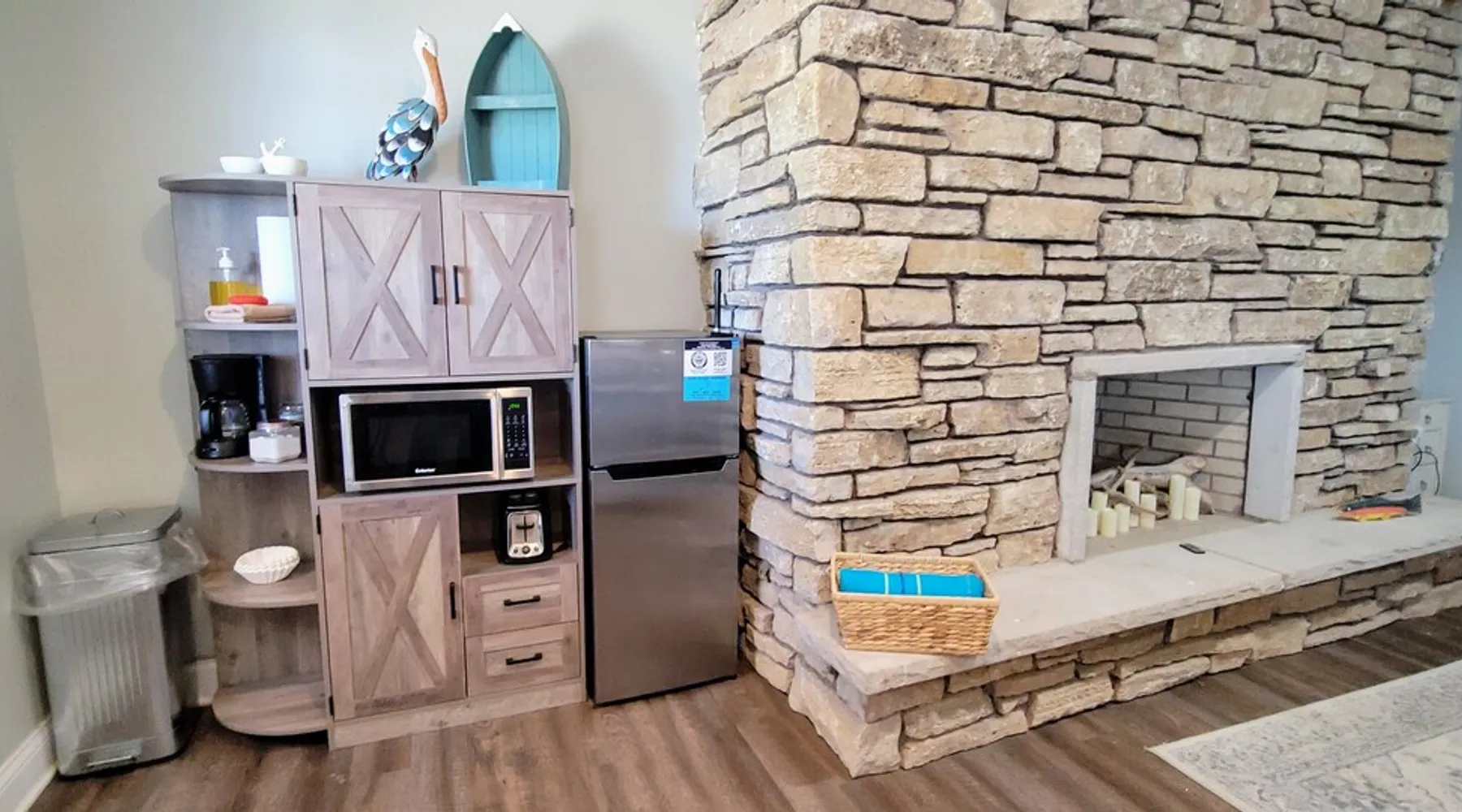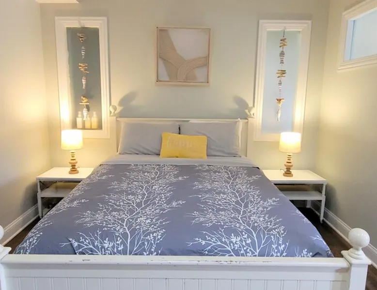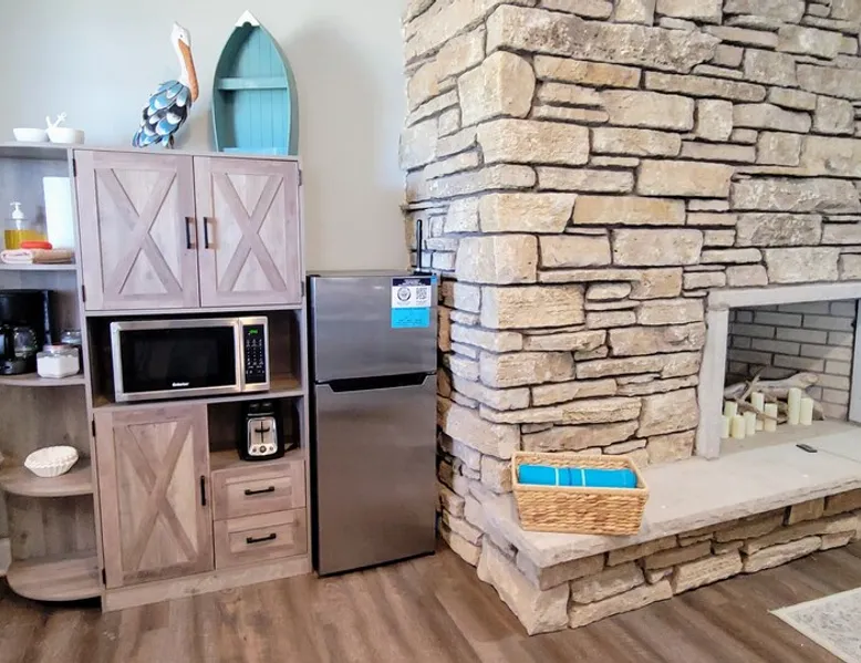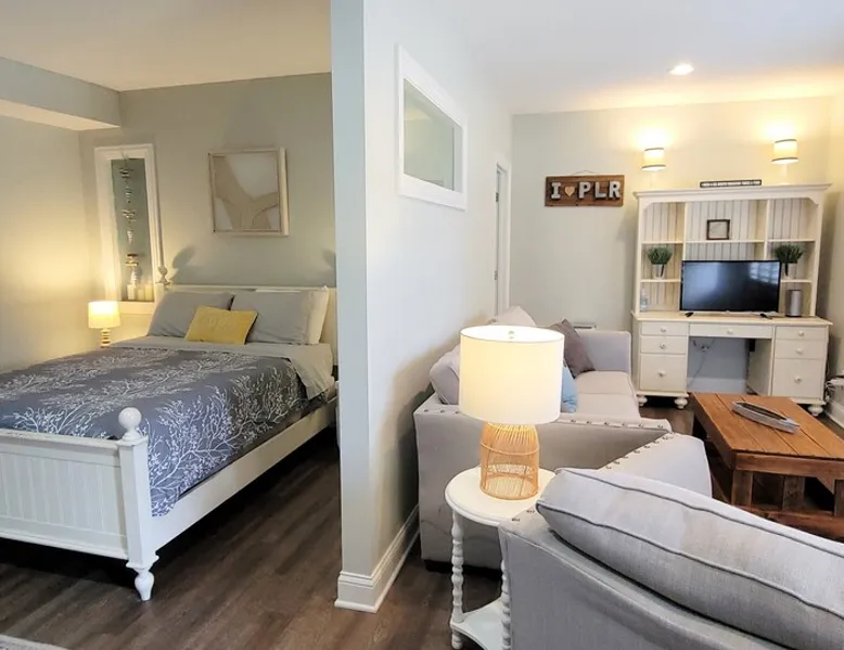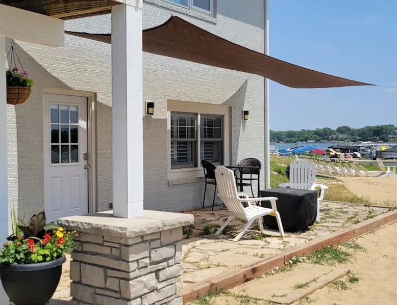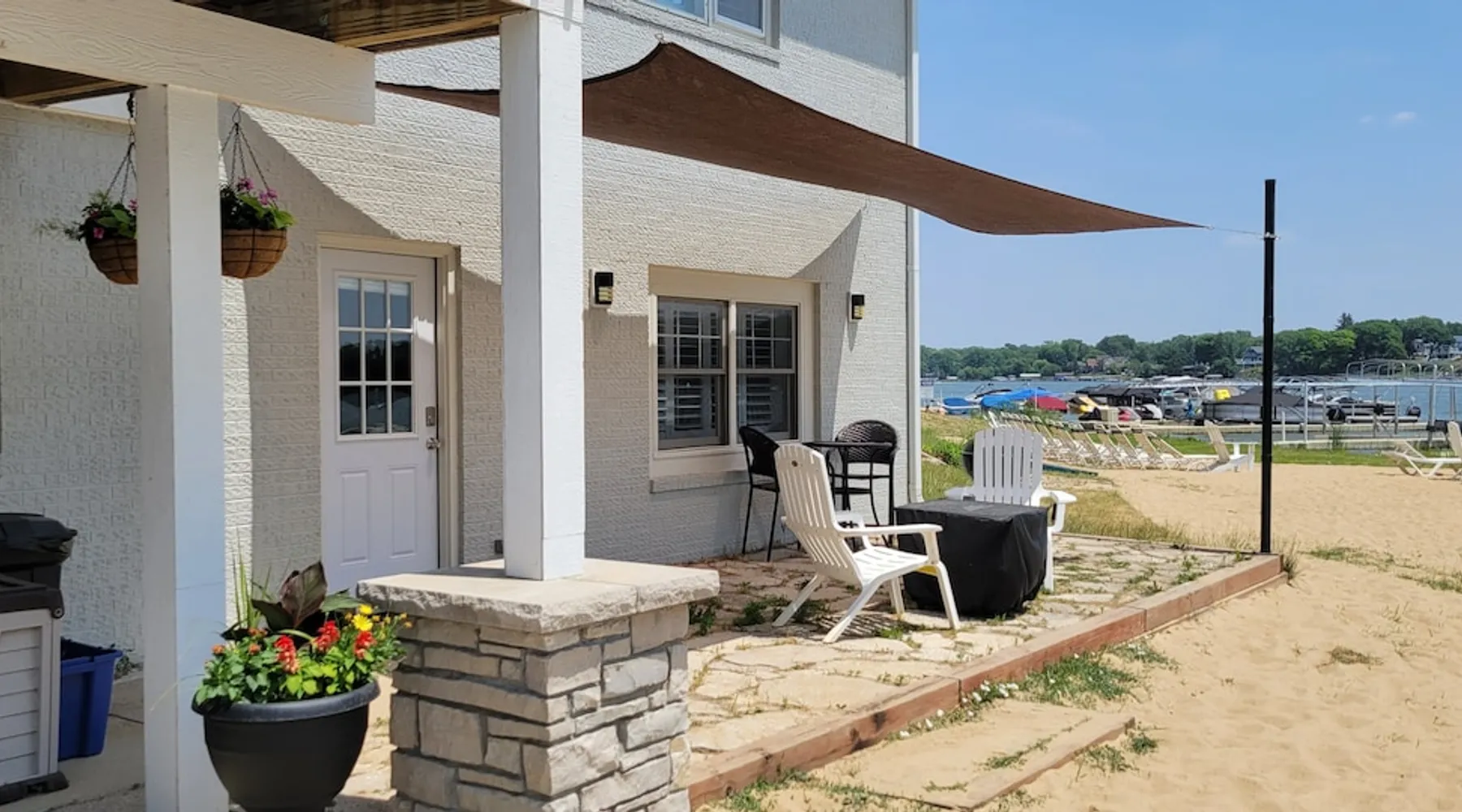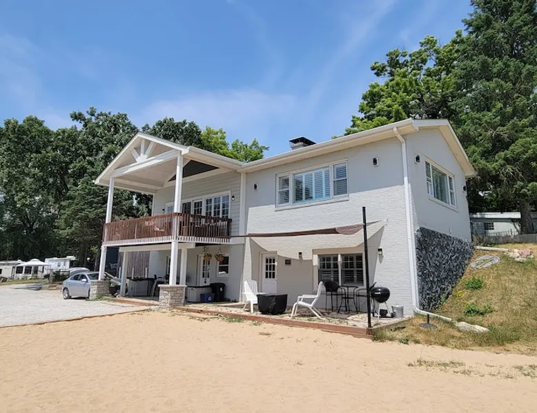Wake up to stunning lake views in the Beachfront Studio, located directly below our Hampton House. Enjoy the beachside patio, gas fire pit and grill, perfect for unwinding while watching boats come and go from their docks or cruising between channels. You’ll always have a beach lounger to soak up the sun and take in the lakeside vibes. Please note, some noise may be heard from the living room above. We encourage renting both the studio and Hampton House together for the best experience!