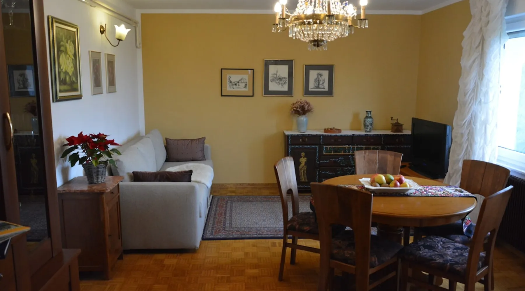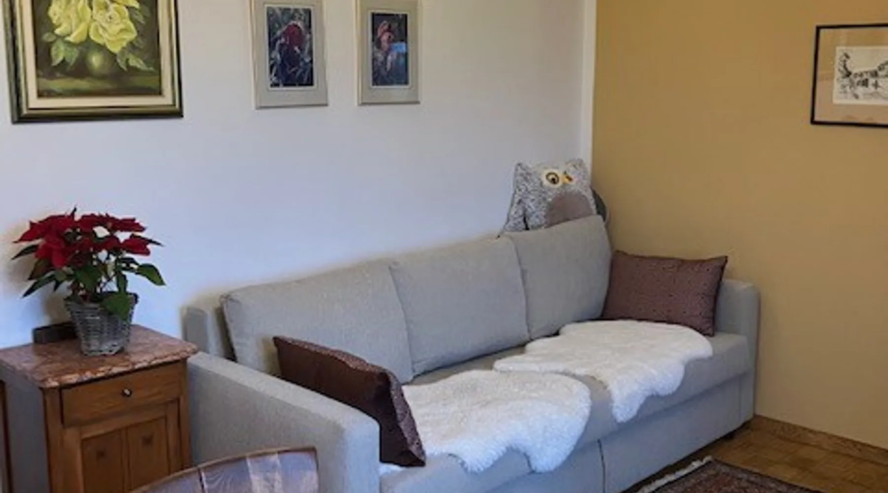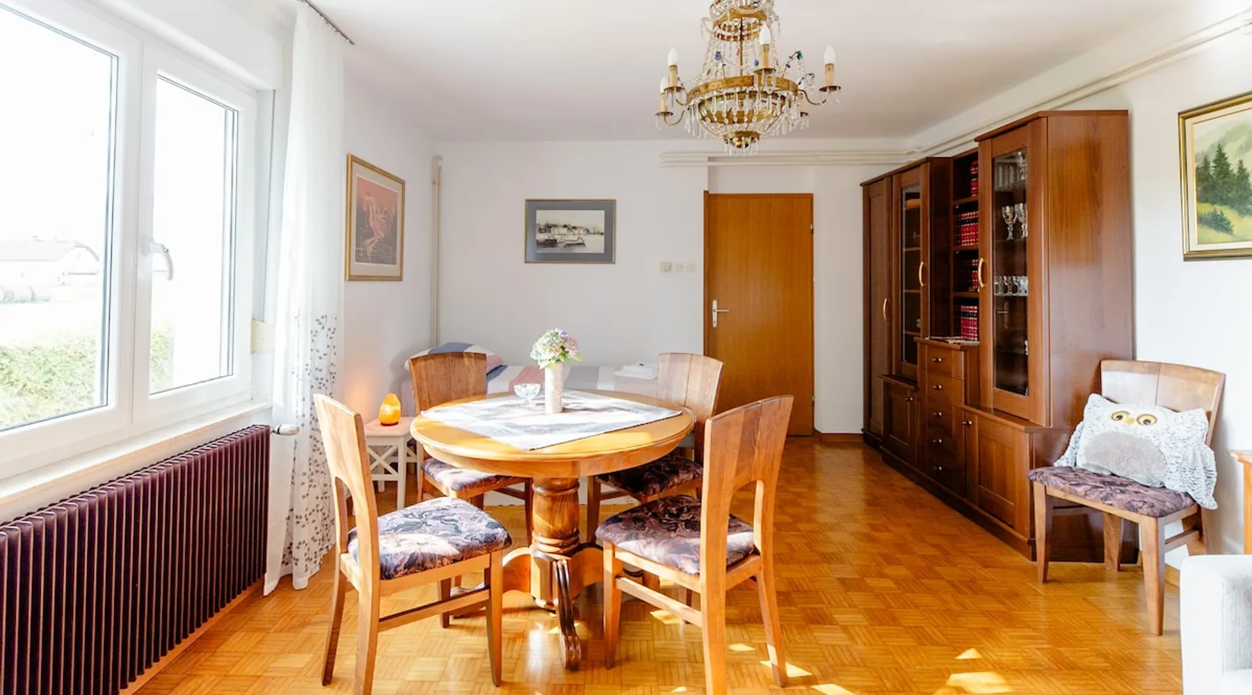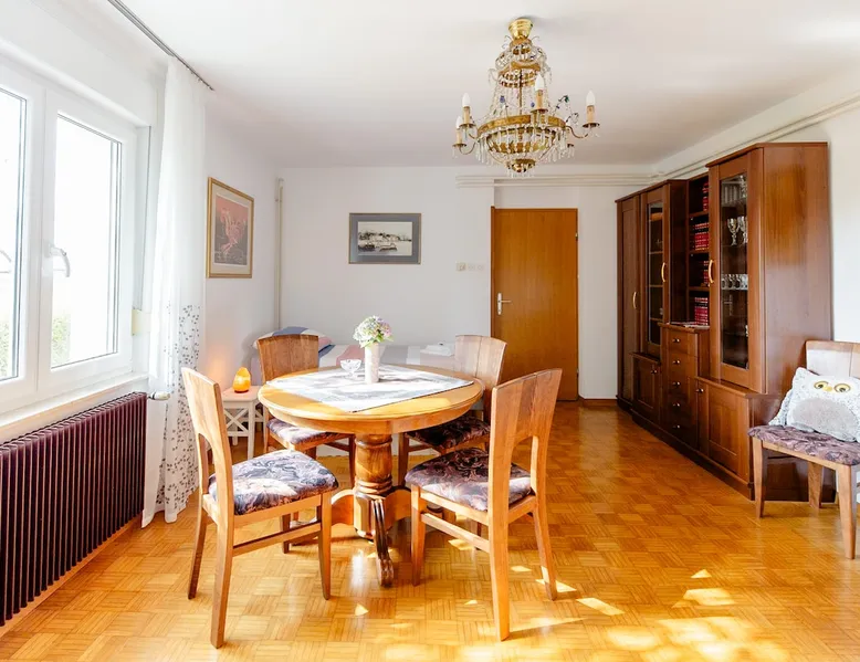 The house with an apartment is located on the southern outskirts of Ljubljana, only 9 km from the historic center of Ljubljana, in the Landscape Park of the Ljubljana Marshes. It covers 76 m2 and is suitable for 4 adults+1 child - for families, business guests, as well as a starting point for visiting Ljubljana and other Slovenian attractions. Tourist tax in the amount of €1.6 /day /person is not included in the price and is payable upon arrival in cash. The space Parking for guests is located next to the house. All necessary bed linen, towels, WiFi, heating and TV are included in the rental price. A pleasant, comfortable and spacious apartment can accommodate up to 4 adults and 1 child. It includes one bedroom with a double bed, a living room with a sofa bed for 2 people plus another bed. All beds are of exceptional quality, with a slatted bottom and a new, high-quality mattress. In addition, you have at your disposal a traditionally equipped kitchen with a dining table and a bathroom with bath, shower and hairdryer. All rooms are accessed from the hallway, where there are wardrobes. Guest access We are located at the end of the street, surrounded by nature, away from the hustle and bustle of the city. For guests who arrive by car, there is a free parking lot next to the house. There is a bus station very close (100m). From Ljubljana, take the city bus no. 19I (Ljubljana - Ig) to the main bus station on Ig. Then take the local bus no. 40 (Ig-Strahomer-Ig) for two stops further on. Get off at the station "Na Gmajni". Other things to note There is private entrance to the apartment. The guest could get in&out without bothering anyone.