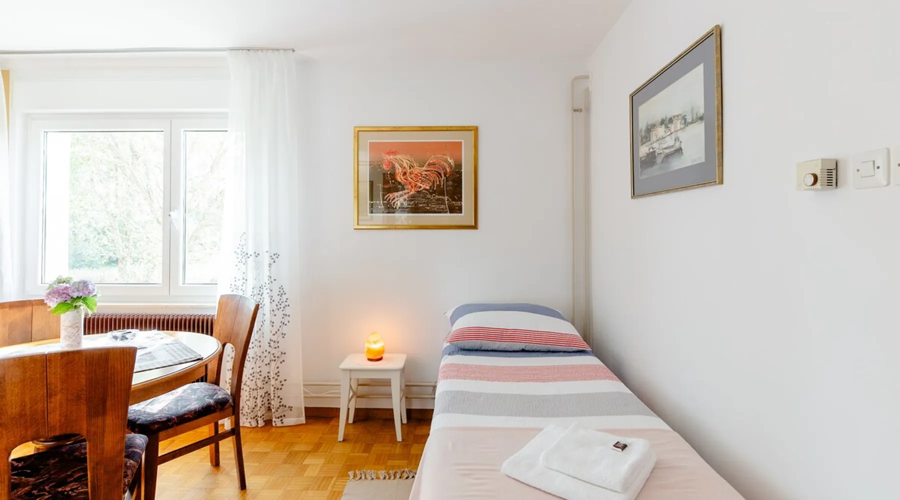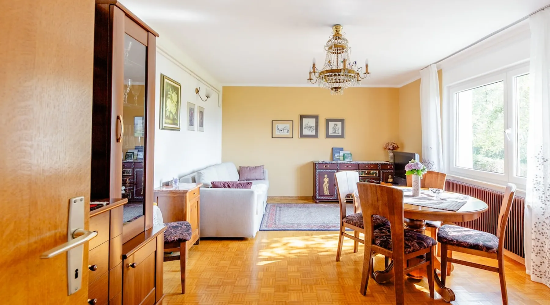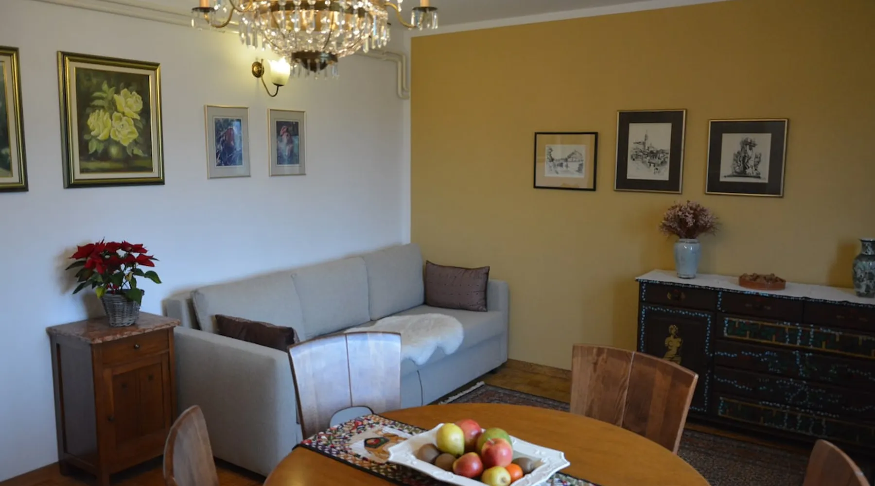The house with an apartment is located on the southern outskirts of Ljubljana, only 9 km from the historic center of Ljubljana, in the Landscape Park of the Ljubljana Marshes. It covers 76 m2 and is suitable for 4 adults+1 child - for families, business guests, as well as a starting point for visiting Ljubljana and other Slovenian attractions. Tourist tax in the amount of €1.6 /day /person is not included in the price and is payable upon arrival in cash. The space Parking for guests is located next to the house. All necessary bed linen, towels, WiFi, heating and TV are included in the rental price. A pleasant, comfortable and spacious apartment can accommodate up to 4 adults and 1 child. It includes one bedroom with a double bed, a living room with a sofa bed for 2 people plus another bed. All beds are of exceptional quality, with a slatted bottom and a new, high-quality mattress. In addition, you have at your disposal a traditionally equipped kitchen with a dining table and a bathroom with bath, shower and hairdryer. All rooms are accessed from the hallway, where there are wardrobes. Guest access We are located at the end of the street, surrounded by nature, away from the hustle and bustle of the city. For guests who arrive by car, there is a free parking lot next to the house. There is a bus station very close (100m). From Ljubljana, take the city bus no. 19I (Ljubljana - Ig) to the main bus station on Ig. Then take the local bus no. 40 (Ig-Strahomer-Ig) for two stops further on. Get off at the station "Na Gmajni". Other things to note There is private entrance to the apartment. The guest could get in&out without bothering anyone.