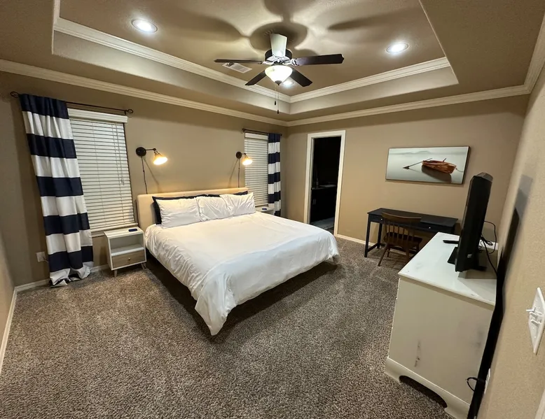 This fully stocked home is conveniently close to all things Northwest Arkansas in a quiet neighborhood. Just down the road from Top Golf, the AMP and the promenade mall, you can be anywhere within minutes. Comfortable for weekend get away with friends, family friendly and business travel ready. The fenced backyard is an oasis with a gas grill, firepit, benches, and table. We welcome pets as well! Two car garage is great for bikers and conveniently just down the road from the Greenway bike path.