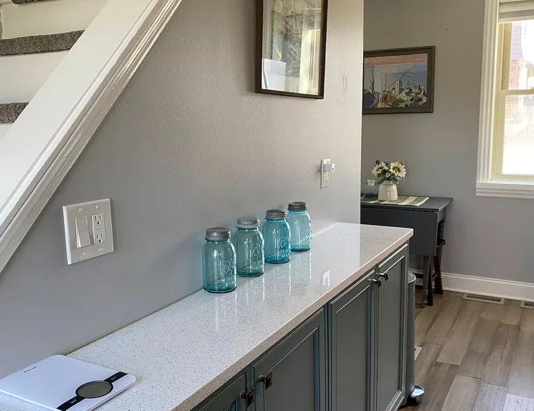 Turn of the century renovated 1884 Solid Cream City Brick Home with modern amenities. The Cream City Cottage is a quick 6 minute walk to the heart of historical downtown Port Washington, Lake Michigan, restaurants, and shopping. This quaint home features 2 beds & 1 bath and a fully furnished kitchen. Enjoy wine or a cocktail on the fantastic back patio. A short drive to downtown Milwaukee, Cedarburg and Kohler. The Interurban Trail is easily accessible from our location. Pets are not allowed. The space This two-story home is 936 square feet. Both beds are on the second floor and requires climbing steps to access them. The master bedroom is a private bedroom, and the other sleeping area is an open concept room with full size bed and closet, this is not a private room. It is important to note the open concept sleeping area has direct access to open stairs. It is important to note is that the only bathroom is accessed through walking through the master bedroom. Other things to note Covid-19 Information: We have a professional cleaning service contracted to clean the house they focus on disinfecting frequently touched surfaces, such as doorknobs, handles, kitchen appliance handles, window blind sticks, kitchen counters, remotes, alarm clocks, light switches, thermostats, garbage cans and windowsills to name the most commonly touched items. We have hand sanitizer, disinfecting wipes, and anti-bacterial spray available to guests to use during each stay. All bedding is also washed and dried on high heat settings. The cleaning fee reflects these additional measures.