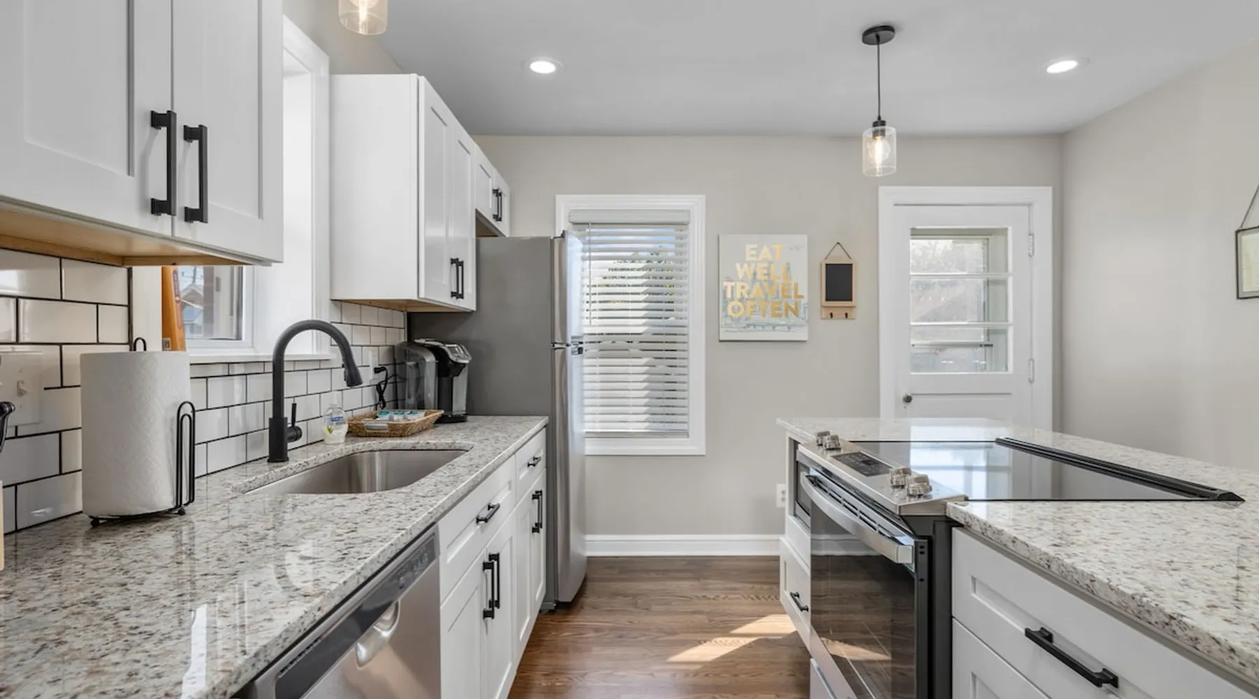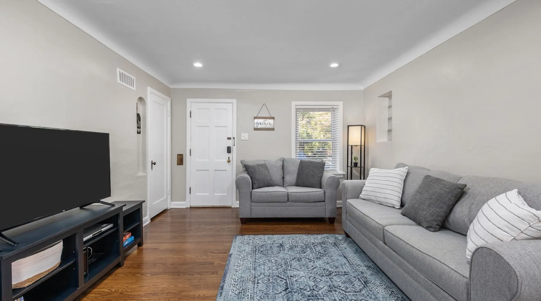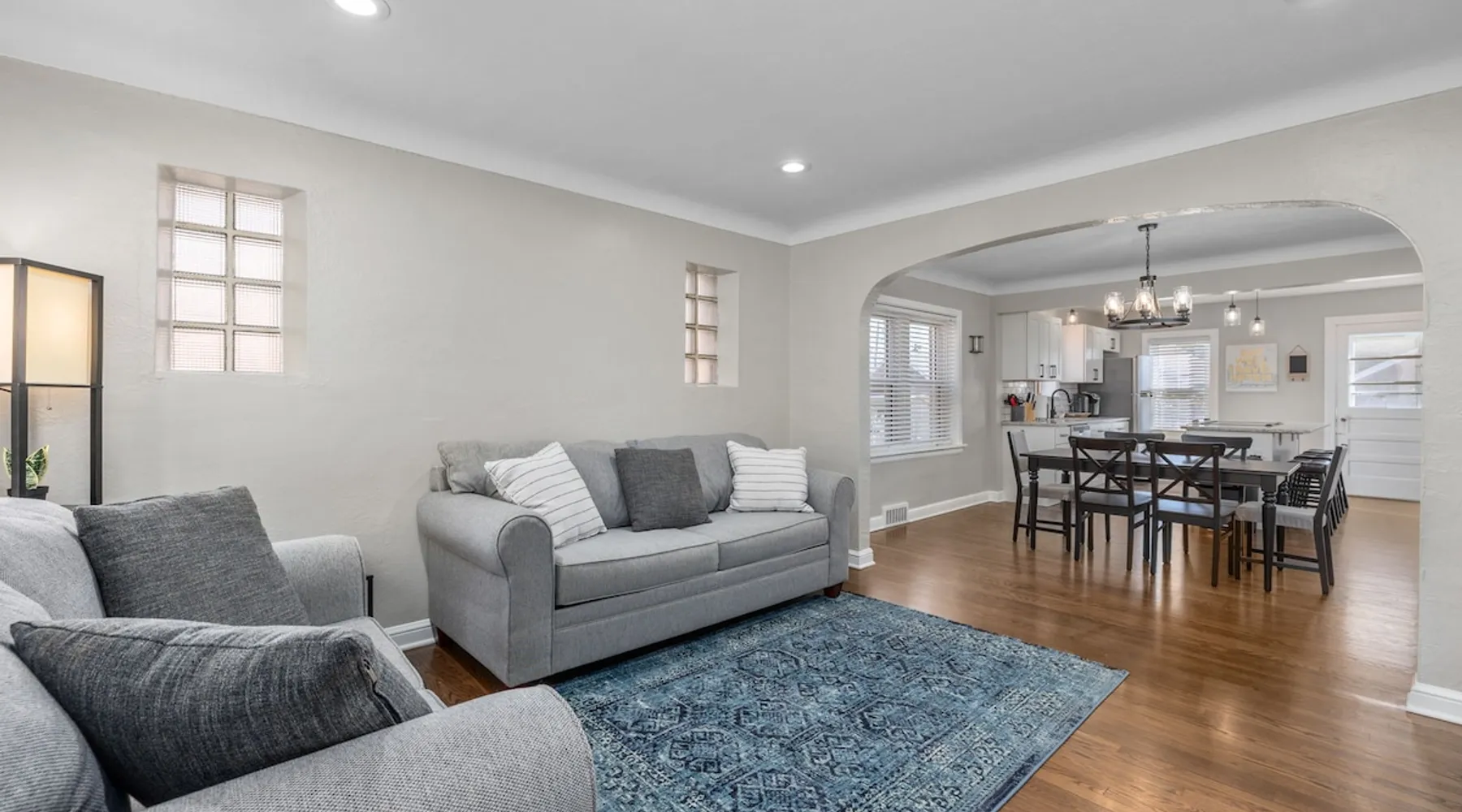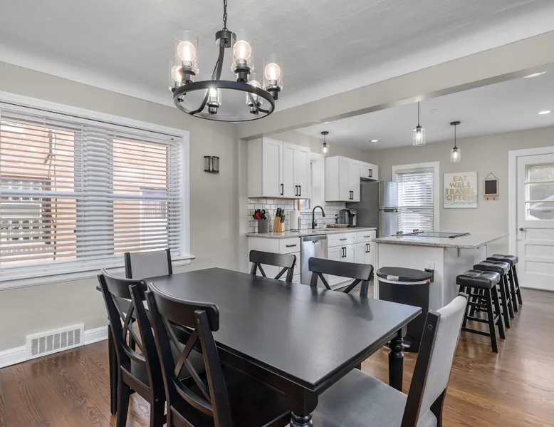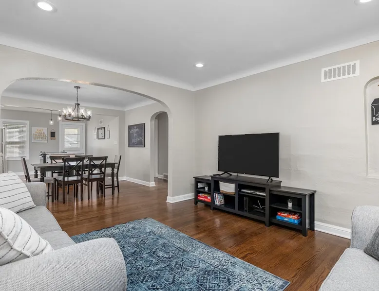 In the heart of historic Dogtown, this home is tucked away in a safe quite neighborhood and centrally located to all that St. Louis has to offer! Steps away from dining and drinks in the quaint vibrant downtown and a short 7 minute walk to the (FREE!) St. Louis Zoo and Forest Park! Easy access to I-64 and I-44 for short drives to downtown St. Louis! The space This completely remodeled 2-bedroom home is nestled in the heart of Dogtown St. Louis. This area offers great dining options (including ice cream for the kiddos!), all walkable! It can sleep up to 6 people comfortably. A king bed in the main bedroom, two twins in the second bedroom and a pull-out queen size sofa in the living room. The beautiful full kitchen contains all you need for home cooked meals. The full bathroom has a shower/bath combo and vanity. Each bedroom has a smart tv hooked up with a Disney+ subscription already logged in. Outside you'll find a spacious composite deck and a beautiful hand painted mural by a local St. Louis artist! Great for photo ops! The home offers a long driveway with a parking pad in the back for ample parking. Street parking is also available on the one-way street. Guest access You have access to the entire main floor living space and the walkout basement. The upstairs attic is blocked off to guests. Other things to note This is a wonderful well established neighborhood with fantastic neighbors who have lived here for decades (yes decades!). We ask that you please be kind and respectful. Because of this, we do ask that you follow the following house rules: Due to the close proximity to the neighbors, this property is a "no smokers" property. This means no smoking on the premises (no smoking inside or outside the home). This includes tobacco, vape and marijuana. We love our furry friends, but due to many guests having allergies, this is a "no pets" property. We fully appreciate guests wanting to visit with friends and family, but please do not use this house to host gatherings or events. We strictly follow AirBnB's rules of no parties, no events and no gatherings. Guests visiting this home should be limited to the registered, agreed upon guests in the reservation. We ask that you please, again, respect the neighbors and adhere to quiet hours which are after 9pm and before 7am. Please keep all outdoor noise to minimum during this time. Please understand that these house rules are strictly enforced and violation could result in cancellation of the reservation without refund. Also note, we do provide a "starter kit" of essentials, including toilet paper, paper towels, dishwasher pods and laundry detergent. We have found this to be sufficient for a 2-3 day stay. Please let us know if there are any questions or if there is anything we can do to help you enjoy your stay with us!