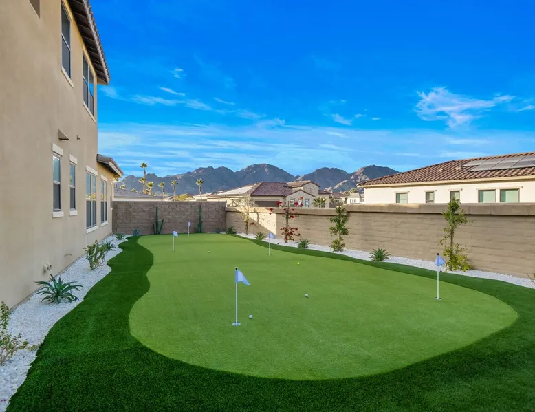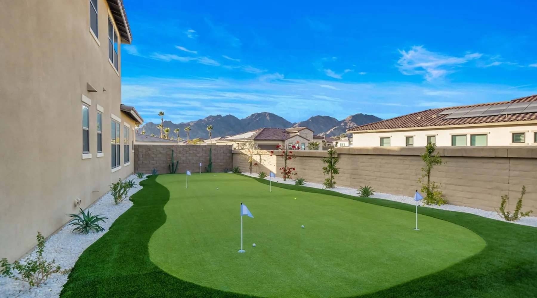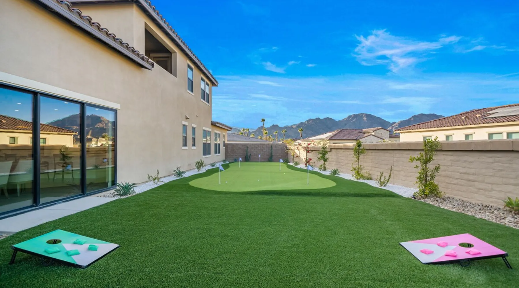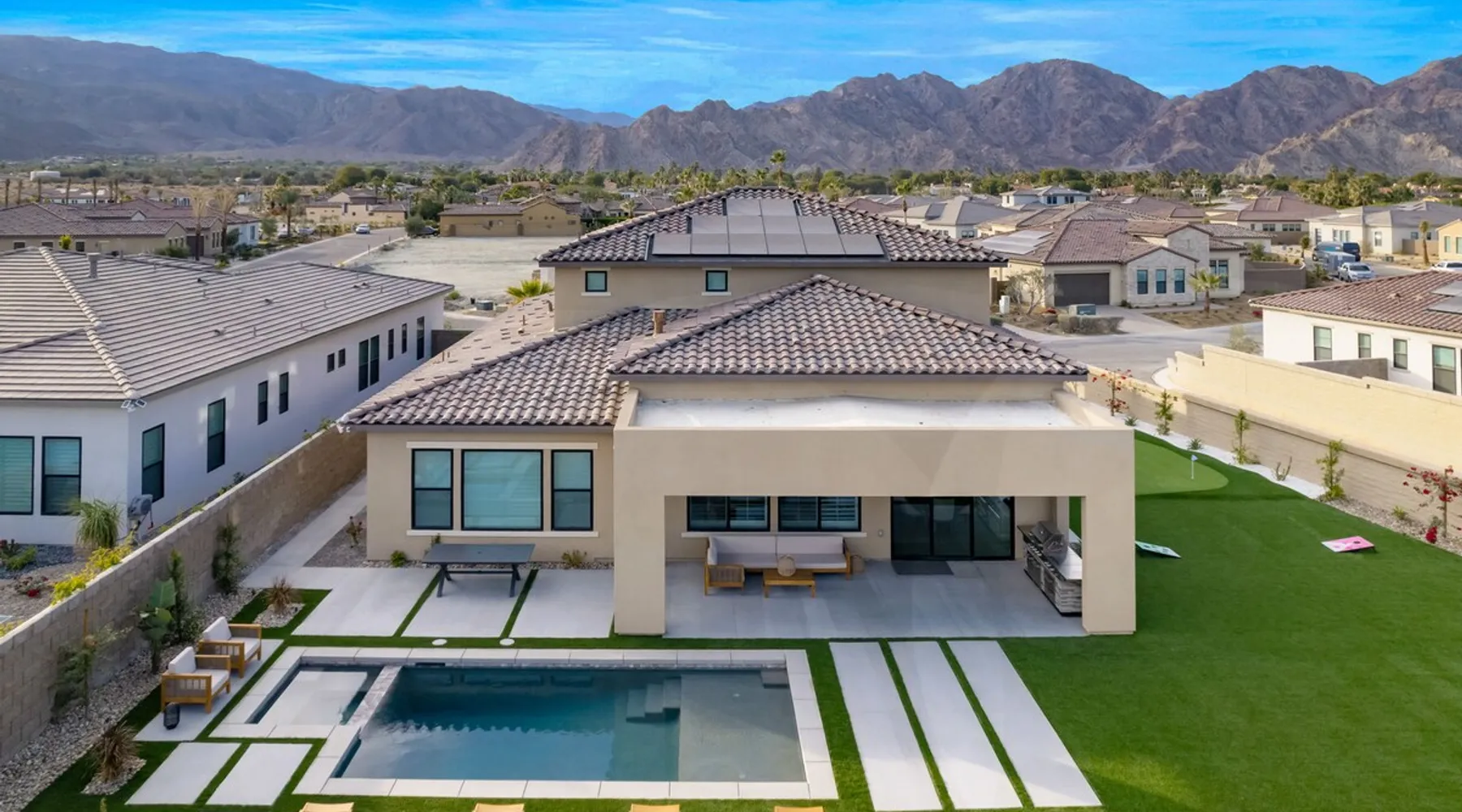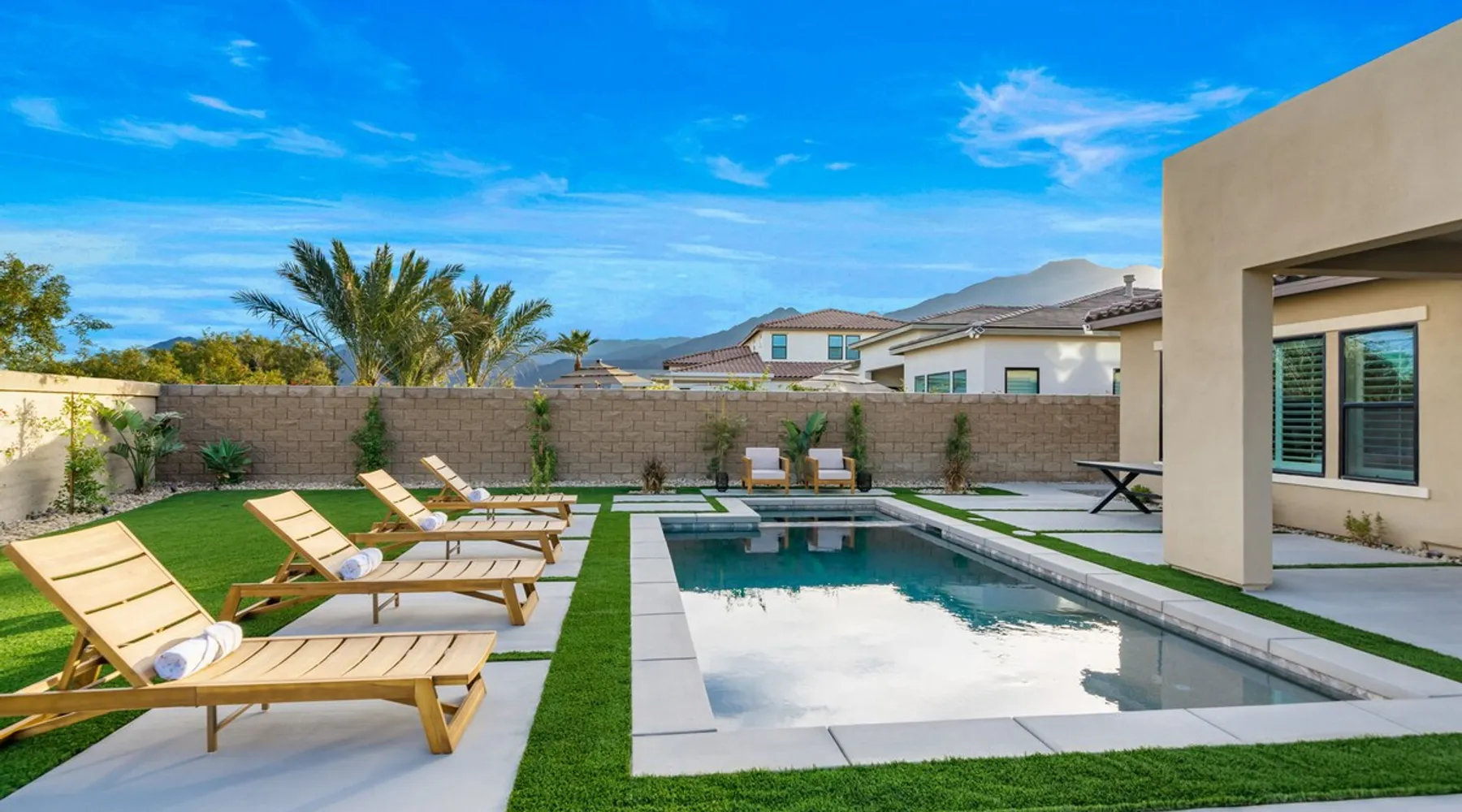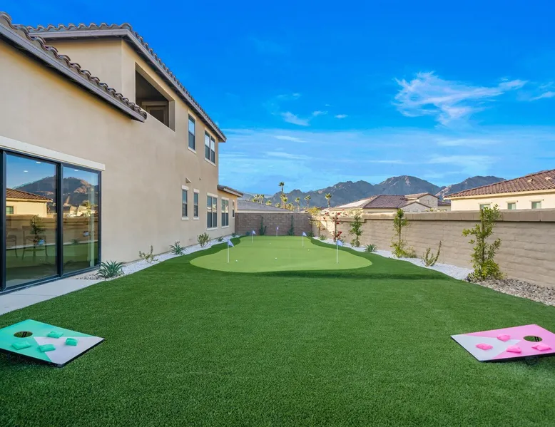 Experience luxury in this new gated Toll Bros. home in La Quinta. Featuring over 10-ft ceilings and large sliding doors, it opens to a resort-like backyard with a saltwater pool, spa, oversized putting green, games area, BBQ, & firepit. The main level includes a gourmet kitchen, master suite, 2 additional bedrooms, 2 bathrooms, and an office. Upstairs offers a spacious loft w/ air hockey, arcade games, covered patio with mountain views, plus 2 more bedrooms and bathroom. Perfect for 2 families ! Guest access Entire home