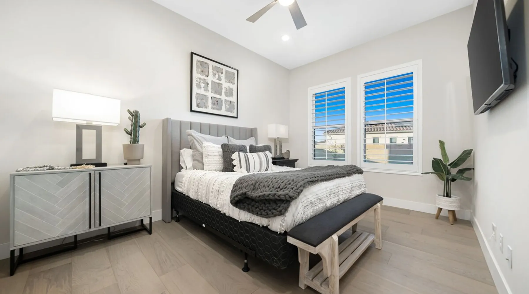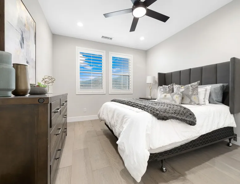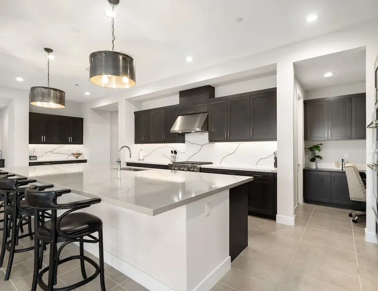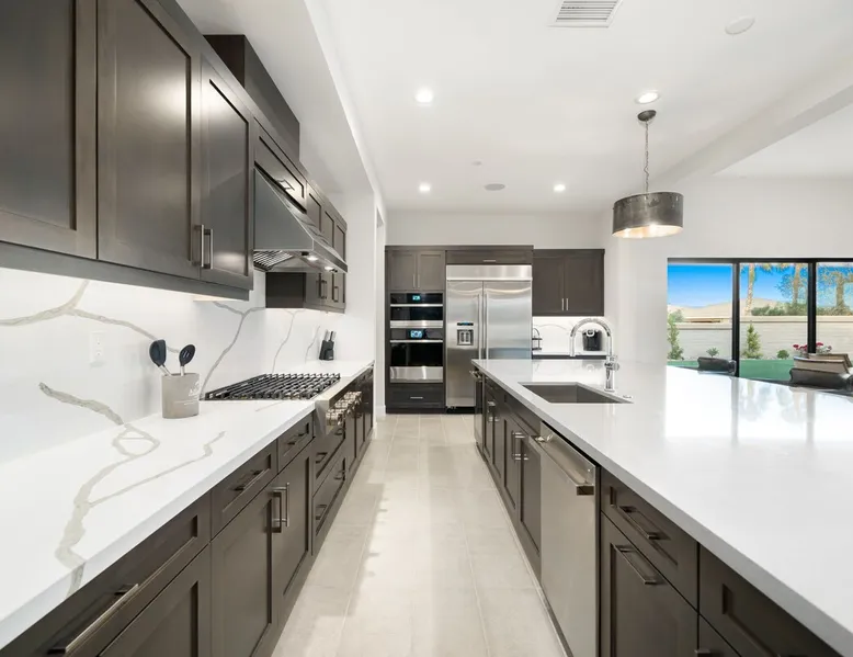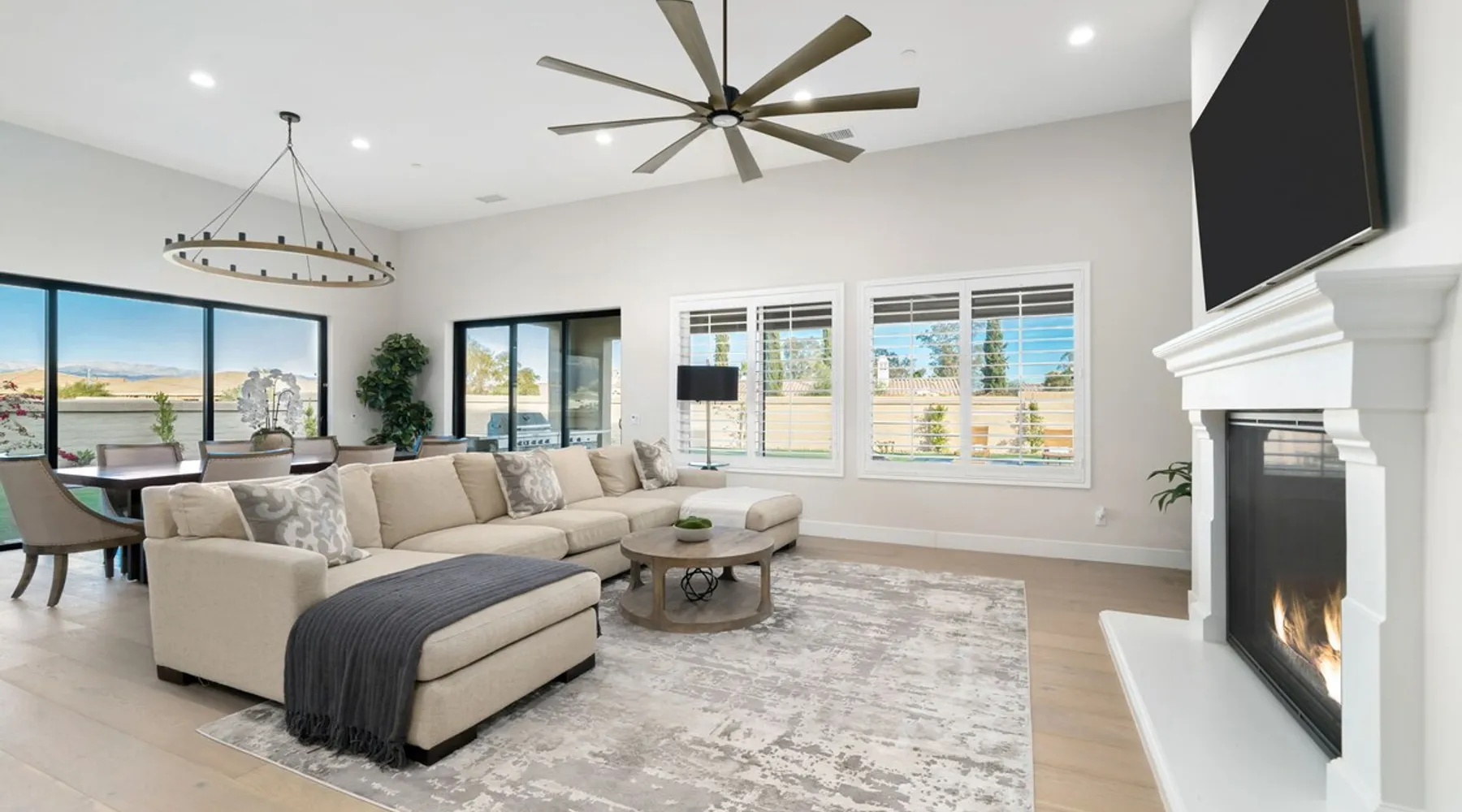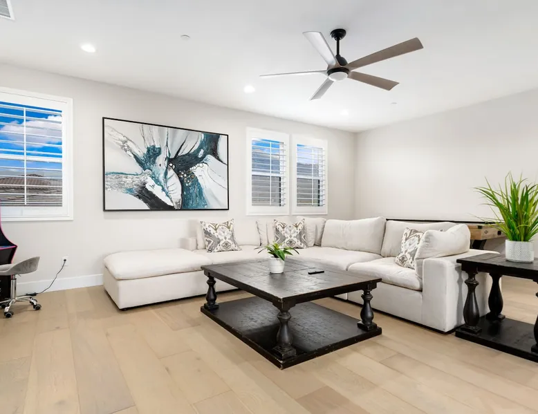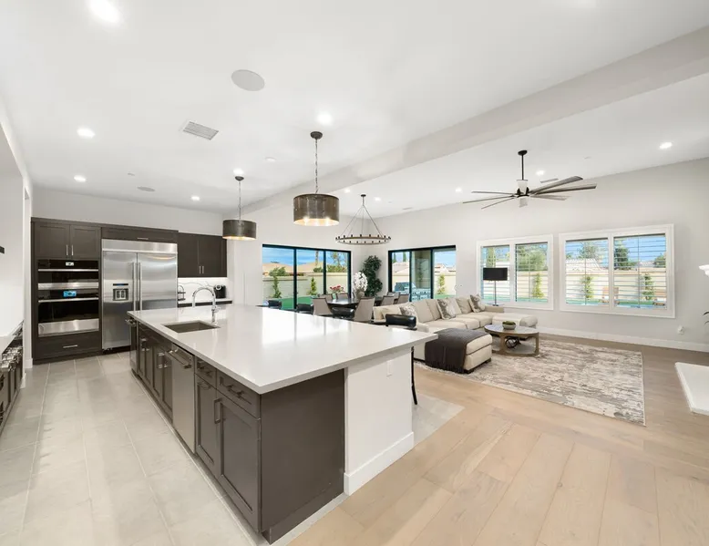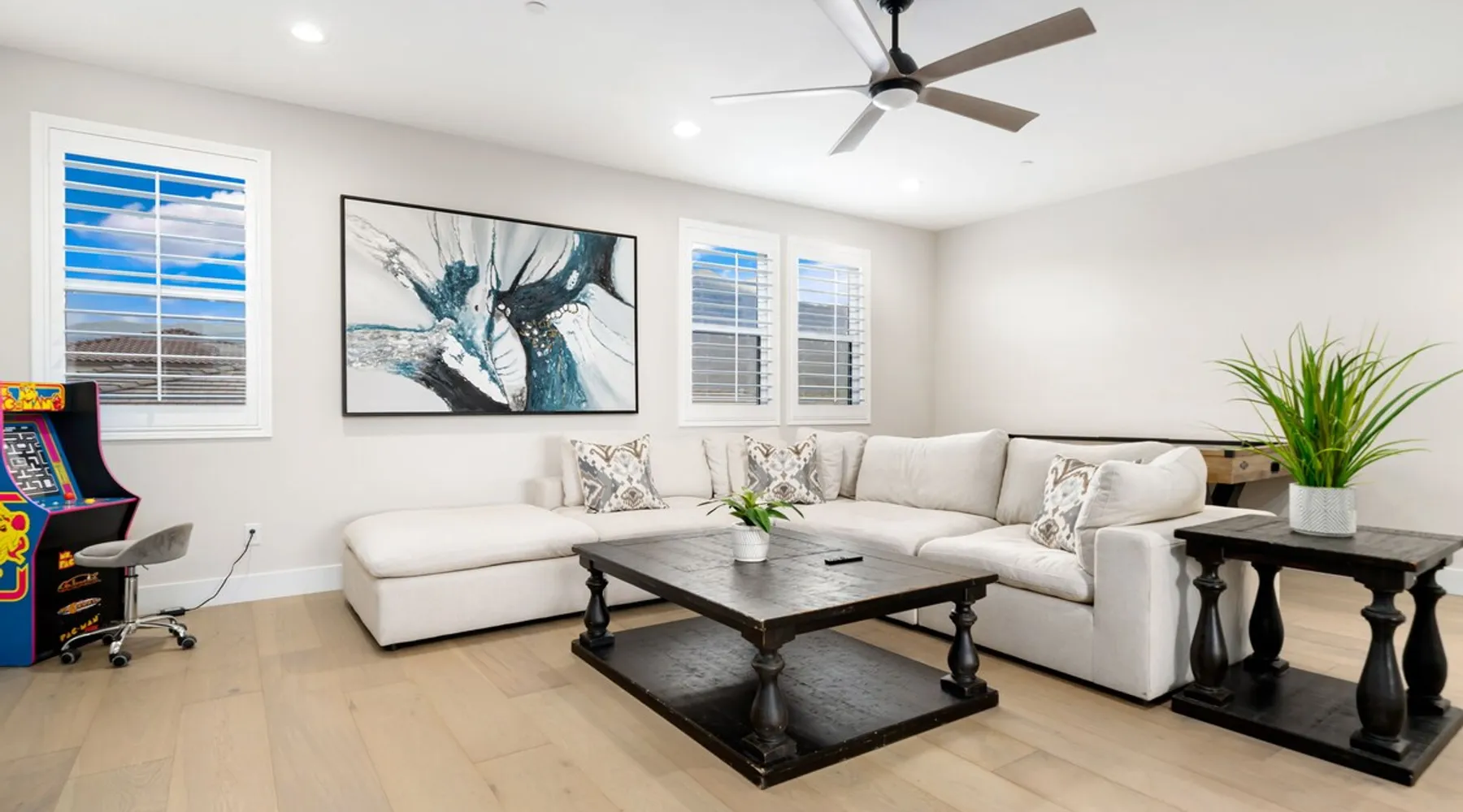 Experience luxury in this new gated Toll Bros. home in La Quinta. Featuring over 10-ft ceilings and large sliding doors, it opens to a resort-like backyard with a saltwater pool, spa, oversized putting green, games area, BBQ, & firepit. The main level includes a gourmet kitchen, master suite, 2 additional bedrooms, 2 bathrooms, and an office. Upstairs offers a spacious loft w/ air hockey, arcade games, covered patio with mountain views, plus 2 more bedrooms and bathroom. Perfect for 2 families ! Guest access Entire home