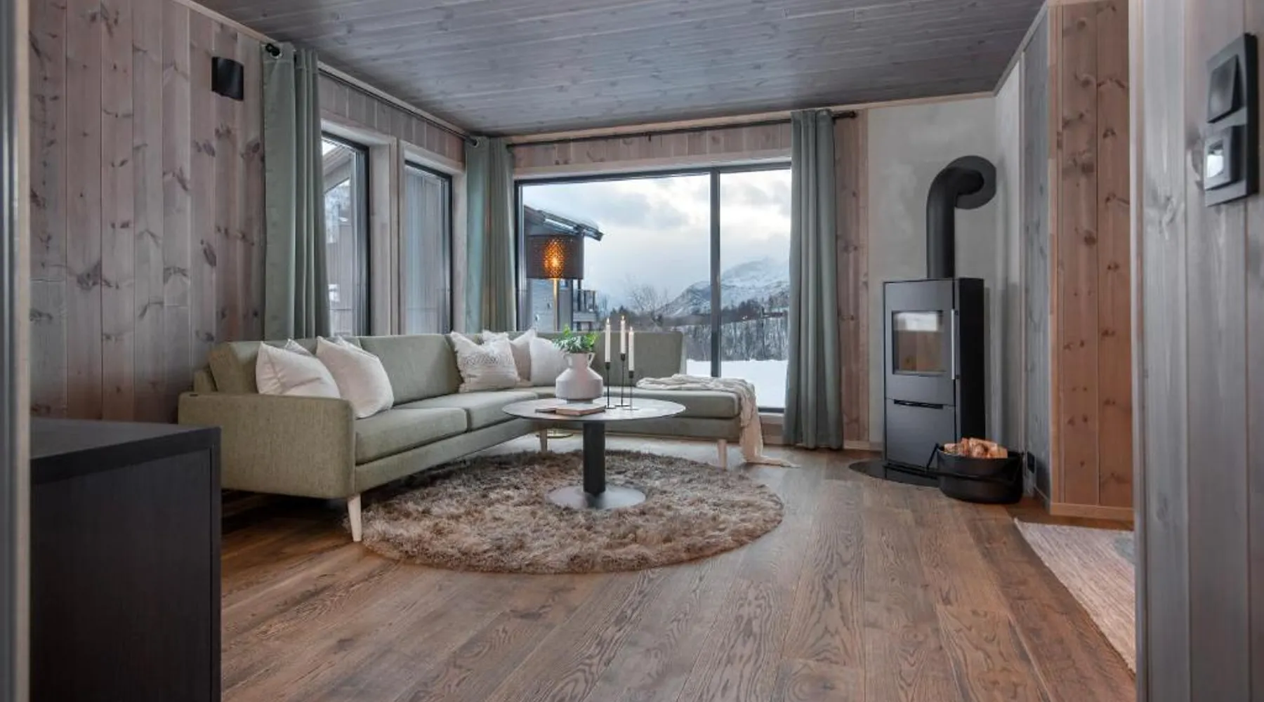 Spacious Accommodations: Ground Floor Exclusive Apartment with Sauna - Near Geiranger and the Norwegian Fjords in Stranda offers a spacious layout with three bedrooms and one bathroom. The ground-floor unit features parquet floors and a private garden. Modern Amenities: Guests enjoy a sauna, terrace, and free WiFi. The apartment includes a fully equipped kitchen with a dishwasher, washing machine, and dining area. Additional amenities include a fireplace, TV, and outdoor furniture. Convenient Location: Located 45 mi from Ålesund Vigra Airport, the property is near Geiranger and the Norwegian Fjords. Free on-site private parking and an electric vehicle charging station are available. Highly rated by guests for its spaciousness and excellent facilities. The sauna and fireplace are the special features of this apartment. Boasting 3 bedrooms, this spacious apartment has 1 bathroom with a shower, a seating area and terrace where you can relax. In the kitchen, guests will find a stovetop, a refrigerator, a dishwasher and kitchenware. The apartment features a flat-screen TV, a washing machine, a tea and coffee maker, a dining area as well as mountain views. The unit offers 3 beds.