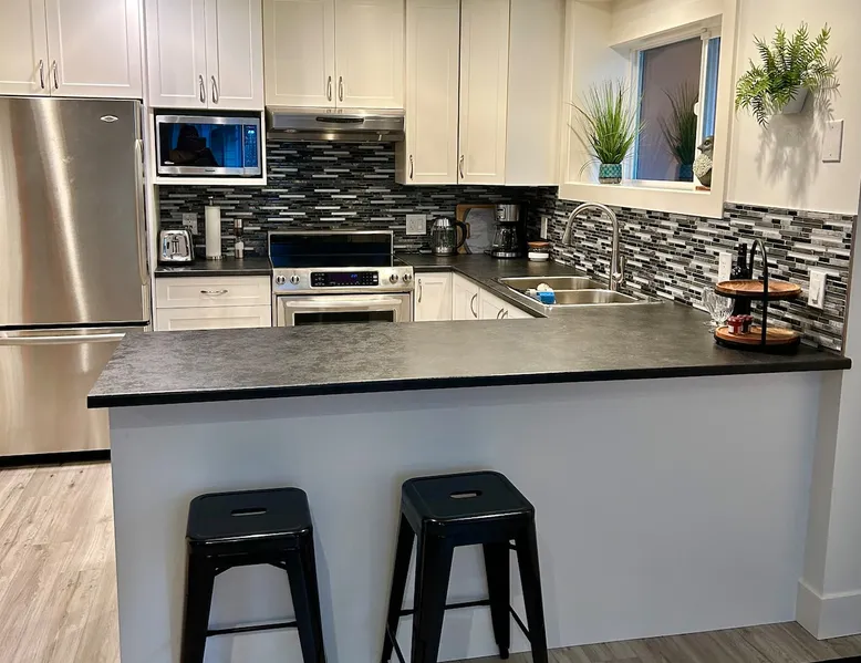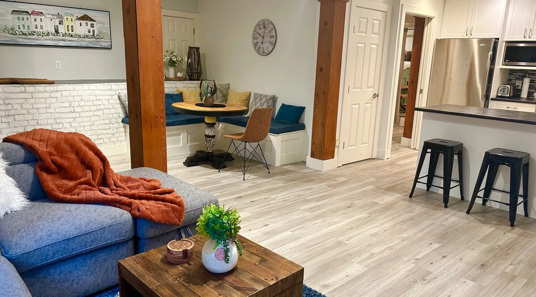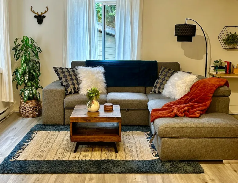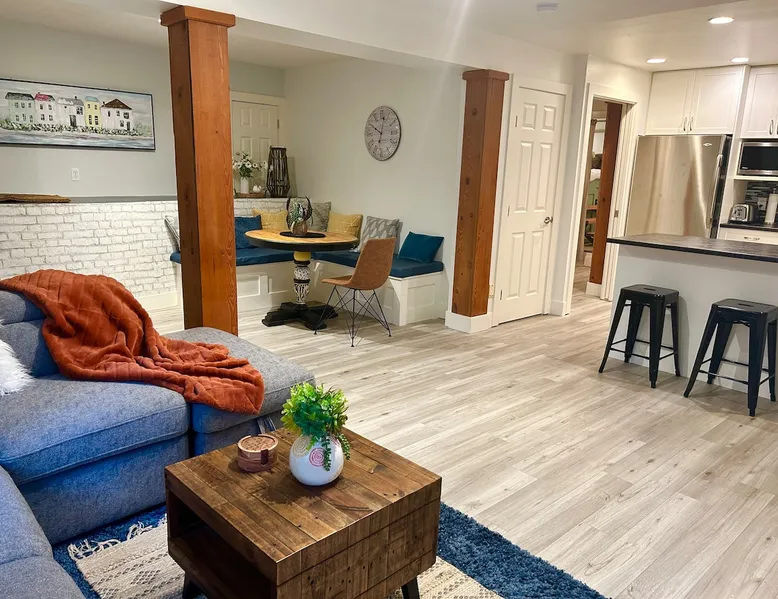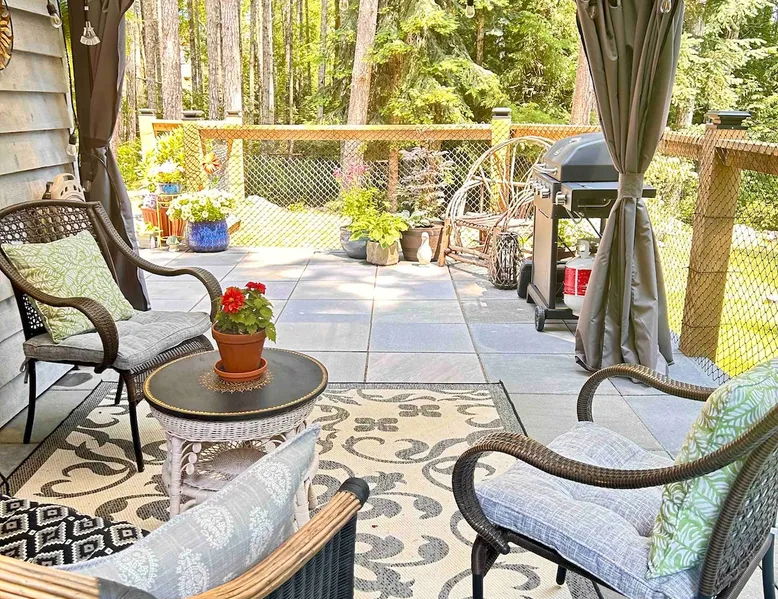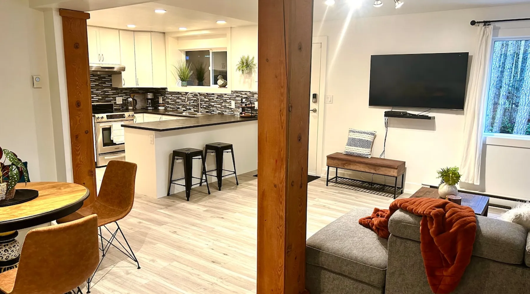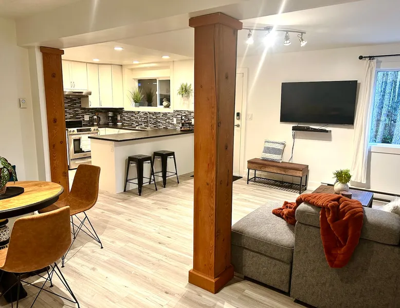 Get away from it all and enjoy this unique space nestled in the woods close to the trails of popular East Sooke Park. Explore the west coast of Vancouver Island with scenic drives to Sooke, Jordan River and Port Renfrew. Day trips take you to magnificent beaches and hiking trails with stunning vistas and the opportunity to view wildlife such as whales, bears, eagles and others. A 40 min drive takes you to Victoria for shopping, dining and many tourist attractions including Butchart Gardens. The space A set of stairs off the main deck take you down to a level entry suite. You’ll enter into a bright living room with plenty of seating that includes a sofa bed which sleeps 2 and a cozy breakfast nook. There’s a desk/workspace in the far corner along with a blue tooth stereo and board games for all ages. Coffee maker, kettle, toaster, and basic food staples are provided such as oils, sugar, salt, pepper, spices, tea and coffee. We’ll also provide a few eggs, bread, butter, jam, coffee creamer and some snacks to get you started. There’s a private bathroom with a rain shower and a full deep tub just perfect for a relaxing soak after a day exploring. Shampoo/conditioner, body wash and bubble bath are provided. In the bedroom, a unique and cozy queen sized bed is set into an alcove and is reached by ascending 3 wide steps. Convenient bedside lighting is present along with individual bedside phone chargers. All linens and towels are provided. Full in-suite washer and dryer. Outside you’ll enjoy a large private patio with seating, a propane fire bowl and a barbecue. *** Please note that this unit is not suitable for guests with mobility issues or toddlers due to the number of stairs. Guest access Self contained suite with large private garden patio. Other things to note While every effort has been made to address noise transfer, please understand that we are a family living upstairs and you will hear some footsteps and the sounds of daily living. We value your privacy and will always be respectful and only ask that you do the same. Registration Details Provincial registration number: H280677369