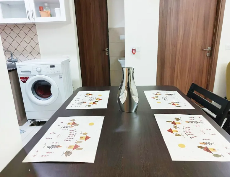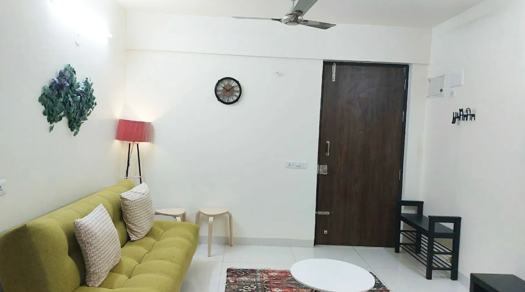 A clean, well maintained and tastefully decorated 1 bedroom apartment fully furnished with all the essentials for a comfortable and homely stay for upto 3 persons. You can also further enjoy your stay by hitting the society clubhouse and enjoy various indoor and outdoor sports activities. This centrally located property is at a few minutes of walkable distance from major IT companies. Avail heavy discounts for longer duration stays. The space The apartment consists of a master bedroom, living room, balcony, dining area, kitchen, bathroom and toilet Guest access Guests would be booking the whole apartment. Other things to note Additional amenities: Power backup Cleaning Service: The cleaning fees included in the price covers one time deep cleaning at the end of the stay. Daily basic cleaning services are available at additional cost. Food: Guests can order from outside or can cook themselves. Cooks are available at additional cost. Booking: Booking to be done via Airbnb only. Requests for offline deals will not be entertained. Security deposit: For long duration stays of 1 month or more, security deposit of 15000 INR needs to be paid by the guests on arrival. This amount would be returned to the guests after check-out and post inspection of the apartment and would be subject to deductions based on damages, missing items or if extra cleaning is required in the apartment. Loss of keys will be subject to a fine of 5000 INR.