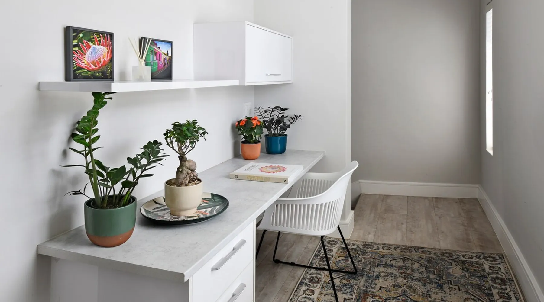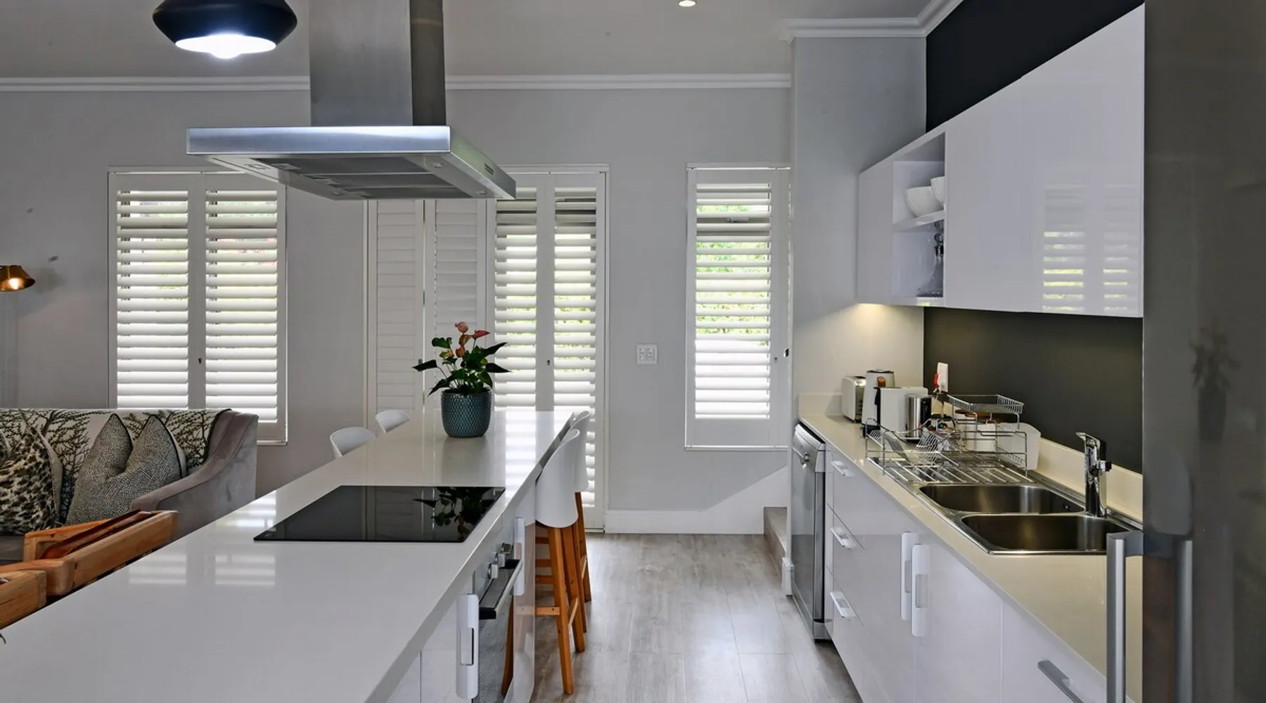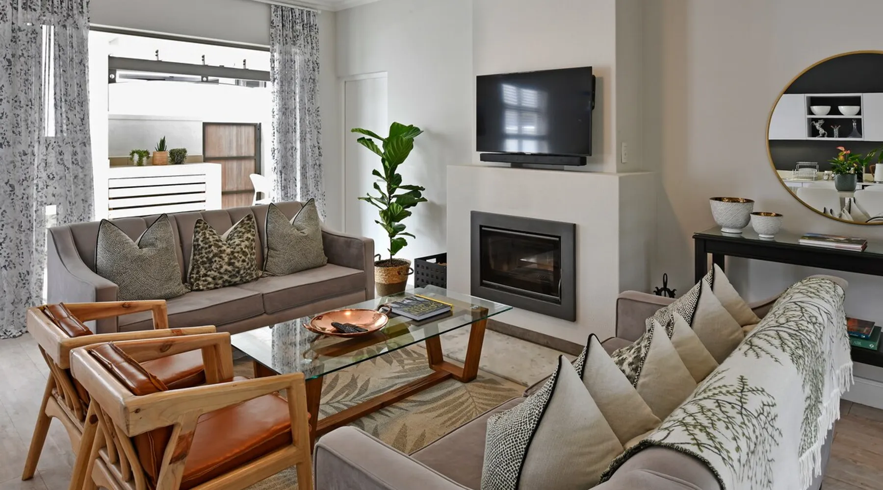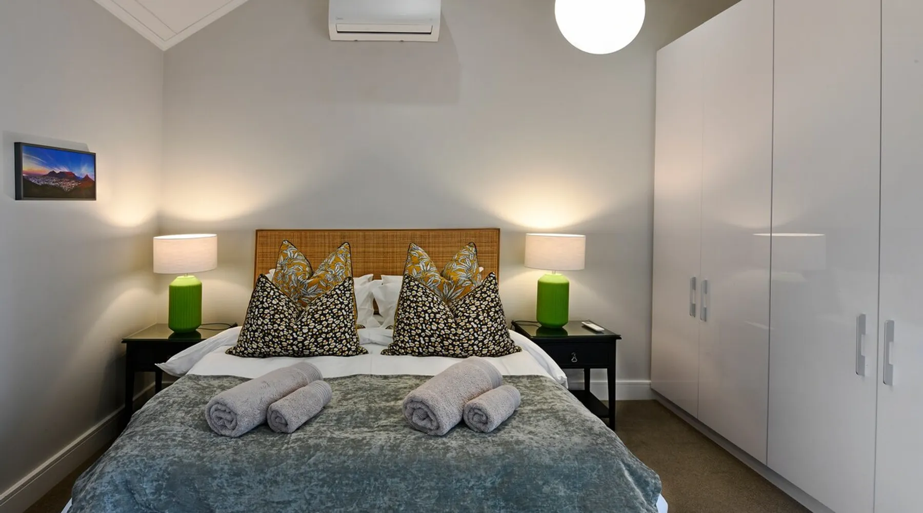 If you’re wanting to explore Franschhoek, The Village Cottage is located in the heart of this elegant historic town. Filled with art galleries, shops, boutiques and world class restaurants, Franschhoek is one of the oldest towns in South Africa, founded in 1688 by French Huguenot settlers. Quaint and vibey, it’s situated about a half-hour drive from Stellenbosch and a 45-minute drive from Cape Town. You’ll find it well worth the trip! The space The Village Cottage is the perfect place to call home after you’ve spent a day sampling delicious wine at one of the nearby estates or strolling the main stretch (just around the corner) with a shopping bag or two. Unwind in pure, blissful comfort – no detail was too small in ensuring that you have a luxurious and memorable stay. We hope you’ll make yourself right at home in our open-plan, air-conditioned kitchen and stylish lounge area. For cosy nights in, make use of the fireplace or television. Make your way upstairs and you’re in for a treat! Both bedrooms are equipped with aircon for those hot summer days. You’ll find it hard to leave the plush, king-sized bed in the main bedroom, which has a spacious dressing table and modern en suite bathroom (make time for a soak in the free-standing bathtub!). Bringing your laptop? Catch up on a few emails at the convenient work space on the upstairs landing. Our comfy second bedroom also has an en suite bathroom. If you’re craving fresh air, the townhouse features an outdoor sitting area where you can enjoy a braai (barbecue) with friends in the sunshine. Top-notch, stable Wi-Fi will help you stay calm and connected. Your car is safe and secure in our garage with direct access to the townhouse. Should loadshedding (a power outage) occur, rest easy – there’s an inverter and back-up battery system that will kick in automatically to keep the lights up and running. There is additional parking for another car in the complex. Franschhoek, Afrikaans for ‘French corner’, is nothing short of idyllic, with balmy summers and, more often than not, gorgeous snow-capped mountain peaks in winter. The town and surrounds will keep you captivated, so go on – extend your stay and make the most of this Western Cape gem! Hop on the world-famous Franschhoek Wine Tram. Dine at some of the country’s best restaurants. Explore our bohemian Saturday market. Bike or hike to soak up the spectacular valley scenery. Take in art and architecture and, most importantly, take your time. We hope your stay feels like an exhale and your heart feels full. Until then!