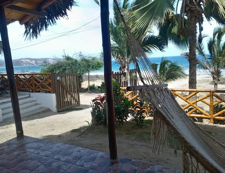 Enjoy eco-friendly cabins made of wood and bamboo that allow you to be in contact with nature and are facing the sea in the heart of the Machalilla Nature Reserve. We offer comfortable and sustainable cabins, perfect for connecting with nature. We also have exciting tours, such as visits to La Plata Island and Salango Island, whale watching, snorkeling, kayaking, and cultural excursions to the Agua Blanca Community. The space Enjoy an unforgettable experience in our spacious, eco-friendly wood and bamboo cabins, located right on the beach. Each cabin offers spectacular ocean views, ensuring privacy and comfort with hot water in all bathrooms. Enjoy an almost private beach, perfect for relaxing and connecting with nature. Our space, carefully preserved and clean, ensures a safe and quiet stay. Guaranteed entertainment with barbecue, ping-pong, and nightly bonfires on the beach. Explore local beauty with our tours to La Plata Island, Sucre Islet, and other nearby tourist destinations. All this, with the convenience of a private parking lot. Your ideal getaway awaits! Guest access Everything you need to relax by the sea In our facilities you will find: Ping pong table for family fun. Barbecue area for sharing meals outdoors. Swings on the beach. Shared kitchen with everything you need for cooking. Dining and resting areas with ocean views. Quiet areas facing the sea to relax. Nightly bonfires on the beach at no cost. If you book all the cabins, you can enjoy the common areas privately. Other things to note We are pet-friendly. Pets are welcome in the 3 cabins. It is important to mention the arrival of pets before their arrival.