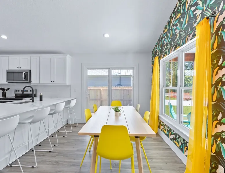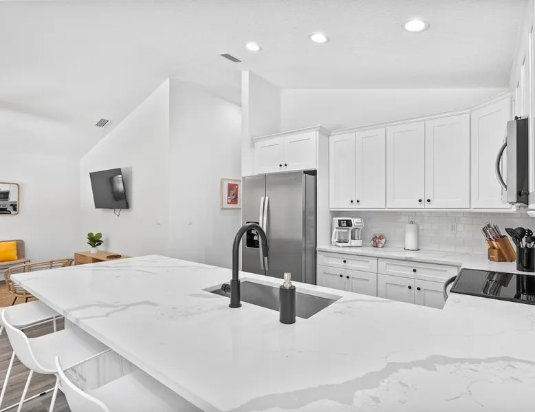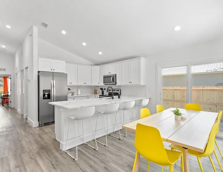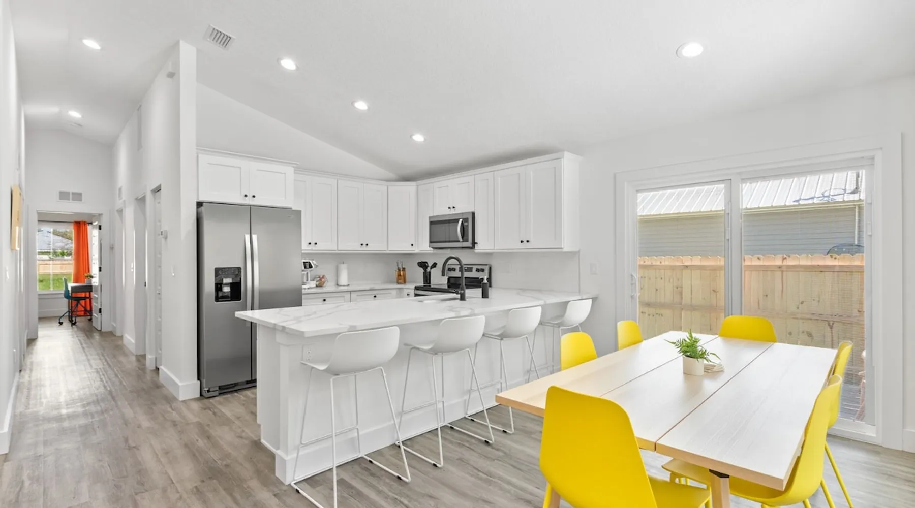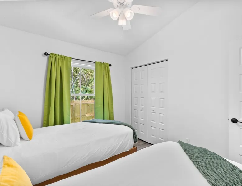 Welcome to our brand new 3 bedroom, 2 bathroom home located just minutes away from downtown St. Augustine! This beautiful and modern home has been thoughtfully designed to provide you with a stylish, comfortable, and relaxing stay. Just a short distance from downtown St. Augustine, where you can explore historic landmarks, local shops, and restaurants. Take a stroll through the beautiful historic district, or soak up the sun at one of the nearby beaches! We cannot wait to host you!! The space As you step inside, you'll be greeted by an open and spacious living area that features plenty of natural light and stylish decor. The fully equipped kitchen is perfect for preparing meals, with all the amenities you need to cook up a storm. You can also enjoy your meals at the dining table that seats eight people. The three cozy bedrooms offer comfortable sleeping arrangements for up to eight guests. The master bedroom has a king-sized bed and an ensuite bathroom, while the other two bedrooms feature a king-sized bed and two twin beds that share a bathroom. All bedrooms come with comfortable linens, pillows, and towels. The house is equipped with all the modern conveniences you need for a relaxing and comfortable stay, including air conditioning, heating, high-speed Wi-Fi, and a flat-screen TV. You can also take advantage of the washer and dryer located in the home. Step outside and enjoy the Florida sunshine in our spacious backyard which features a grill and a comfortable seating area. This is the perfect place to relax and unwind after a long day of exploring the city. If you need more space inquire about renting our identical home next door! Guest access Guests have access to the whole home. We do have trash pickup once a week and yard maintenance once a week so they will have access to the backyard during maintenance only. Other things to note The historic city of St. Augustine, Florida, is known for its rich history and beautiful beaches. Here are some main attractions to do around this area: St. Augustine Lighthouse & Maritime Museum - This iconic lighthouse has been guiding ships to safety since 1874 and offers breathtaking views of the city and ocean. Castillo de San Marcos National Monument - A 17th-century Spanish fort that served as a military outpost for over 200 years. Visitors can explore the fort's intricate architecture and learn about its history. St. Augustine Alligator Farm Zoological Park - This zoo is home to over 200 species of animals, including alligators, crocodiles, and exotic birds. St. Augustine Historic District - This charming district is home to many historic buildings and museums, including the oldest wooden schoolhouse in the United States. St. Augustine Beach - This stunning beach offers white sand, clear water, and a variety of water sports and activities. Flagler College - A beautiful campus built in the late 19th century, now a historic landmark that features unique architectural features and rich history. Lightner Museum - A former hotel that now houses a collection of fine and decorative art, including stained glass, sculpture, and paintings. Ponce de Leon's Fountain of Youth Archaeological Park - A historical park that offers visitors a chance to explore the place where Spanish explorer Ponce de Leon first landed in Florida in 1513. Anastasia State Park - A natural park with white sandy beaches, tidal marshes, and maritime hammocks, perfect for hiking, biking, and fishing. St. Augustine Distillery - A locally owned and operated craft distillery that produces award-winning bourbon, gin, and vodka. Visitors can take a tour of the facility and sample the spirits.