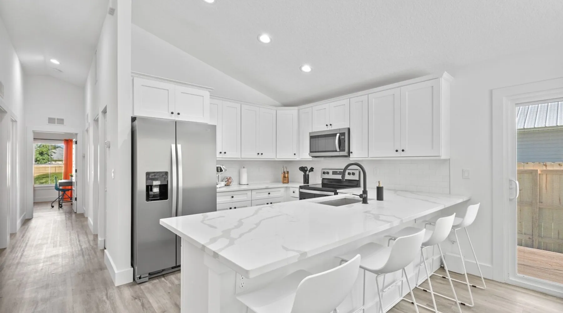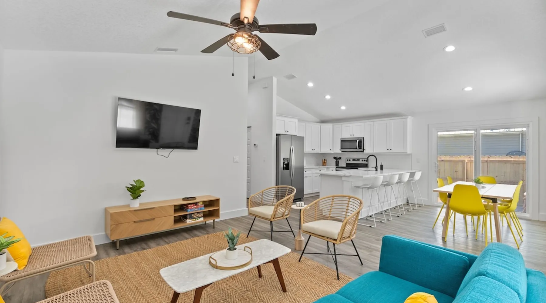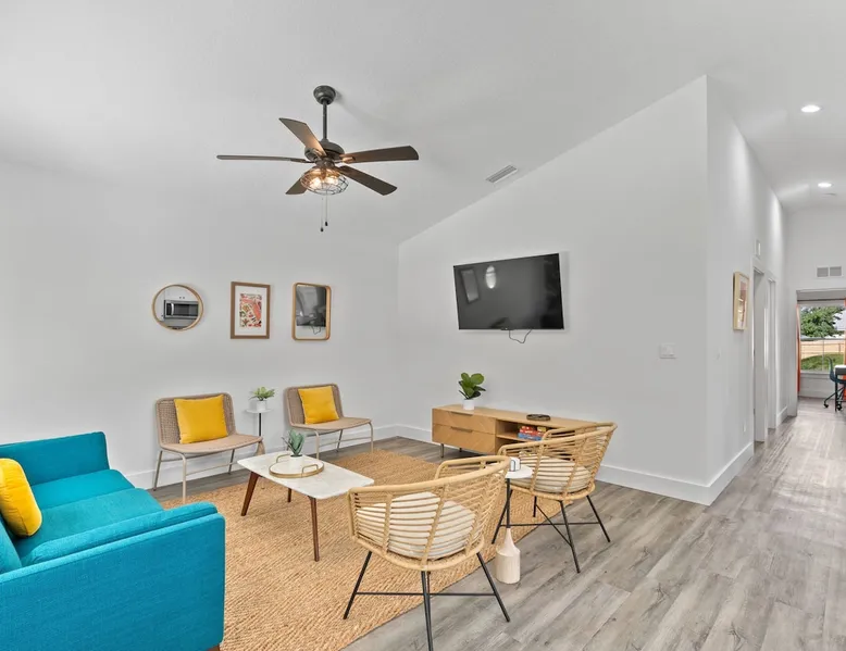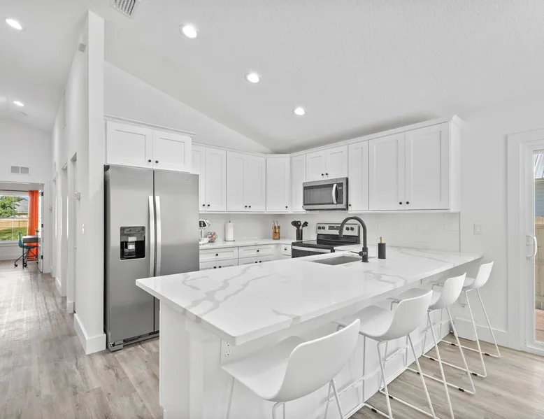 Welcome to our brand new 3 bedroom, 2 bathroom home located just minutes away from downtown St. Augustine! This beautiful and modern home has been thoughtfully designed to provide you with a stylish, comfortable, and relaxing stay. Just a short distance from downtown St. Augustine, where you can explore historic landmarks, local shops, and restaurants. Take a stroll through the beautiful historic district, or soak up the sun at one of the nearby beaches! We cannot wait to host you!! The space As you step inside, you'll be greeted by an open and spacious living area that features plenty of natural light and stylish decor. The fully equipped kitchen is perfect for preparing meals, with all the amenities you need to cook up a storm. You can also enjoy your meals at the dining table that seats eight people. The three cozy bedrooms offer comfortable sleeping arrangements for up to eight guests. The master bedroom has a king-sized bed and an ensuite bathroom, while the other two bedrooms feature a king-sized bed and two twin beds that share a bathroom. All bedrooms come with comfortable linens, pillows, and towels. The house is equipped with all the modern conveniences you need for a relaxing and comfortable stay, including air conditioning, heating, high-speed Wi-Fi, and a flat-screen TV. You can also take advantage of the washer and dryer located in the home. Step outside and enjoy the Florida sunshine in our spacious backyard which features a grill and a comfortable seating area. This is the perfect place to relax and unwind after a long day of exploring the city. If you need more space inquire about renting our identical home next door! Guest access Guests have access to the whole home. We do have trash pickup once a week and yard maintenance once a week so they will have access to the backyard during maintenance only. Other things to note The historic city of St. Augustine, Florida, is known for its rich history and beautiful beaches. Here are some main attractions to do around this area: St. Augustine Lighthouse & Maritime Museum - This iconic lighthouse has been guiding ships to safety since 1874 and offers breathtaking views of the city and ocean. Castillo de San Marcos National Monument - A 17th-century Spanish fort that served as a military outpost for over 200 years. Visitors can explore the fort's intricate architecture and learn about its history. St. Augustine Alligator Farm Zoological Park - This zoo is home to over 200 species of animals, including alligators, crocodiles, and exotic birds. St. Augustine Historic District - This charming district is home to many historic buildings and museums, including the oldest wooden schoolhouse in the United States. St. Augustine Beach - This stunning beach offers white sand, clear water, and a variety of water sports and activities. Flagler College - A beautiful campus built in the late 19th century, now a historic landmark that features unique architectural features and rich history. Lightner Museum - A former hotel that now houses a collection of fine and decorative art, including stained glass, sculpture, and paintings. Ponce de Leon's Fountain of Youth Archaeological Park - A historical park that offers visitors a chance to explore the place where Spanish explorer Ponce de Leon first landed in Florida in 1513. Anastasia State Park - A natural park with white sandy beaches, tidal marshes, and maritime hammocks, perfect for hiking, biking, and fishing. St. Augustine Distillery - A locally owned and operated craft distillery that produces award-winning bourbon, gin, and vodka. Visitors can take a tour of the facility and sample the spirits.