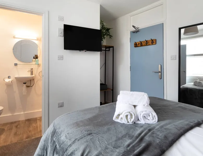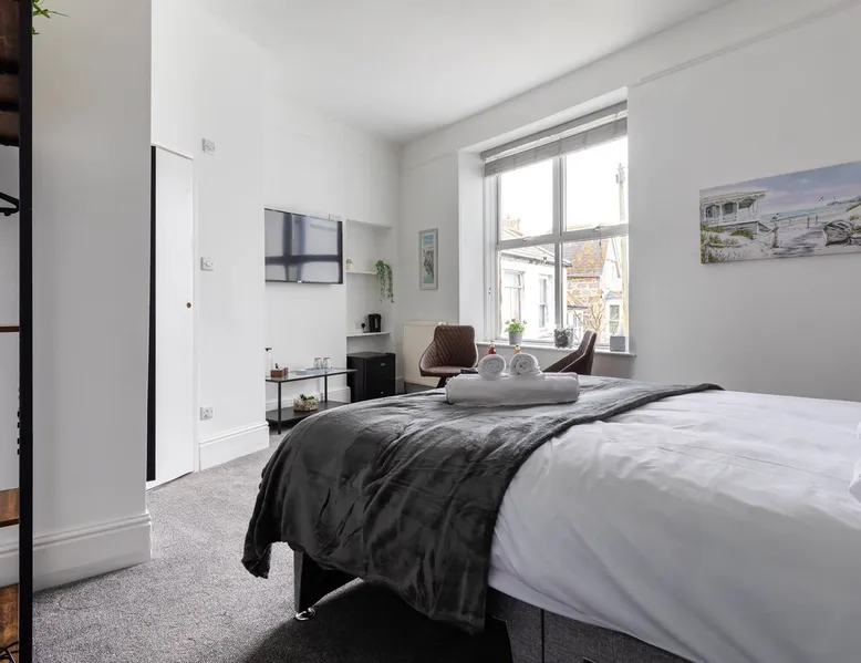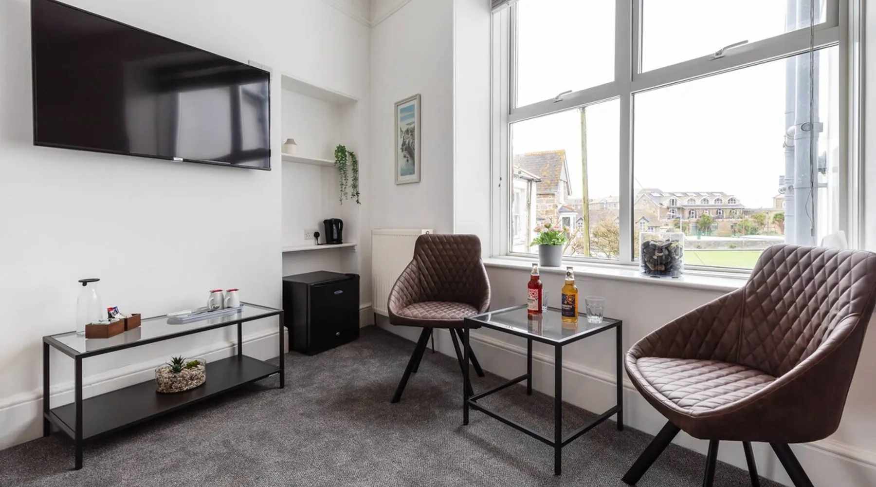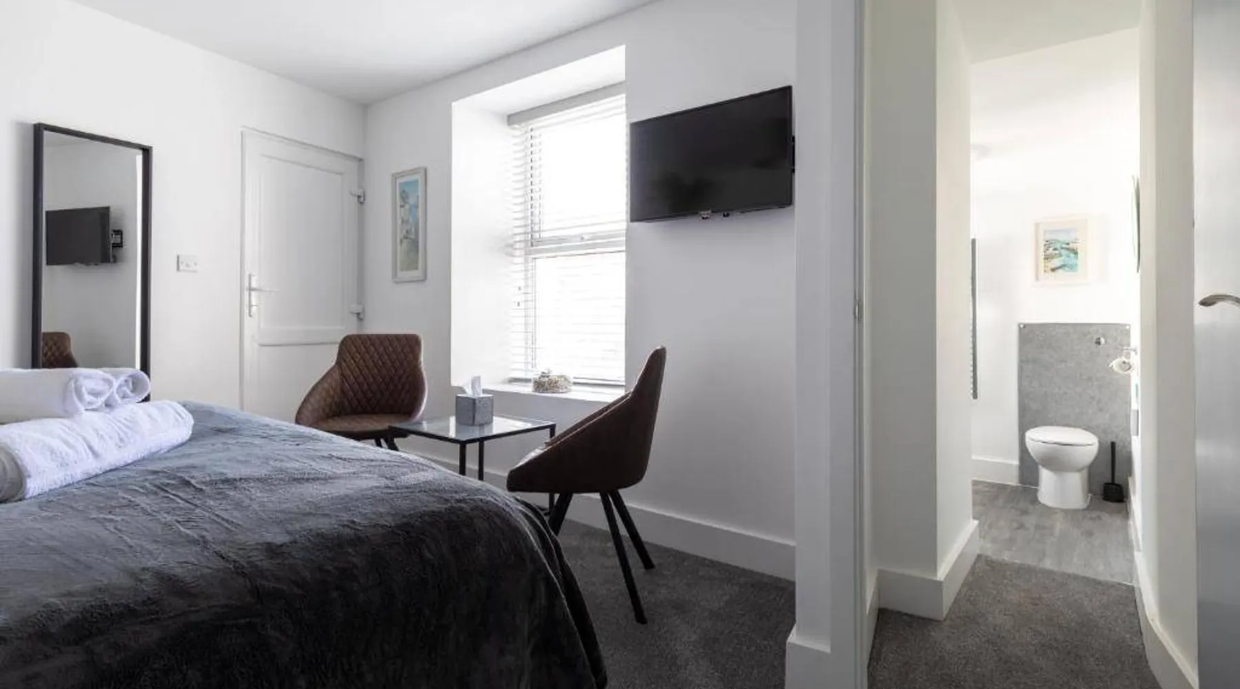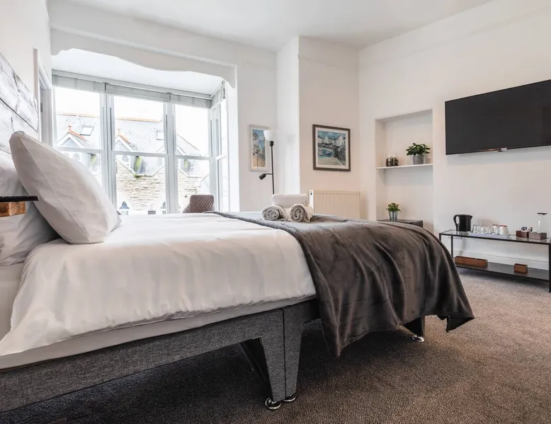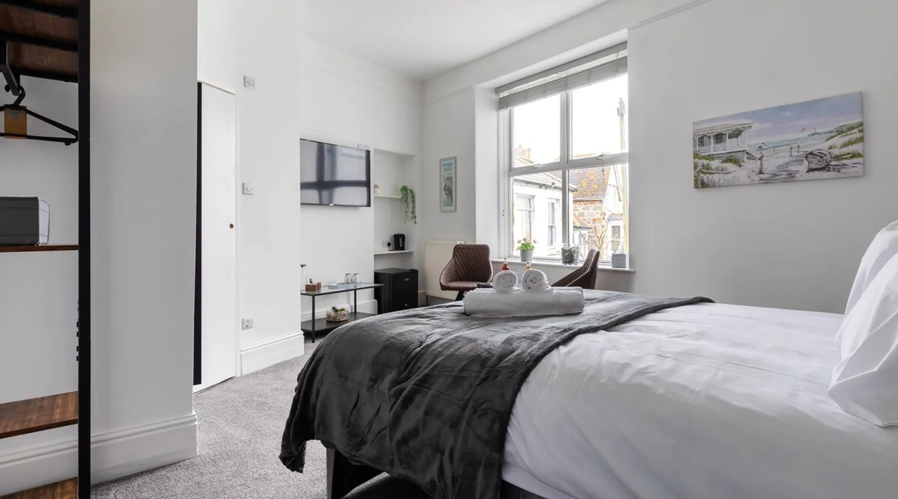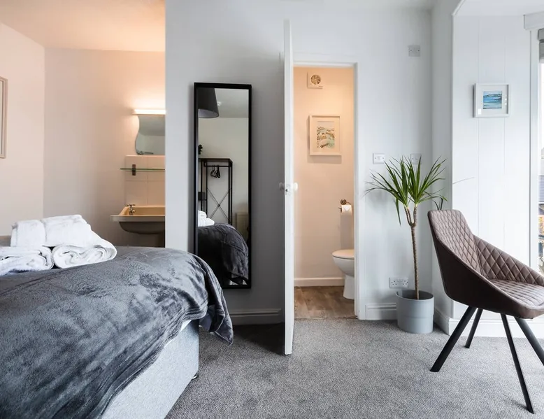 A spacious first-floor double room combining modern amenities with Cornish charm, and has sea views over Mounts Bay. En suite bathroom tea and coffee superfast Wi-Fi massive smart TV reading lamps clothes storage bedside tables USB chargers. Guest access All the essential arrival information e.g door code is sent out the day before arrival. Other things to note If you have a general question please read all the property information on Airbnb. If you still can't find an answer to your question, please message us, we will respond within 24hrs.