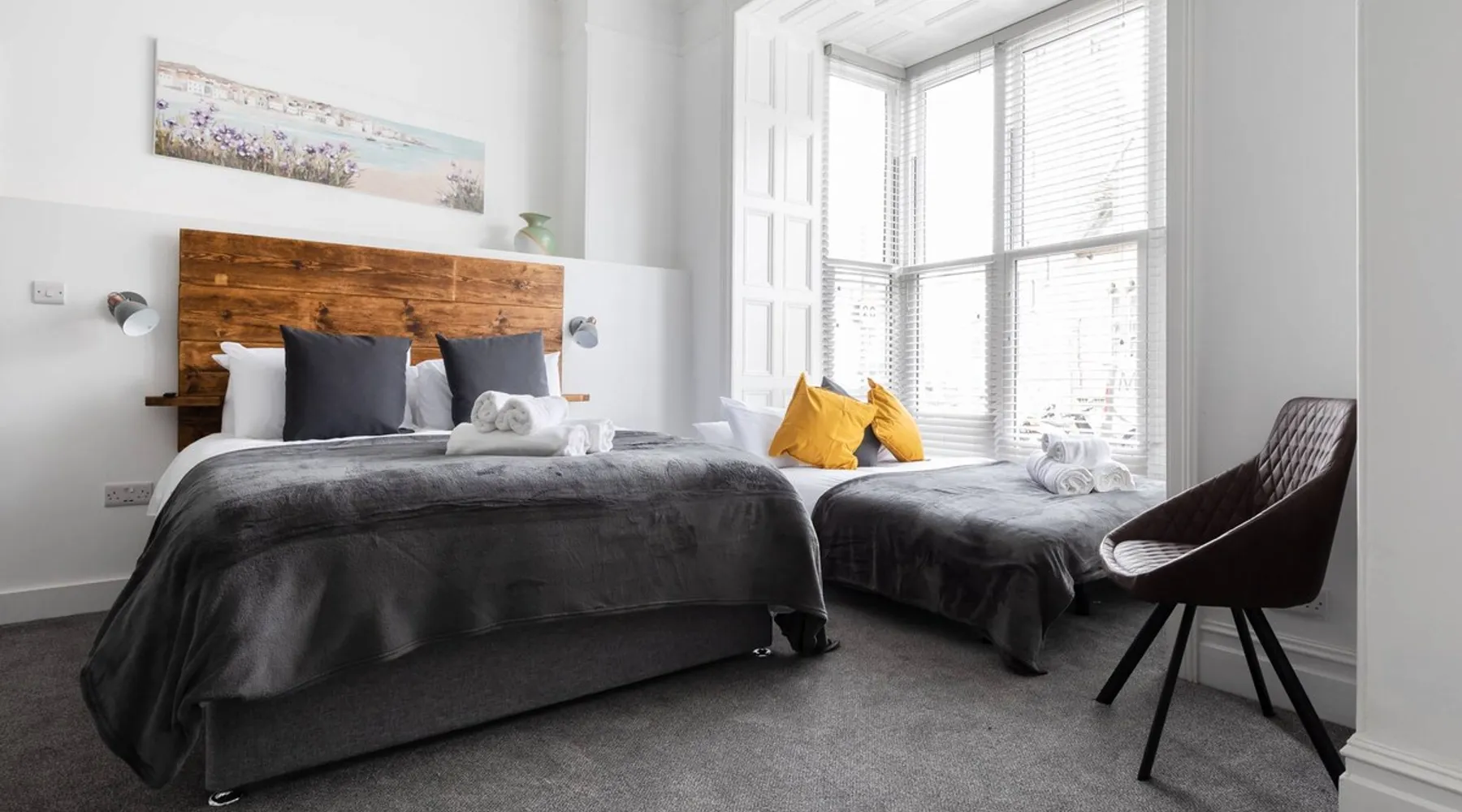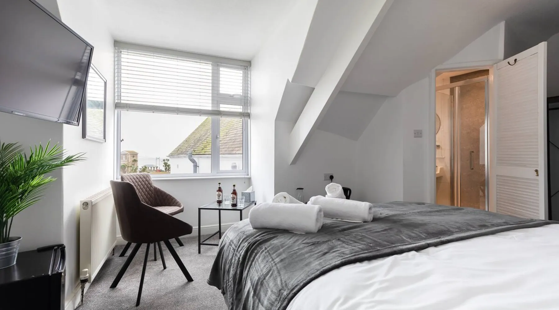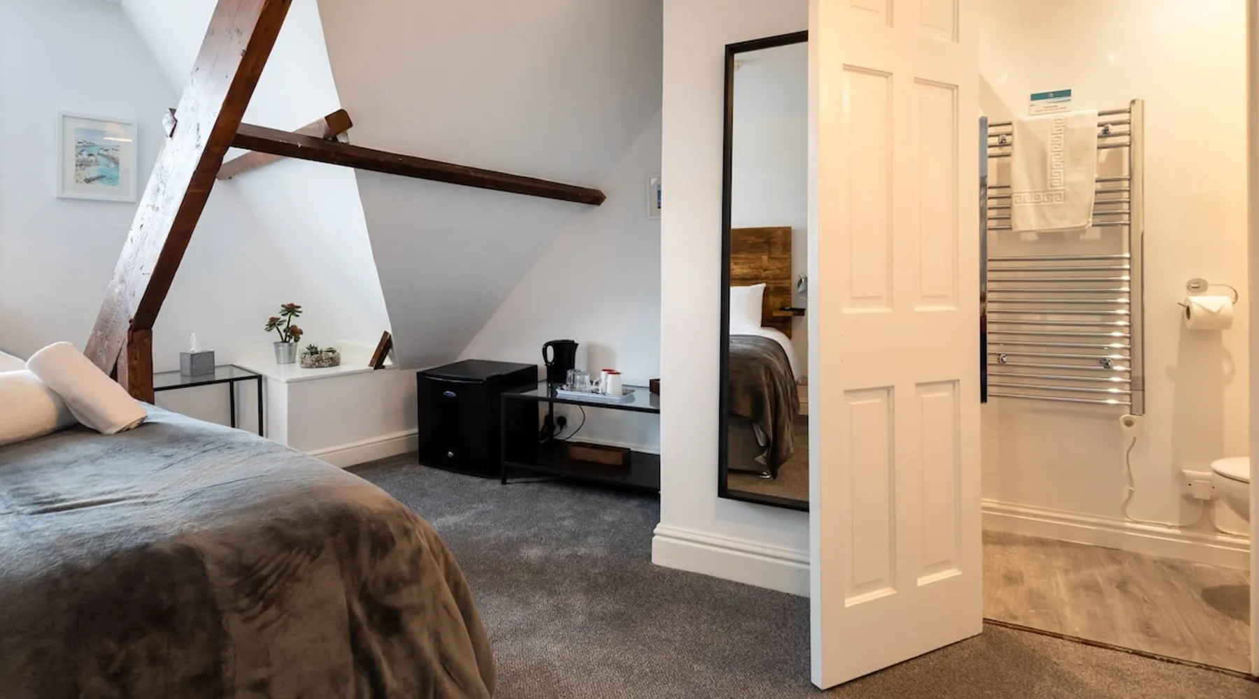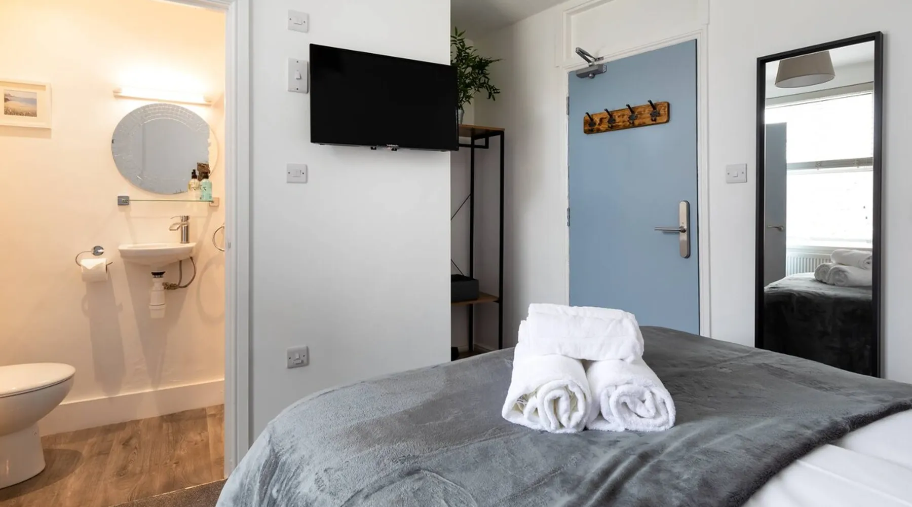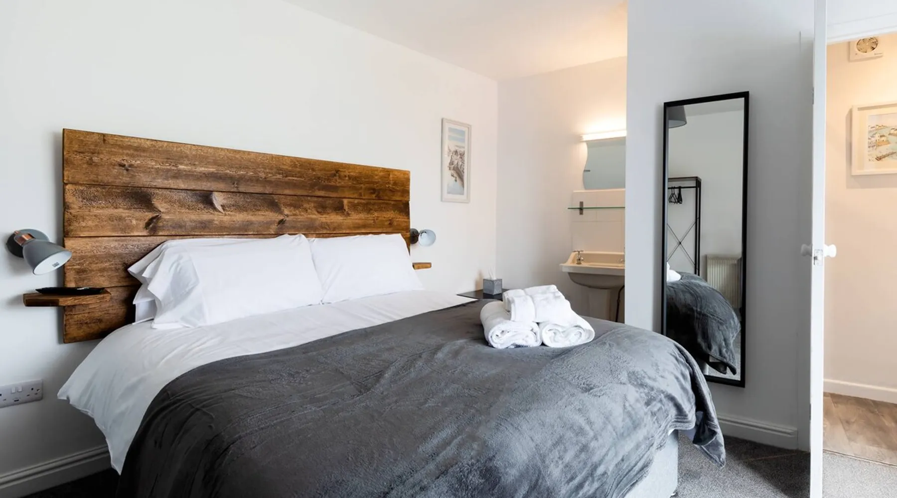 A spacious first-floor double room combining modern amenities with Cornish charm, and has sea views over Mounts Bay. En suite bathroom tea and coffee superfast Wi-Fi massive smart TV reading lamps clothes storage bedside tables USB chargers. Guest access All the essential arrival information e.g door code is sent out the day before arrival. Other things to note If you have a general question please read all the property information on Airbnb. If you still can't find an answer to your question, please message us, we will respond within 24hrs.
