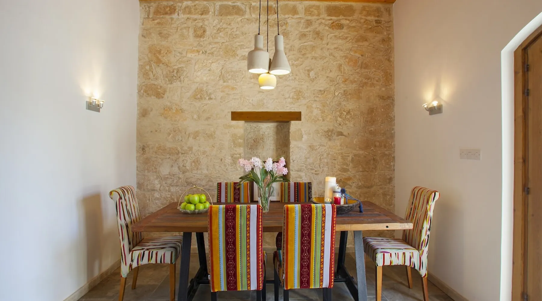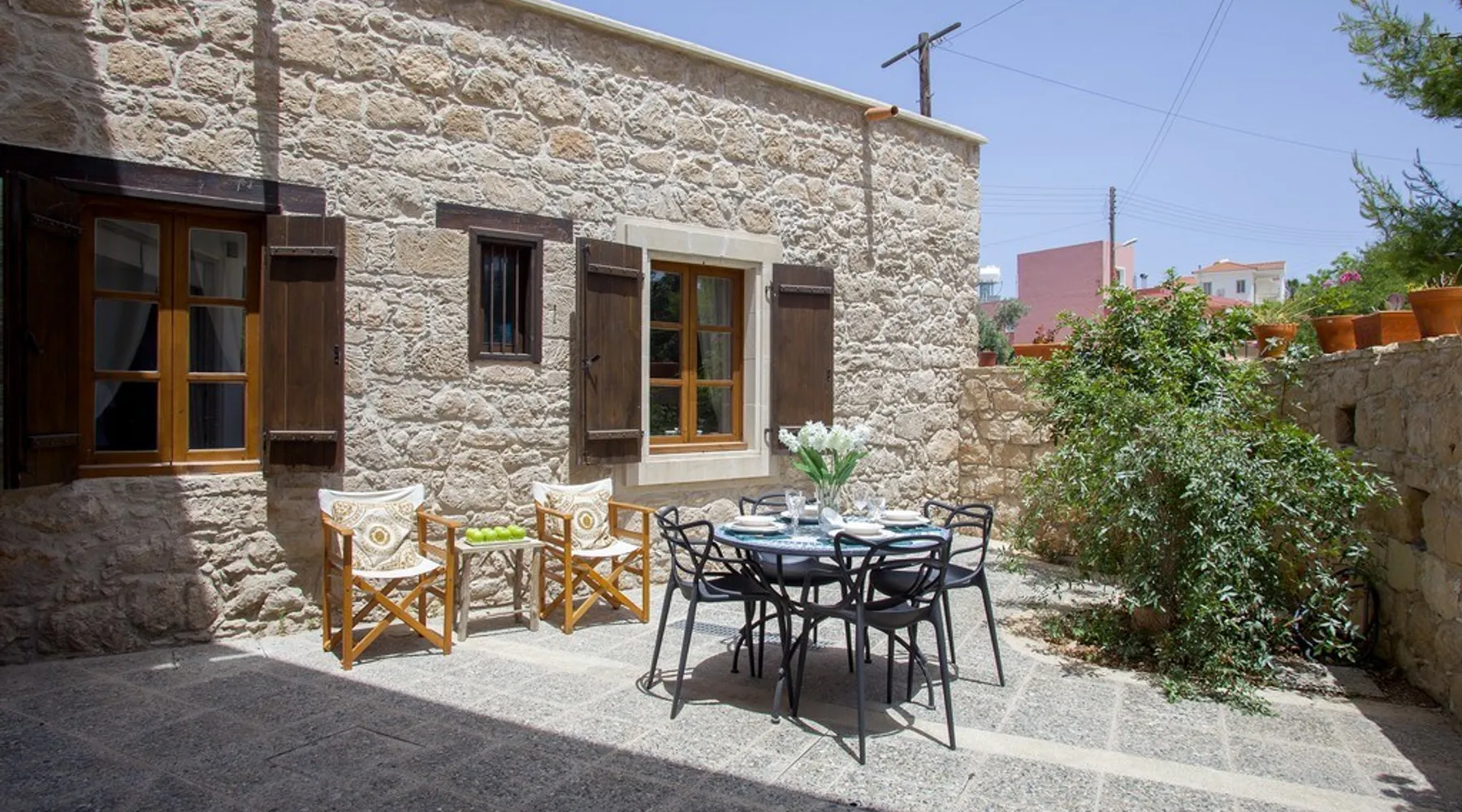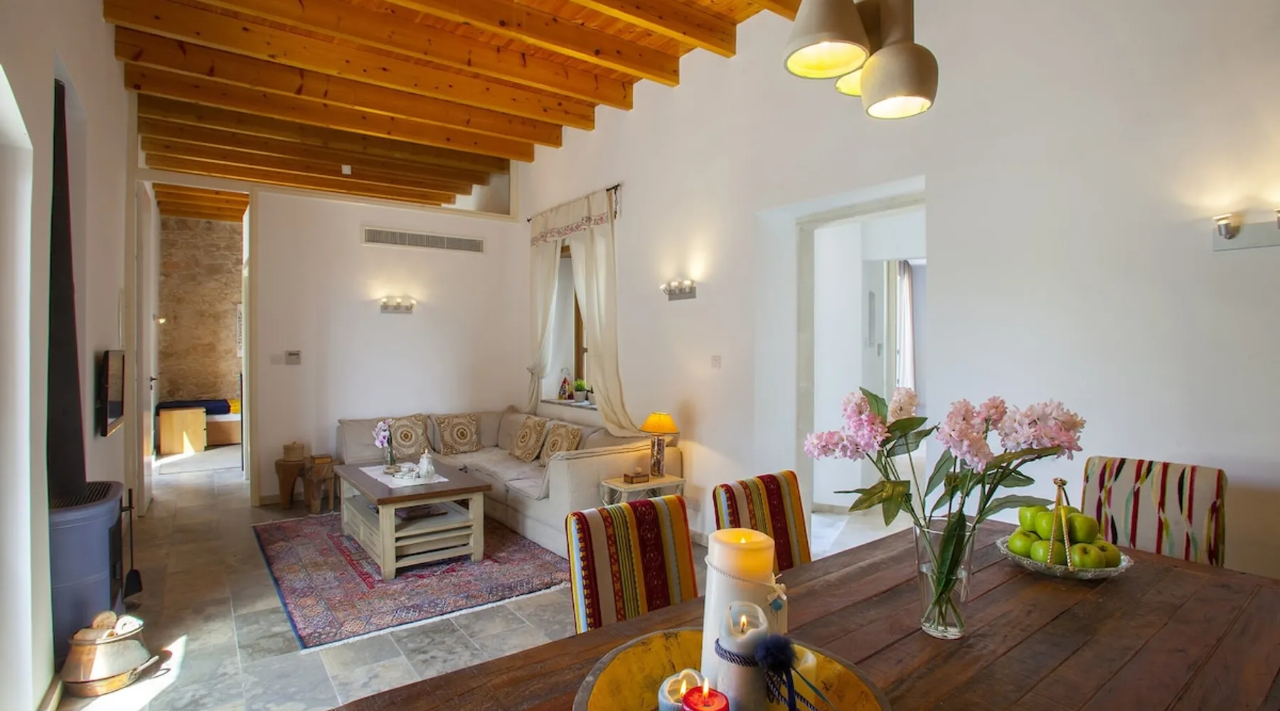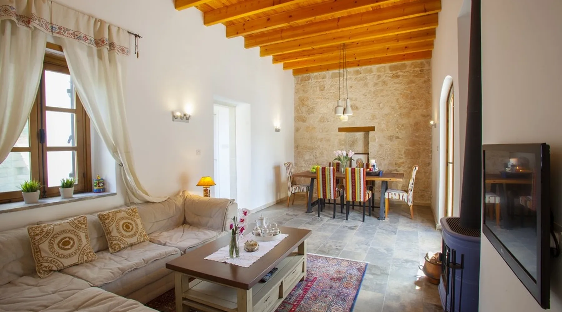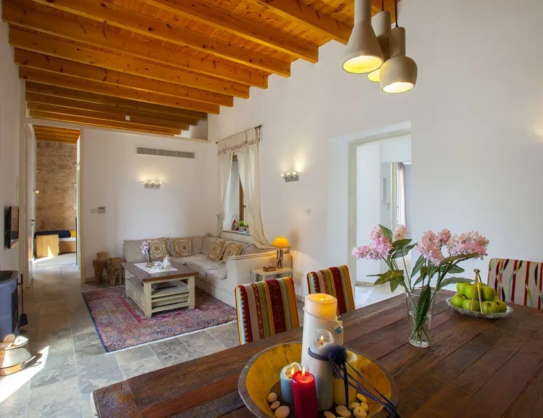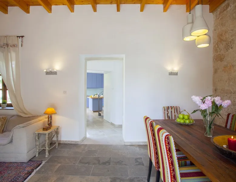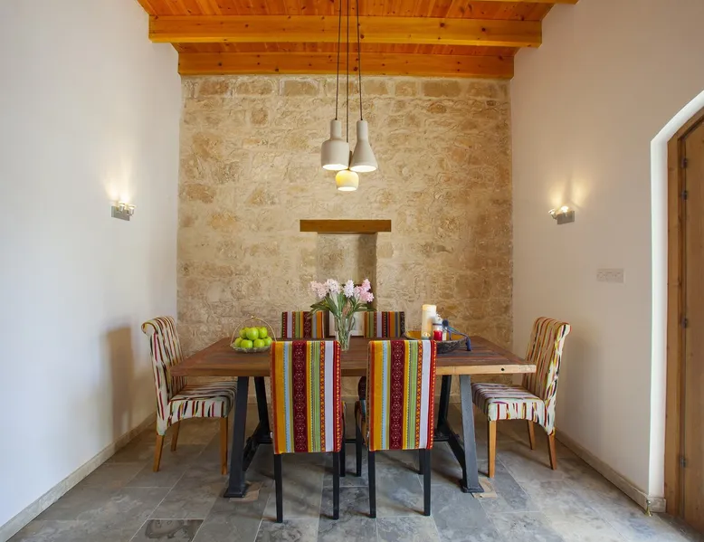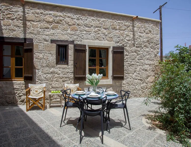 Situated near the centre of the small picturesque Mesogi village only ten minutes' drive from Paphos town centre Mesogi Stone Cottage is the ideal place for a small family to enjoy Cyprus' best nature sites of the West Coast of the island. Combining the old with the new this traditional stone cottage has been fully renovated and decorated with style and care to include all modern facilities and appliances. The space Walking into the living room with stone walls and wooden roof beams, a modern comfortable sofa and dining table, a wood-burning fire place and TV immediately puts you into the mood of a perfectly relaxing holiday. The ground floor also includes a twin bedroom a bathroom and a modern fully equipped kitchen that opens wide into small court yard. The first floor features the master bedroom with a large double bed and a windows that open wide into a small veranda overlooking the court yard below. There is also an en-suite shower room and besides the air-condition there is also a ceiling fan for extra comfort. The whole cottage is fully air-conditioned and offers free Wi-Fi internet. Guest access The entire place is available to the guests. Registration Details AEMAK-PAF0002943