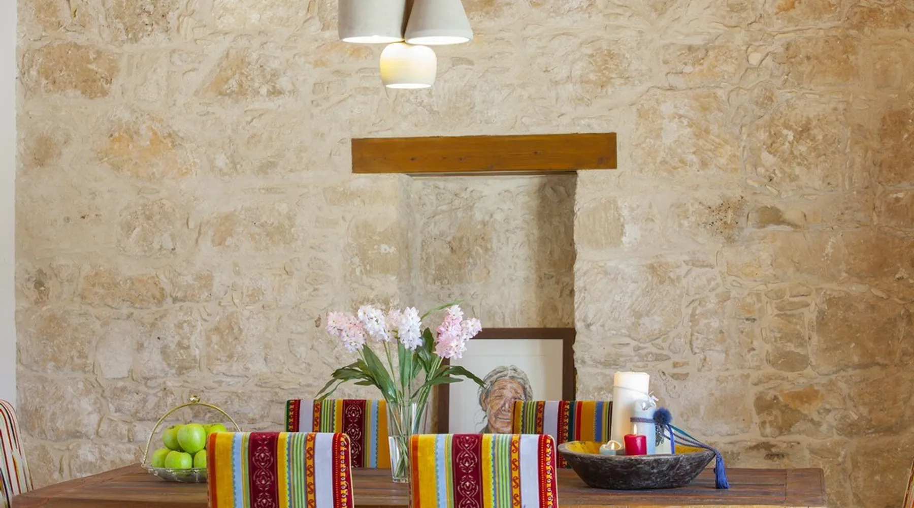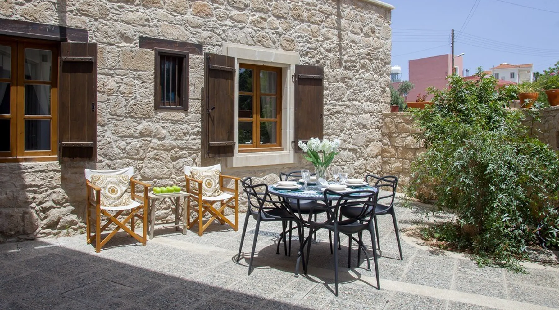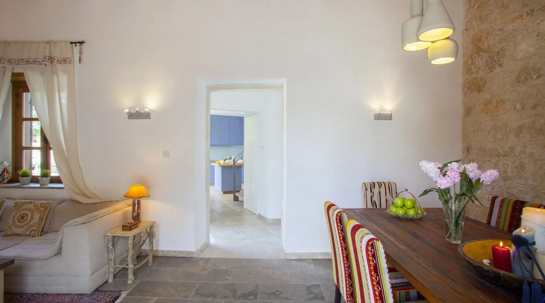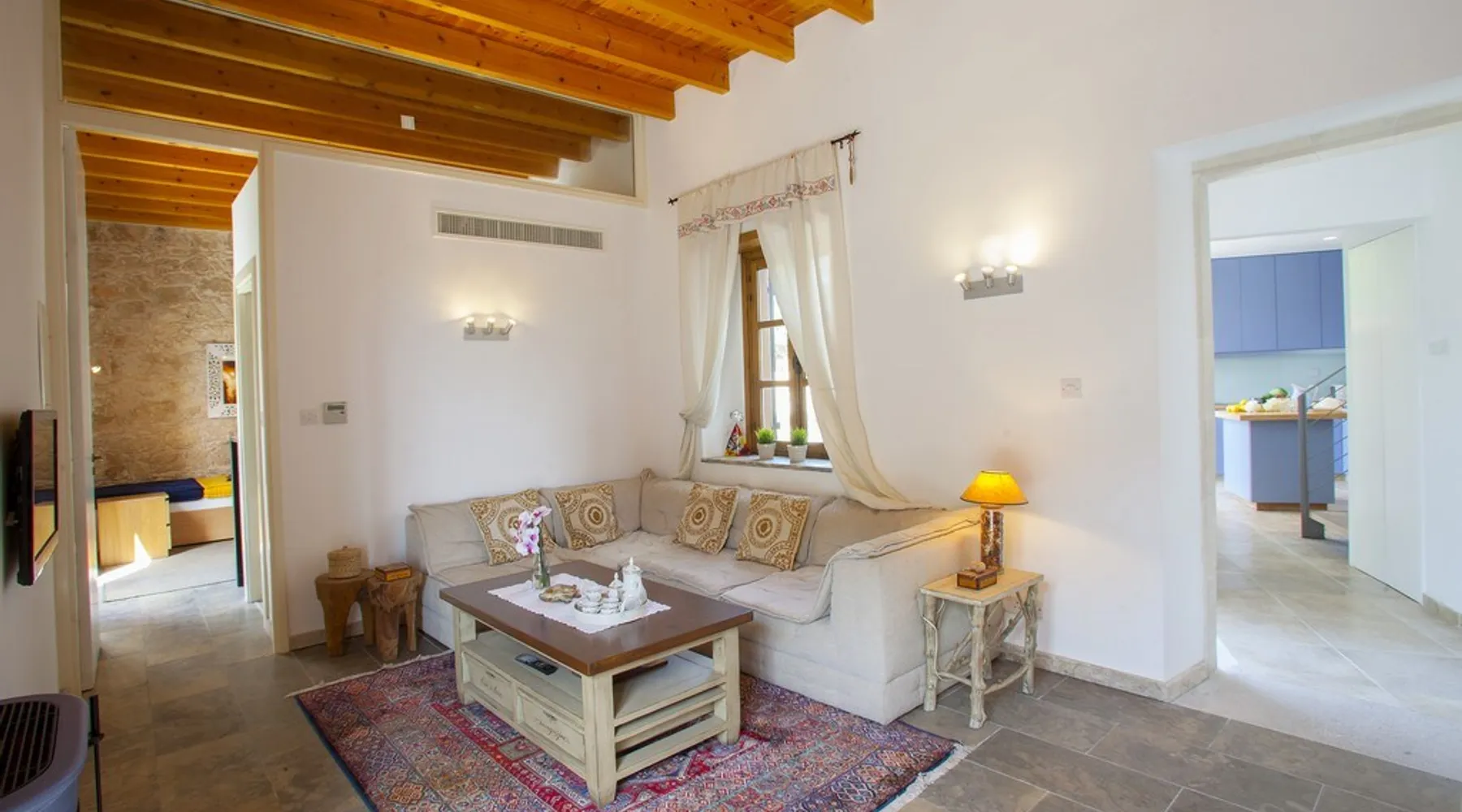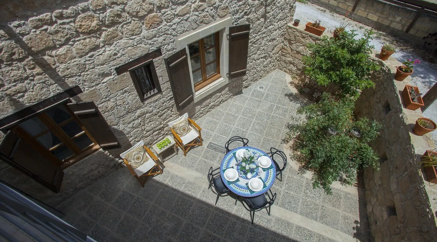 Situated near the centre of the small picturesque Mesogi village only ten minutes' drive from Paphos town centre Mesogi Stone Cottage is the ideal place for a small family to enjoy Cyprus' best nature sites of the West Coast of the island. Combining the old with the new this traditional stone cottage has been fully renovated and decorated with style and care to include all modern facilities and appliances. The space Walking into the living room with stone walls and wooden roof beams, a modern comfortable sofa and dining table, a wood-burning fire place and TV immediately puts you into the mood of a perfectly relaxing holiday. The ground floor also includes a twin bedroom a bathroom and a modern fully equipped kitchen that opens wide into small court yard. The first floor features the master bedroom with a large double bed and a windows that open wide into a small veranda overlooking the court yard below. There is also an en-suite shower room and besides the air-condition there is also a ceiling fan for extra comfort. The whole cottage is fully air-conditioned and offers free Wi-Fi internet. Guest access The entire place is available to the guests. Registration Details AEMAK-PAF0002943