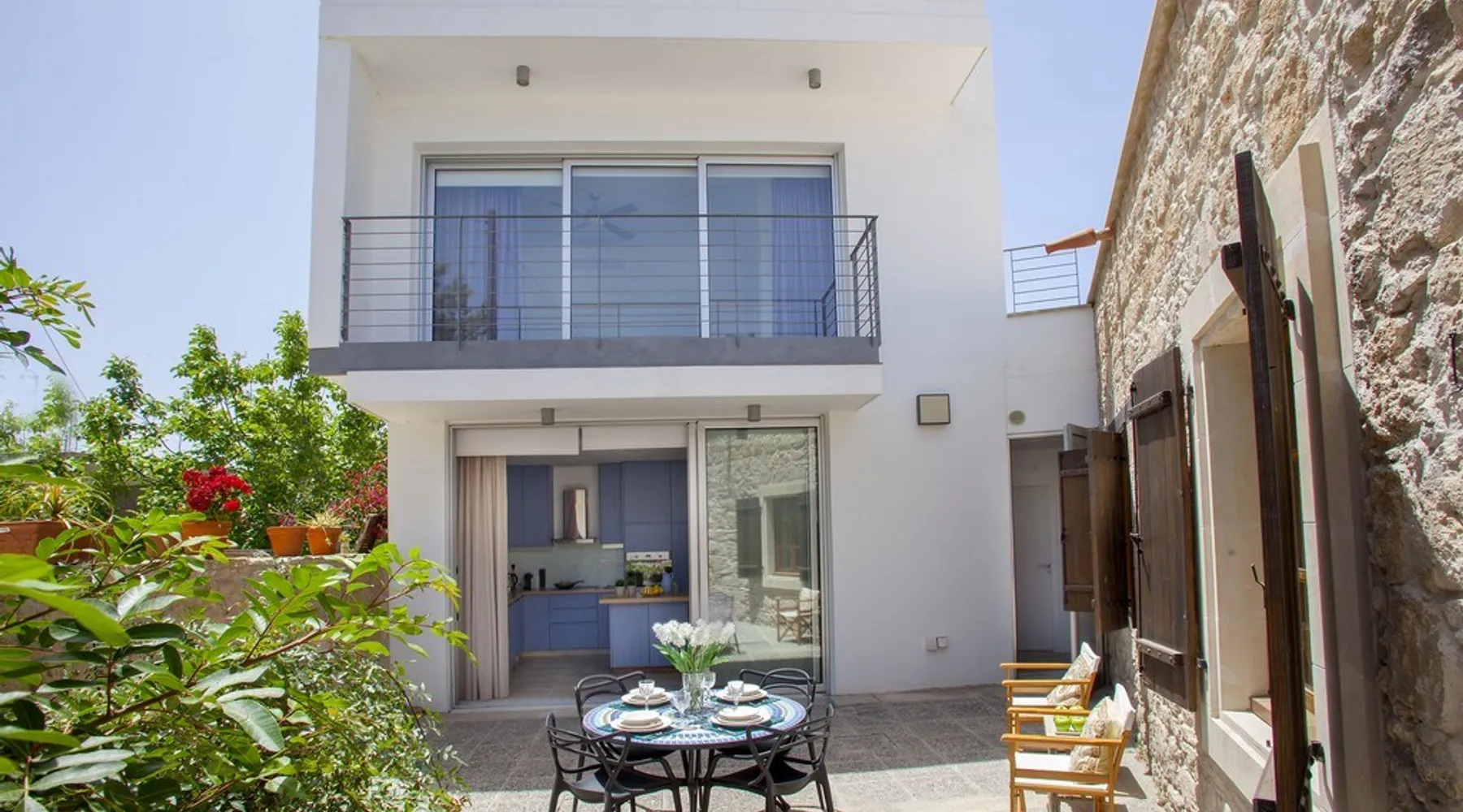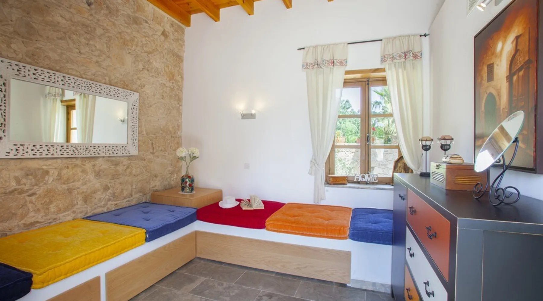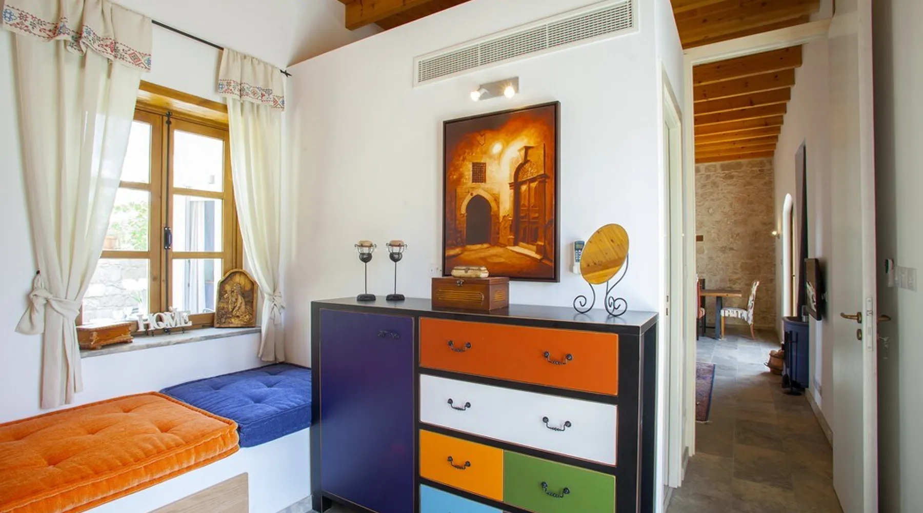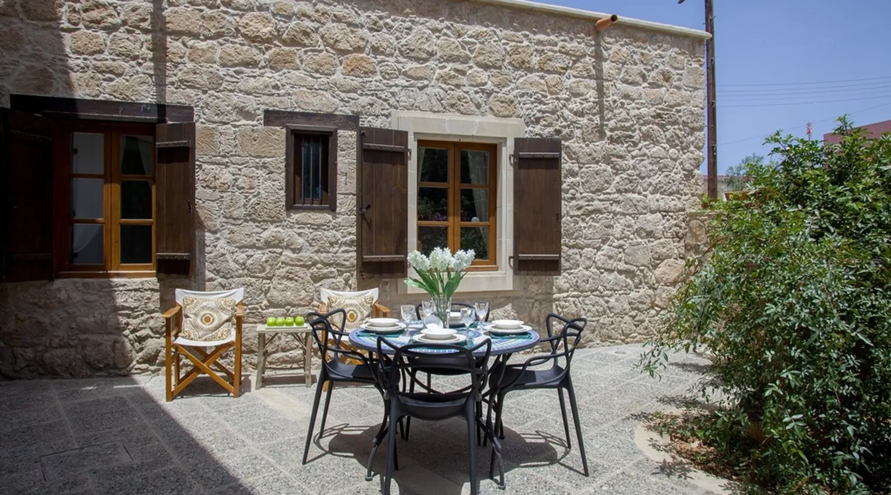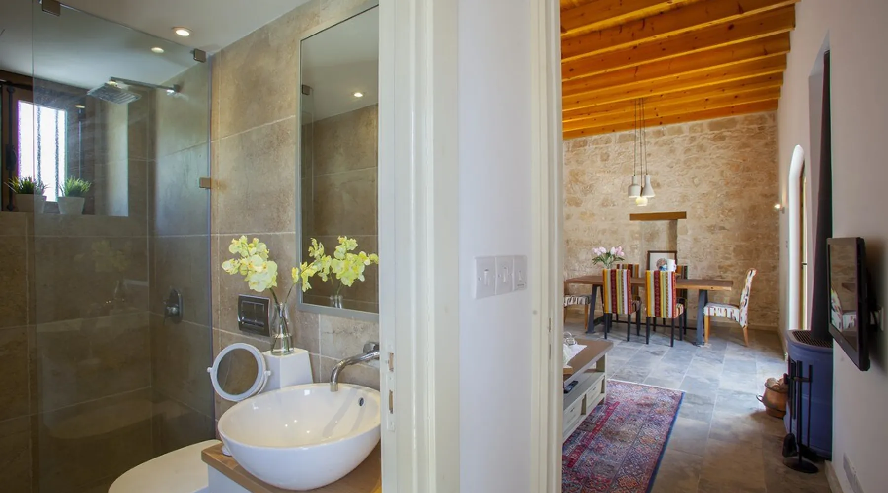 Situated near the centre of the small picturesque Mesogi village only ten minutes' drive from Paphos town centre Mesogi Stone Cottage is the ideal place for a small family to enjoy Cyprus' best nature sites of the West Coast of the island. Combining the old with the new this traditional stone cottage has been fully renovated and decorated with style and care to include all modern facilities and appliances. The space Walking into the living room with stone walls and wooden roof beams, a modern comfortable sofa and dining table, a wood-burning fire place and TV immediately puts you into the mood of a perfectly relaxing holiday. The ground floor also includes a twin bedroom a bathroom and a modern fully equipped kitchen that opens wide into small court yard. The first floor features the master bedroom with a large double bed and a windows that open wide into a small veranda overlooking the court yard below. There is also an en-suite shower room and besides the air-condition there is also a ceiling fan for extra comfort. The whole cottage is fully air-conditioned and offers free Wi-Fi internet. Guest access The entire place is available to the guests. Registration Details AEMAK-PAF0002943
