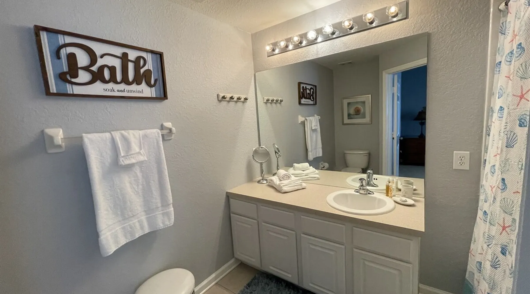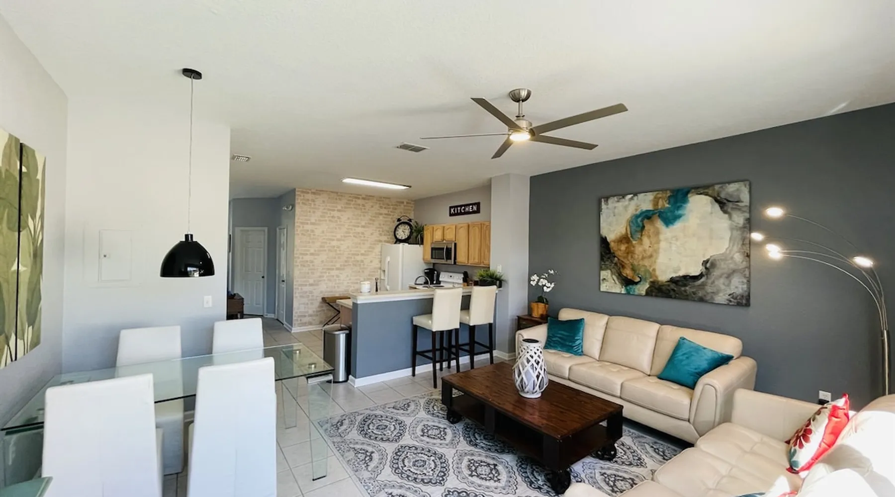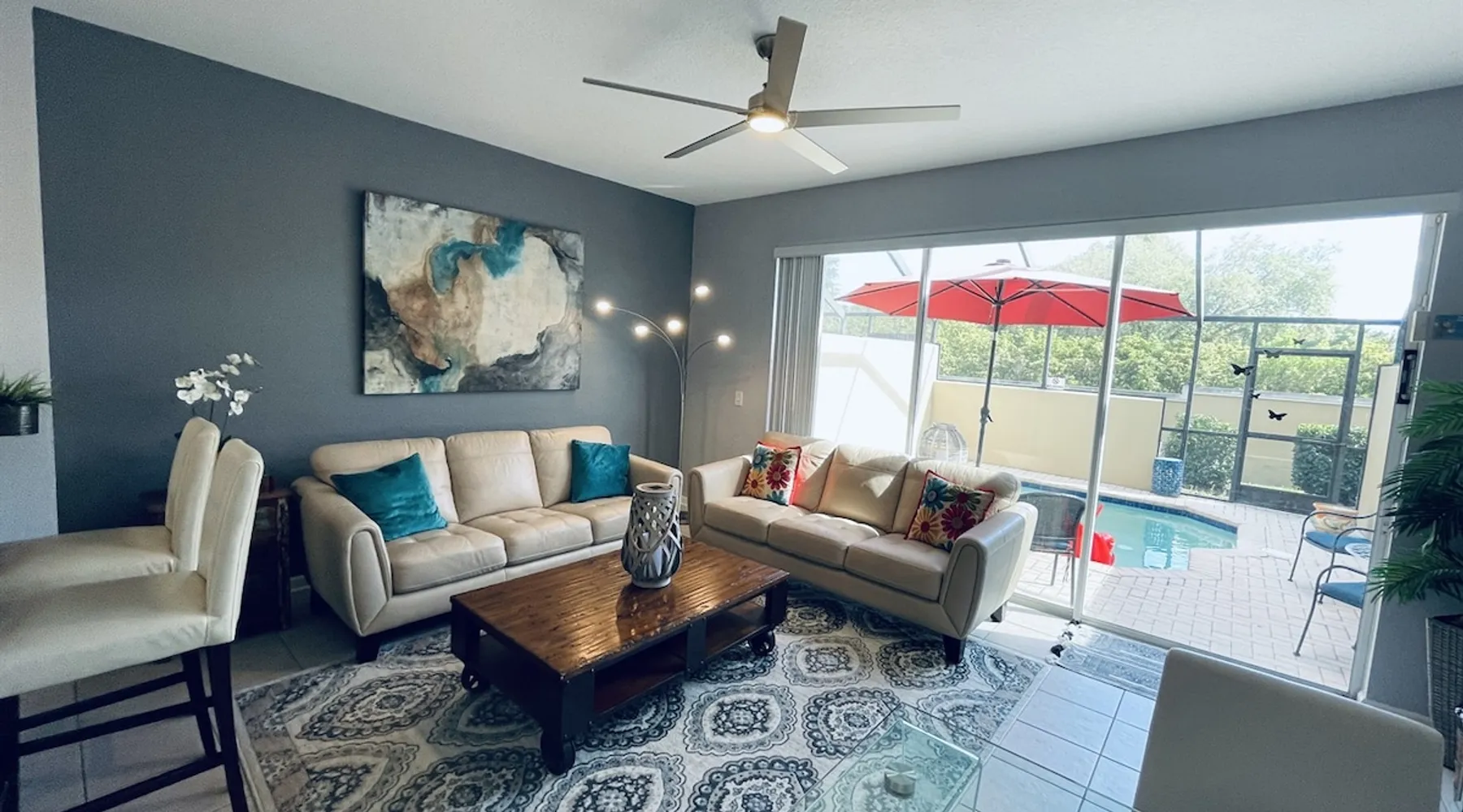 ✨ Welcome to the Fantasmic Magical Villa! ✨ Your dream Disney getaway begins here- just 5 minutes from Walt Disney World and 20 minutes from Universal Studios & SeaWorld! Relax in our magical villa with a south-facing private splash pool with no rear neighbors for ultimate privacy. Enjoy an open floor plan, fully equipped kitchen, coffee & Keurig machine with great guest care management! 🌴 Bonus: Complimentary pool heat all winter! As our guest, you’ll have FREE access to all Windsor Hills Re The space Welcome to your Magical Villa, a bright and spacious 3BR/3BA townhome perfect for families or groups (sleeps 6). Each bedroom has its own full bathroom, offering comfort and privacy. The open-concept living area features a fully equipped kitchen, dining space, and cozy lounge. Enjoy free high-speed Wi-Fi, smart TVs in every room, and family amenities like a Pack ’n Play, high chair, stroller, and kids’ games. Relax on your private screened patio with no rear neighbors or splash in your south-facing heated pool (complimentary pool heat + safety fence). Enhanced cleaning, smart lock entry, and 24/7 security ensure peace of mind. Just a short walk to the clubhouse, where you’ll find a lagoon-style pool, water slides, splash zone, hot tub, game room, movie theater, and more! 🛏 King Suite, Queen Suite, Bunk Bed Suite (Twin over Full) & Twin Bed. Guest access All guests can enjoy the many resort amenities free of charge including access to Windsor Hills Water park featuring dueling water slides, Olympic size lagoon style pool and hot tub, toddler pool, fitness center with top-of-the-line fitness equipment, recreational park with tennis, putting green, volleyball, children’s playground, a picnic area, game room, movie theater, ATM and market place & grill. Please note, community pool is closed for maintenance for the month of September 2024. Waterpark will still be open. Other things to note 🌟 Features & Amenities 🌟 🏡 Comfort & Space • 3 Bedrooms / 3 Full Bathrooms (Sleeps 6) • Each bedroom has a private ensuite bathroom • Bright open living & dining area with modern décor • Fully equipped kitchen with appliances, cookware & utensils ☀️ Outdoor Living • Private south-facing splash pool with complimentary pool heat • Screened patio with no rear neighbors for extra privacy • Baby safety fence for peace of mind 👨👩👧 Family-Friendly • Pack ’n Play, high chair, stroller & kids’ games provided • Modern themed bedrooms: 💻 Entertainment & Connectivity • Free high-speed Wi-Fi throughout • Cable TV in every room 🏰 Windsor Hills Resort Access (FREE!) • Lagoon-style pool & hot tub • Water slides & kids’ splash zone • Movie theater, game room, fitness center & playgrounds • 24/7 gated security for added safety 🧼 Safety & Convenience • Smart lock entry – no keys needed • Video doorbell for security • Enhanced cleaning protocols • Upgraded A/C, pool heater, linens & décor
