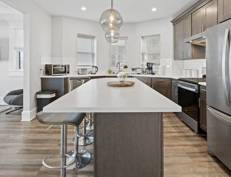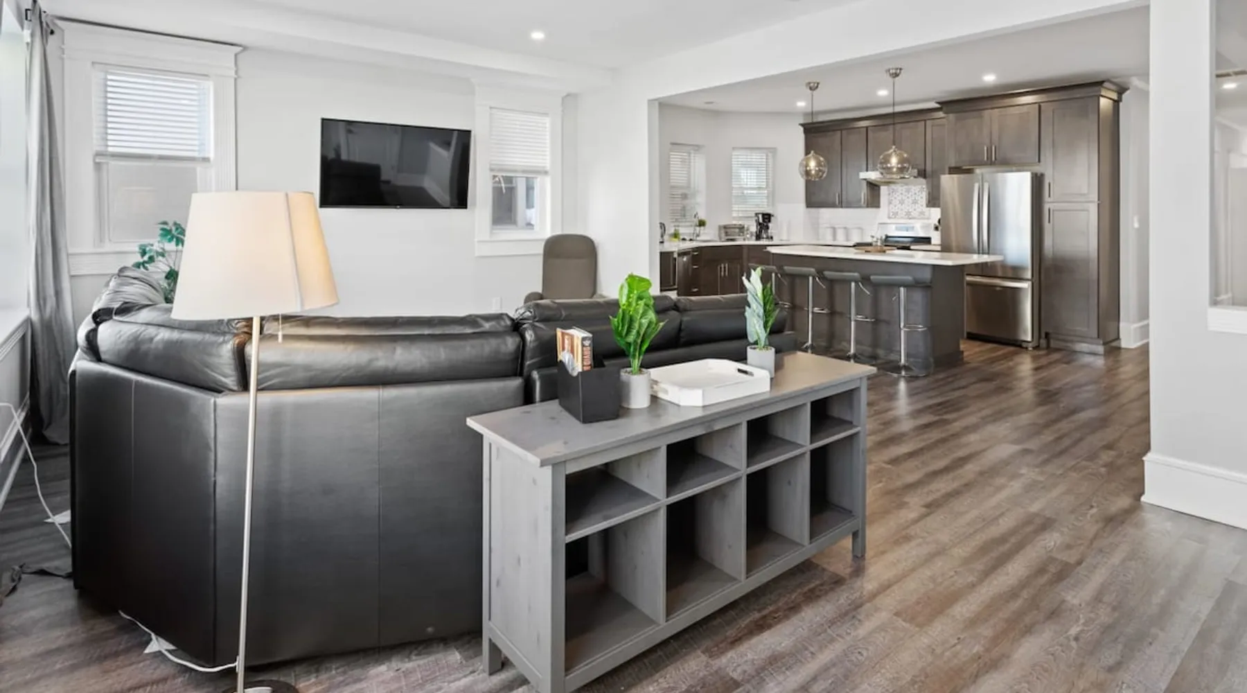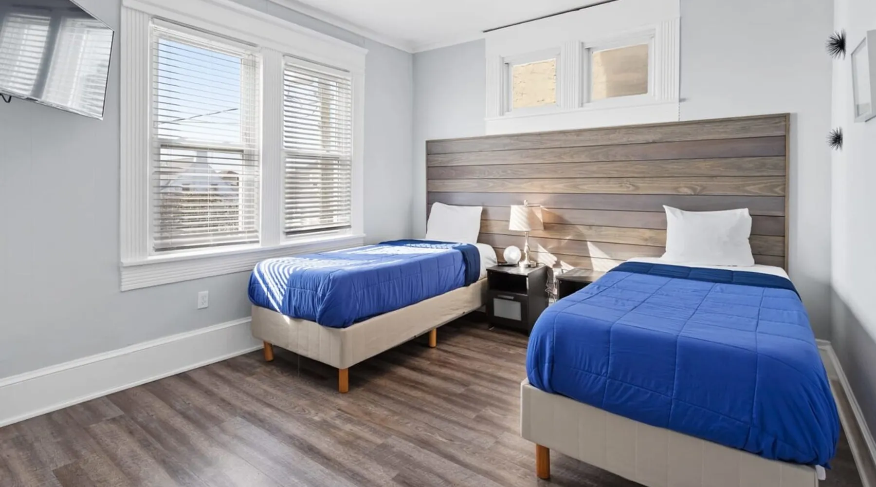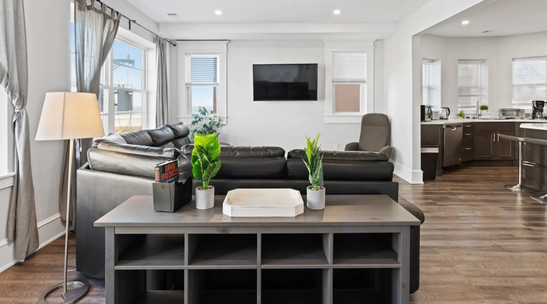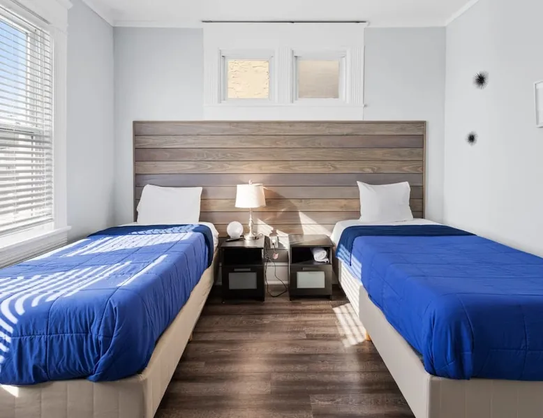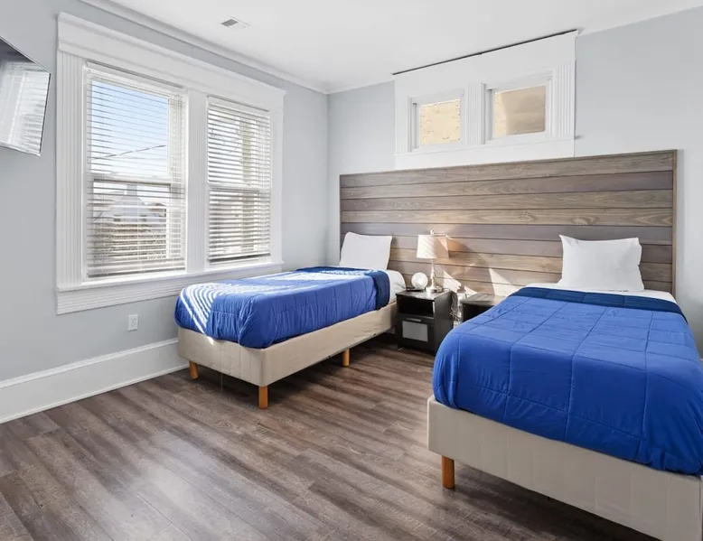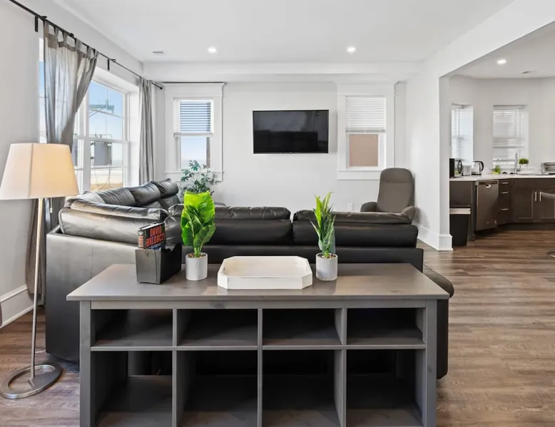 Welcome to the Residences at Raleigh in Atlantic City’s historic Chelsea neighborhood! Residences at Raleigh is a collection of (3) luxurious apartments steps from the Atlantic City Boardwalk in the city’s most sought after neighborhood. This listing consists of the entire 3-family building, comprised of (3) separate oversized, 1,700 SF apartments, featuring: (12) separate bedrooms -- each apartment is 4BR/2BA (6) renovated full bathrooms Designer kitchen w/island Open concept living room The space Make your way up the front porch steps, check yourself in and feel instantly at home with bright, sun-filled rooms, soft comfortable furnishings and everything you could need for a relaxing stay right in historic Atlantic city. The entire building features central A/C and heating, individually controlled for by unit. | LIVING | Make yourself at home in the comfortable living room, featuring a large sectional, a Smart TV, and ample seating while light floods in through the large windows facing the ocean. ✔ Plush Chaise Lounge ✔ Smart TV ✔ Access to Streaming Apps ✔ A/C | KITCHEN & DINING | Cook up everything from a simple breakfast, a quick snack or a 3-course gourmet dinner in our chef-friendly kitchen that comes fully equipped with everything you need. You’ll have ample space to prep meals on the sleek quartz countertops, and if you don’t feel like cooking, walk or drive to countless restaurants, coffee shops and bars surrounding the apartment. ✔ Stainless Steel Appliances ✔ Quartz Countertops ✔ Freestanding Oven ✔ Dishwasher ✔ Full Size Fridge/Freezer ✔ Coffee Maker ✔ Built-In Microwave ✔ Toaster ✔ Cookware, Dinnerware & Utensils ✔ Dining Table for (6) | BEDROOMS & BATHROOM | The spacious master bedroom is filled with a large queen bed that comes topped in soft, quality linen and bedding for a restful night’s sleep along with a full size mirror and chic exposed brick wall. Off the bedroom is the modern designer bathroom with an oversize walk in shower, a vanity stocked with all the essentials for your stay and plenty of fluffy towels for each guest. BEDROOM #1 ✔ (2) Single Beds ✔ Night Stands ✔ Dresser ✔ Jack-and-Jill Bathroom ✔ Combination Shower/Tub ✔ Bathroom Essentials ✔ Soft Fluffy Towels BEDROOM #2 ✔ (1) Queen-Sized Bed ✔ Night Stands ✔ Dresser ✔ Jack-and-Jill Bathroom ✔ Wall-Mounted Flat Screen TV ✔ Combination Shower/Tub ✔ Bathroom Essentials ✔ Soft Fluffy Towels BEDROOM #3 ✔ (1) Double Bed ✔ Night Stands ✔ Armoire ✔ Jack-and-Jill Bathroom ✔ Wall-Mounted Flat Screen TV ✔ Oversize Walk-In Shower ✔ Bathroom Essentials ✔ Soft Fluffy Towels BEDROOM #4 ✔ (1) Double Bed ✔ Night Stands ✔ Armoire ✔ Adjacent Bathroom ✔ Oversize Walk-In Shower ✔ Bathroom Essentials ✔ Soft Fluffy Towels BEDROOM #5 ✔ (2) Single Beds ✔ Night Stands ✔ Dresser ✔ Jack-and-Jill Bathroom ✔ Combination Shower/Tub ✔ Bathroom Essentials ✔ Soft Fluffy Towels BEDROOM #6 ✔ (1) Double Bed ✔ Night Stands ✔ Dresser ✔ Jack-and-Jill Bathroom ✔ Wall-Mounted Flat Screen TV ✔ Combination Shower/Tub ✔ Bathroom Essentials ✔ Soft Fluffy Towels BEDROOM #7 ✔ (1) Queen-Sized Bed ✔ Night Stands ✔ Armoire ✔ Jack-and-Jill Bathroom ✔ Wall-Mounted Flat Screen TV ✔ Oversize Walk-In Shower ✔ Bathroom Essentials ✔ Soft Fluffy Towels BEDROOM #8 ✔ (2) Single Beds ✔ Night Stands ✔ Armoire ✔ Adjacent Bathroom ✔ Oversize Walk-In Shower ✔ Bathroom Essentials ✔ Soft Fluffy Towels BEDROOM #9 ✔ (2) Single Beds ✔ Night Stands ✔ Dresser ✔ Jack-and-Jill Bathroom ✔ Combination Shower/Tub ✔ Bathroom Essentials ✔ Soft Fluffy Towels BEDROOM #10 ✔ (1) Queen-Sized Bed ✔ Night Stands ✔ Dresser ✔ Jack-and-Jill Bathroom ✔ Wall-Mounted Flat Screen TV ✔ Combination Shower/Tub ✔ Bathroom Essentials ✔ Soft Fluffy Towels BEDROOM #11 ✔ (2) Single Beds ✔ Night Stands ✔ Armoire ✔ Jack-and-Jill Bathroom ✔ Wall-Mounted Flat Screen TV ✔ Oversize Walk-In Shower ✔ Bathroom Essentials ✔ Soft Fluffy Towels BEDROOM #12 ✔ (1) Queen-Sized Bed ✔ Night Stands ✔ Armoire ✔ Adjacent Bathroom ✔ Oversize Walk-In Shower ✔ Bathroom Essentials ✔ Soft Fluffy Towels | OUTDOORS | Start your day with coffee on the rear deck overlooking the Atlantic Ocean and the historic Boardwalk. When your day at the beach concludes, dine al fresco in the fresh saltwater air. ✔ Gas Grill by Weber ✔ Outdoor Seating If you are looking for an enormous, modern, central house with its own unique designer style only minutes from Atlantic City’s best casinos, restaurants and white sandy beaches – look no further for your next getaway to “America's Playground.” Guest access Guests have private access to the entire house and outdoor areas as well as free Wi-Fi, complimentary coffee, and access to your own streaming apps on the Smart TV. We also have an outdoor shower, deck, (2) balconies, and basement with access from the street. While we do not tolerate excessive partying (particularly with guests who are not included on your reservation), we welcome bachelor party and bachelorette party groups. Please advise beforehand, and we are happy to make recommendations for your bachelor/bachelorette parties! We also welcome groups coming to town on golf trips, business/corporate retreats, family reunions, and milestone birthdays. Other things to note 1) Pets are welcome for an additional pet fee. Please include them in the Guest Count of your search, and let us know. 2) There is one Smart TV in the living room and there are TVs in two of the bedrooms. Please note that we do not have cable TV. 3) In an effort to combat noise concerns and out of consideration for our neighbors, we have noise sensors installed at the property to monitor noise levels. We do not record audio of any type. This is strictly to ensure that noise does not eclipse a reasonable level, particularly in the evening hours. All we rece