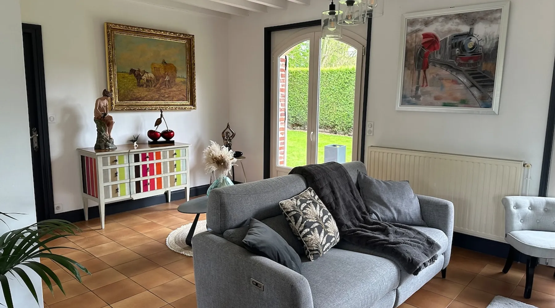Detached house located in Saint Laurent Blangy, 2 km from the squares and the belfry, very attractive town, with a famous nautical base in front of the accommodation, as well as a media library surrounded by the Vaudry Fontaine park, and 300 m away, its towpath (greenway) along the Scarpe Canal, allowing you to reach the city on foot or by bike and also access the new 10 ha park, very popular with walkers, The main shops are nearby, In front of the house, a bus stop,