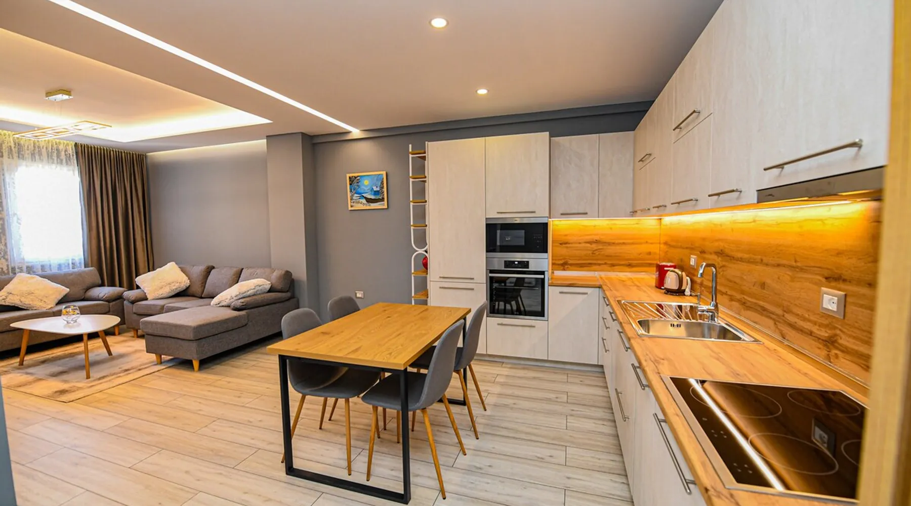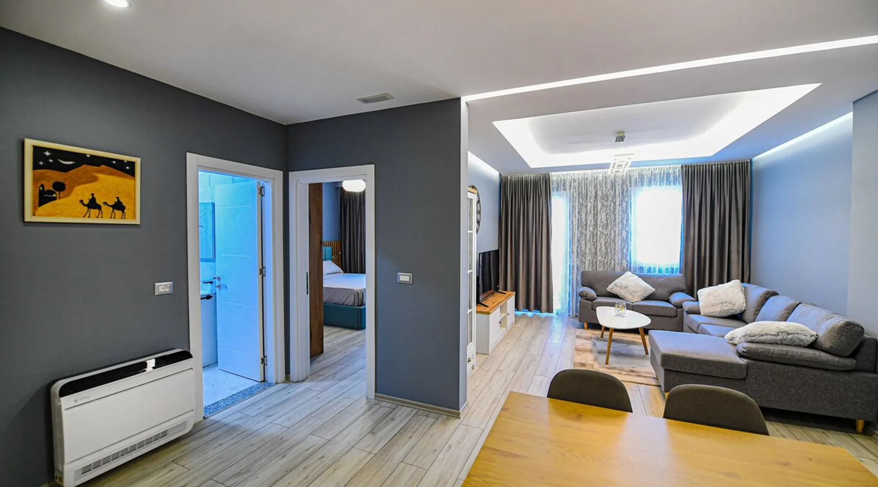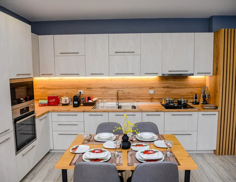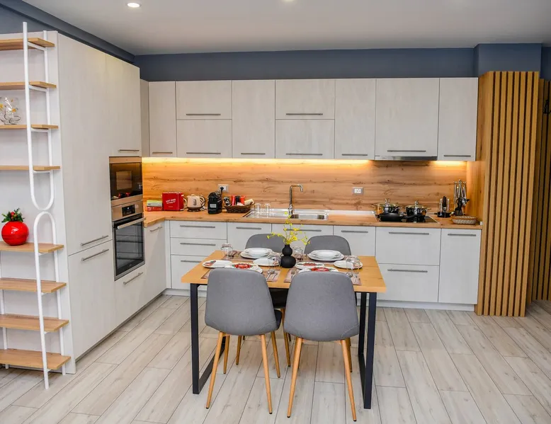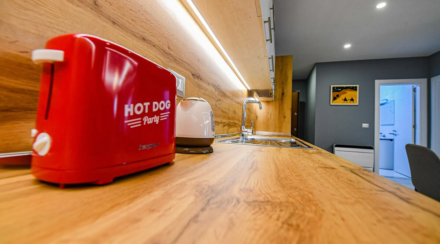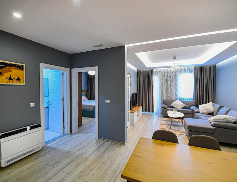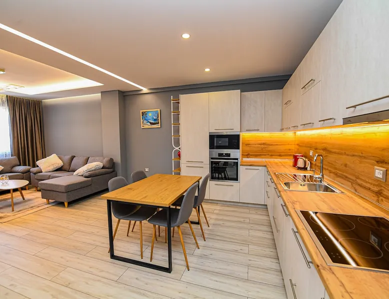 Located in the 2nd floor of the building with elevator. 200m from the St Stephen's Cathedral and a 24h store. There are plenty of bars right around the corner in the Gjuhadol way and free street parking is available. The condo has top quality built-in kitchen appliances and 2 Android Smart TVs with Youtube and similar apps.