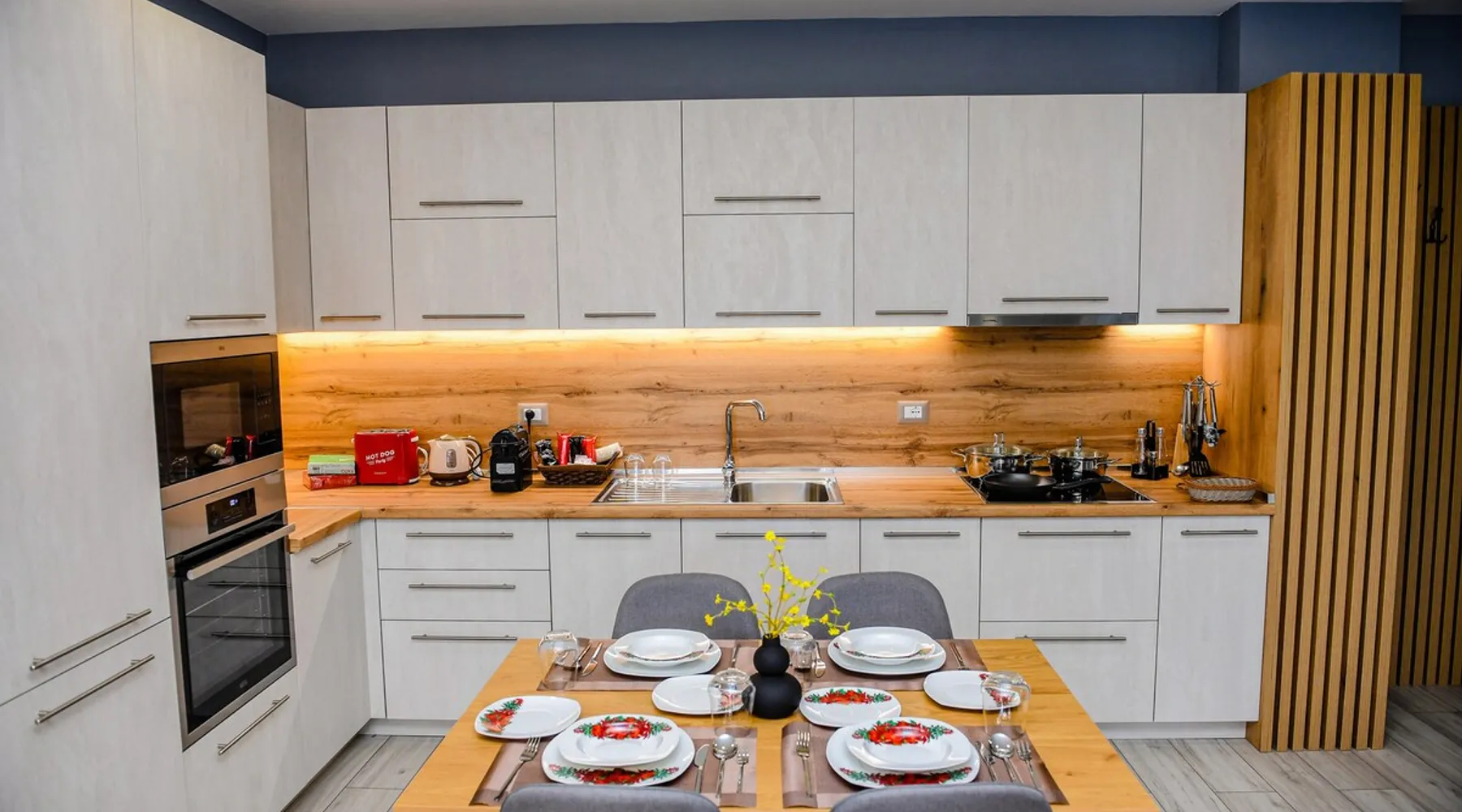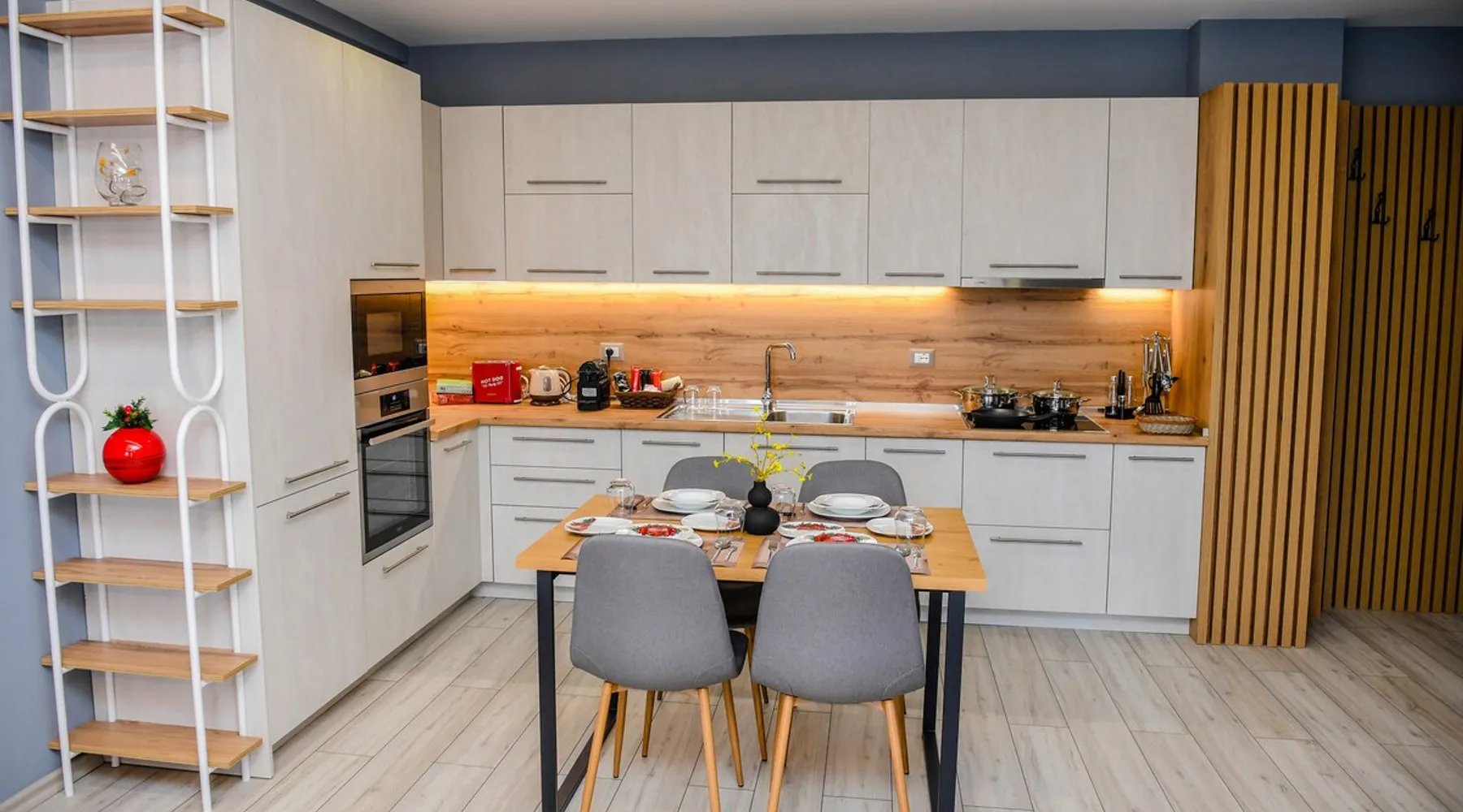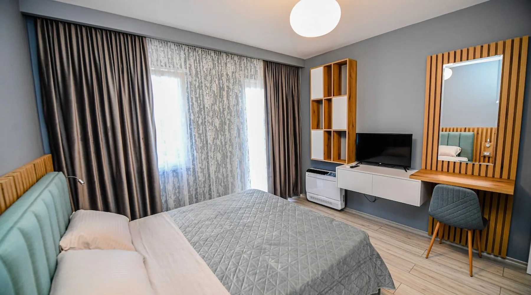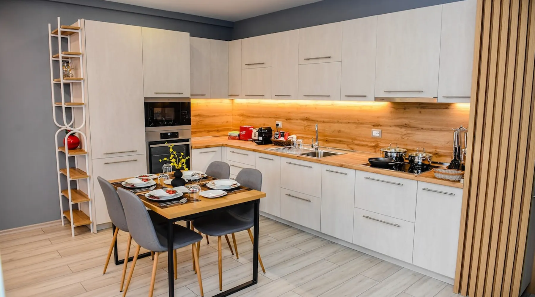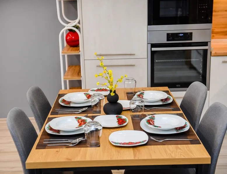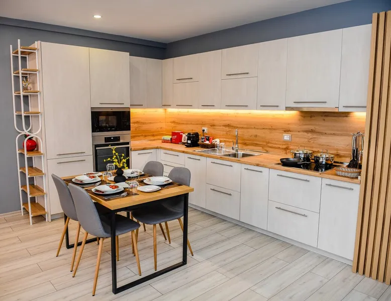 Located in the 2nd floor of the building with elevator. 200m from the St Stephen's Cathedral and a 24h store. There are plenty of bars right around the corner in the Gjuhadol way and free street parking is available. The condo has top quality built-in kitchen appliances and 2 Android Smart TVs with Youtube and similar apps.