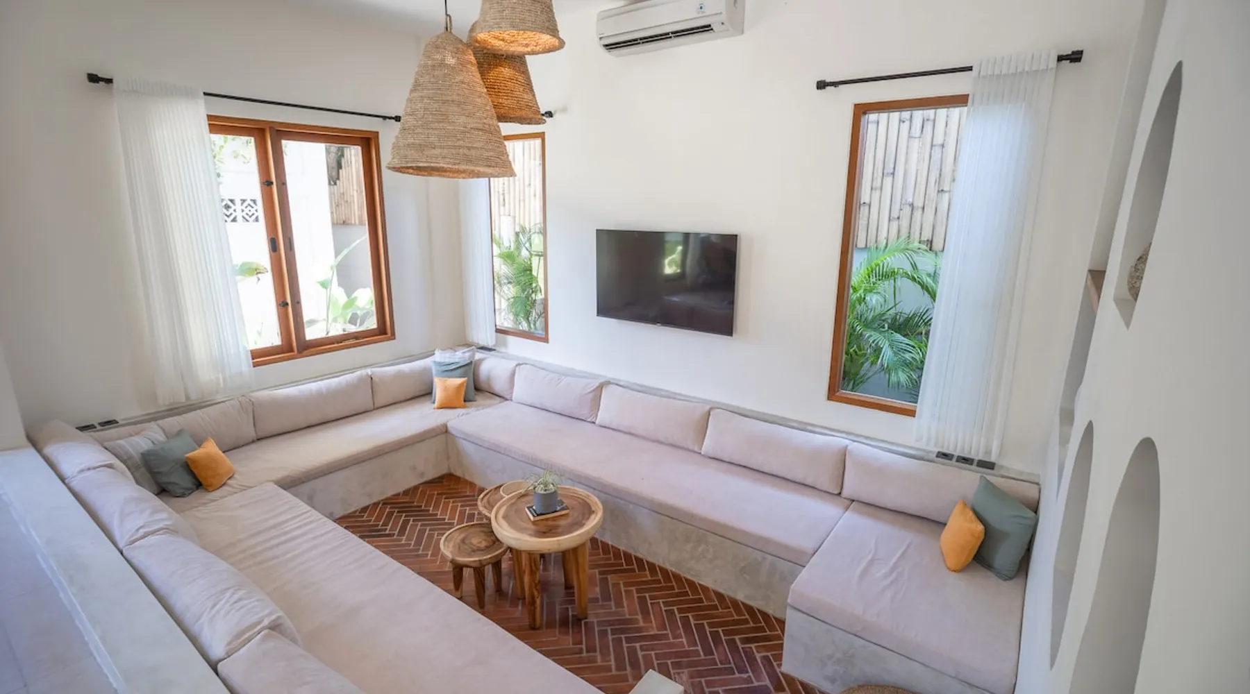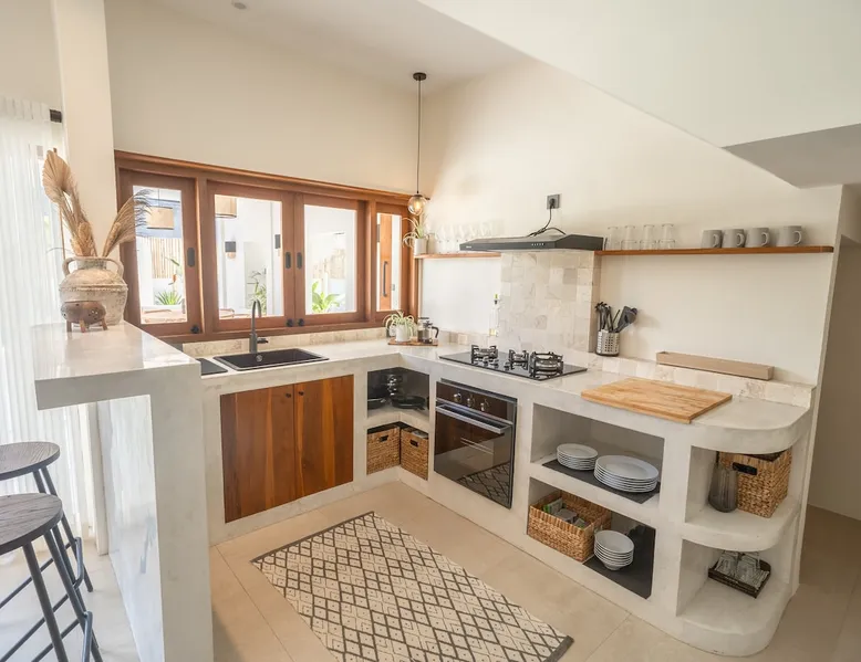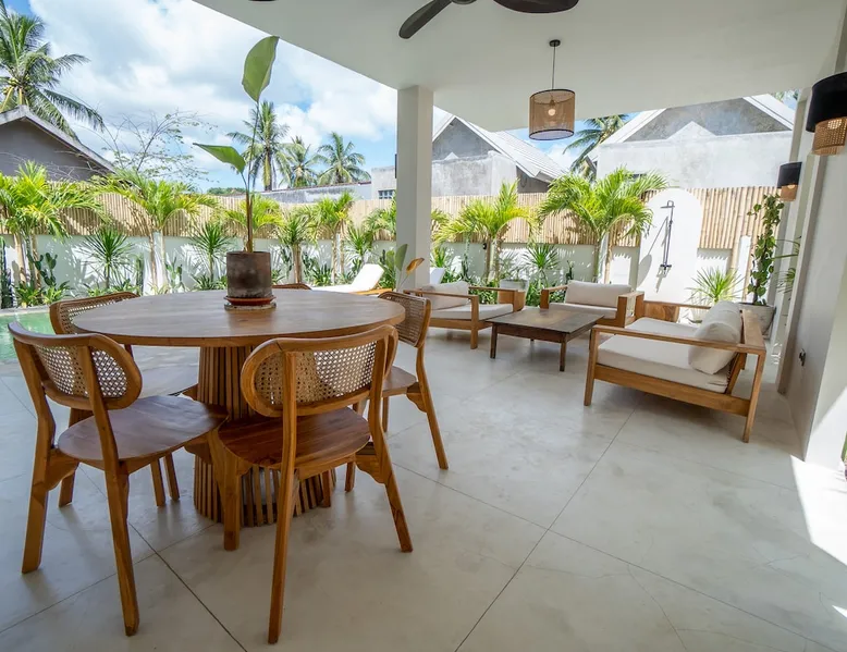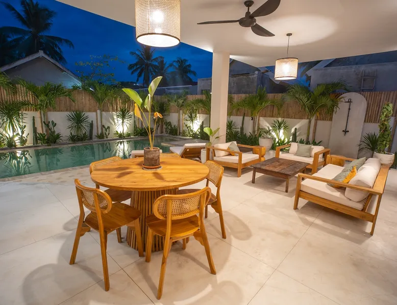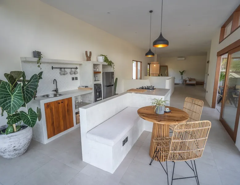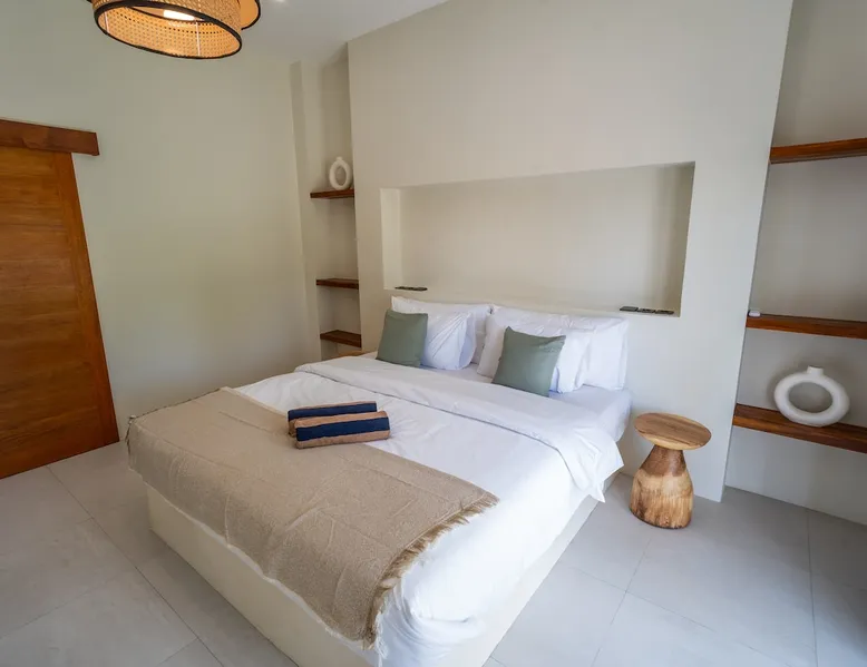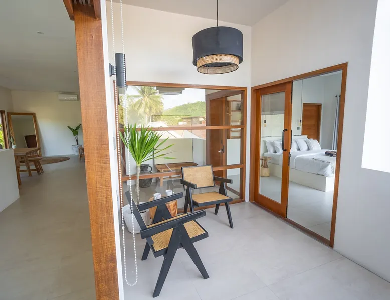 Fully Private villa & large swimming pool 4-bedroom full AC, including 2 separate entrances in one villa: - 2-bedroom ground floor ‘apartment’ with 2 ensuite bathrooms sunken lounge with Flat screen Smart TV fully equipped kitchen dining table for 4 people direct access to swimming pool - 2-bedroom top floor ‘apartment’ with 2 ensuite bathrooms Lounge area with Flat screen Smart TV fully equipped kitchen dining table for 6 people 360 surrounding views over rice fields and neighborhood The space Welcome to Villa Asri. Our house is ideal for 8 people. 7 min walk to Selong Belanak Beach 5 min walk to main road and restaurants, bars and grocery shop Daily cleaning staff and night security included Our on-site Professional Conciergerie will accompany all of your needs: car & scooter rentals, pick up from port & airport, surf lessons, laundry, baby sitter… you name it! Just be reasonable Located in the heart of Selong Belanak neighborhood and just a quick walk to the popular beach. Our villa features modern minimal interiors, natural on-trend furnishings, lush gardens, and a private swimming pool. The villa comprises 2 floors, with 2 separate appartements, one on each floor. They are connected by the staircase, accessible from the pool ground. They have separate entrances, making it great for a 2 groups or families sharing. All beds are 180x200 cm, 5-star hotel quality comfort The villa consists of: • 4 x Master bedrooms with king size bed (180x200), AC & ensuite bathroom • 2 x Fully equipped open kitchen with dining areas. Perfect for entertaining with friends and family • Outdoor covered terrace dining table seating area • Swimming pool with deep and shallow end • Beautiful gardens with pretty exotic plants and flowers surrounding the villa • One king size bed upstairs (180x200) • One full bathroom downstairs • Sunken lounge area with Smart TV • Bar seating on the covered terrace • Games for kids and Jenga VILLA ASRI is the family friendly villa you’re looking for your next vacation! Catering to multi family or multi-generational families or with your friends. It has all the comfort and luxury you need in a peaceful surrounding. Very conveniently located with a stone's throw away from the main street of Selong Belanak. Only 40 minutes' drive from Lombok International airport 5 minutes to the white sands of Selong Belanak Beach - South Lombok surfers’ paradise Choose from the many beaches and surf breaks South Lombok has to offer. Refuel at one of the many cafes on the main street or relax with a spa treatment within a few minutes scooter or drive or walk from the villa. Sit back, relax and enjoy your time at Villa ASRI in Selong Belanak, Lombok! Please note that disruptive gatherings are prohibited, regardless of size For more information about Airbnb's Anti-party policy, please check Housekeeping included 3 x week Guest access Entire property 2 floors pool and gardens