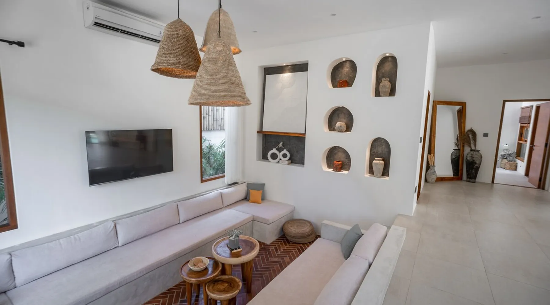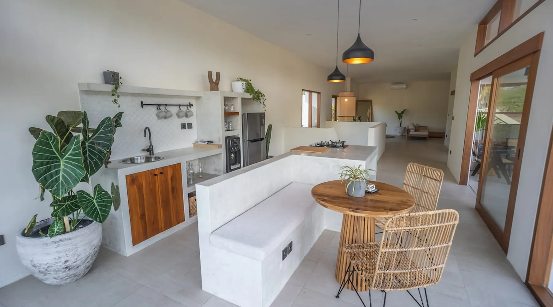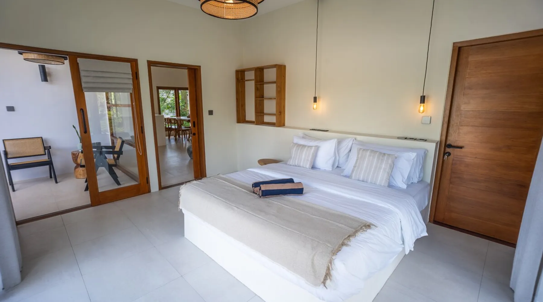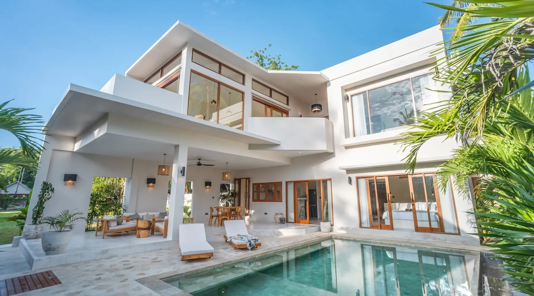Fully Private villa & large swimming pool 4-bedroom full AC, including 2 separate entrances in one villa: - 2-bedroom ground floor ‘apartment’ with 2 ensuite bathrooms sunken lounge with Flat screen Smart TV fully equipped kitchen dining table for 4 people direct access to swimming pool - 2-bedroom top floor ‘apartment’ with 2 ensuite bathrooms Lounge area with Flat screen Smart TV fully equipped kitchen dining table for 6 people 360 surrounding views over rice fields and neighborhood The space Welcome to Villa Asri. Our house is ideal for 8 people. 7 min walk to Selong Belanak Beach 5 min walk to main road and restaurants, bars and grocery shop Daily cleaning staff and night security included Our on-site Professional Conciergerie will accompany all of your needs: car & scooter rentals, pick up from port & airport, surf lessons, laundry, baby sitter… you name it! Just be reasonable Located in the heart of Selong Belanak neighborhood and just a quick walk to the popular beach. Our villa features modern minimal interiors, natural on-trend furnishings, lush gardens, and a private swimming pool. The villa comprises 2 floors, with 2 separate appartements, one on each floor. They are connected by the staircase, accessible from the pool ground. They have separate entrances, making it great for a 2 groups or families sharing. All beds are 180x200 cm, 5-star hotel quality comfort The villa consists of: • 4 x Master bedrooms with king size bed (180x200), AC & ensuite bathroom • 2 x Fully equipped open kitchen with dining areas. Perfect for entertaining with friends and family • Outdoor covered terrace dining table seating area • Swimming pool with deep and shallow end • Beautiful gardens with pretty exotic plants and flowers surrounding the villa • One king size bed upstairs (180x200) • One full bathroom downstairs • Sunken lounge area with Smart TV • Bar seating on the covered terrace • Games for kids and Jenga VILLA ASRI is the family friendly villa you’re looking for your next vacation! Catering to multi family or multi-generational families or with your friends. It has all the comfort and luxury you need in a peaceful surrounding. Very conveniently located with a stone's throw away from the main street of Selong Belanak. Only 40 minutes' drive from Lombok International airport 5 minutes to the white sands of Selong Belanak Beach - South Lombok surfers’ paradise Choose from the many beaches and surf breaks South Lombok has to offer. Refuel at one of the many cafes on the main street or relax with a spa treatment within a few minutes scooter or drive or walk from the villa. Sit back, relax and enjoy your time at Villa ASRI in Selong Belanak, Lombok! Please note that disruptive gatherings are prohibited, regardless of size For more information about Airbnb's Anti-party policy, please check Housekeeping included 3 x week Guest access Entire property 2 floors pool and gardens