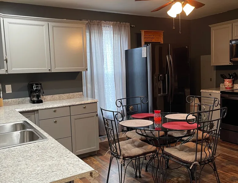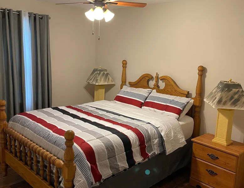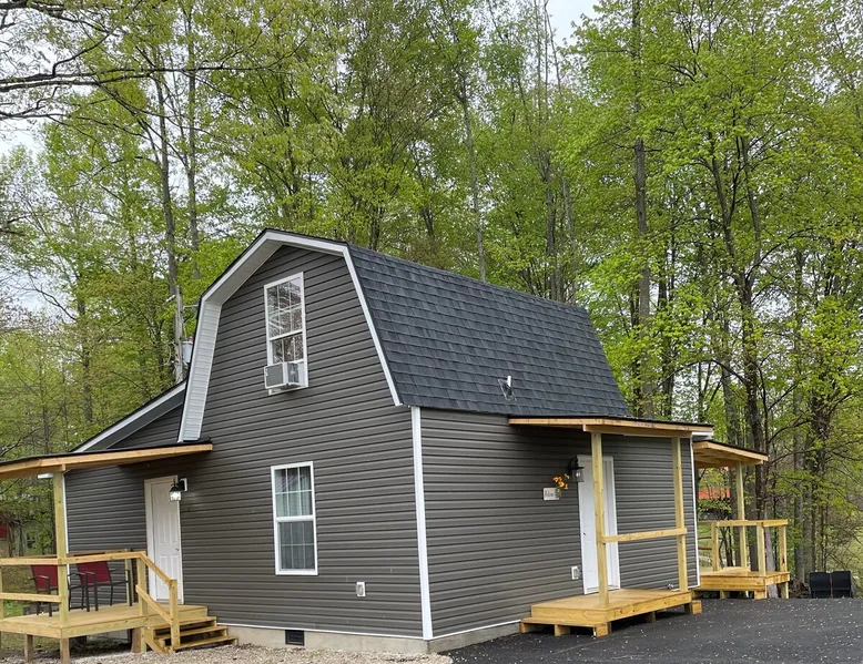 Cave run cabin located 2 miles from cave run dam. Cabin has 3 covered porches, full kitchen with all appliances, living room, full bathroom, and two bedrooms with ample closet space. 1 queen sleeper sofa One bedroom is downstairs and one is a loft setup. Free onsite parking, cable, and wi-fi. #caverunlake #kentucky