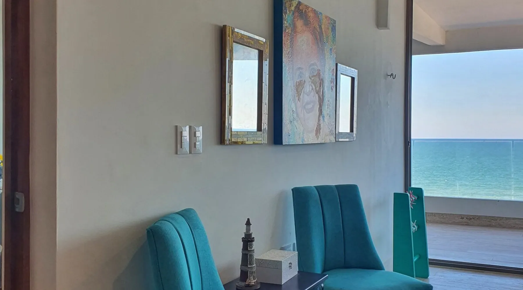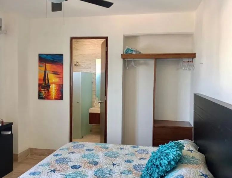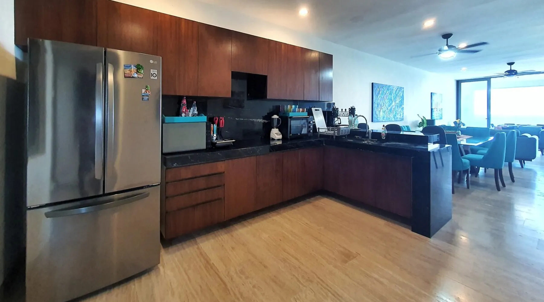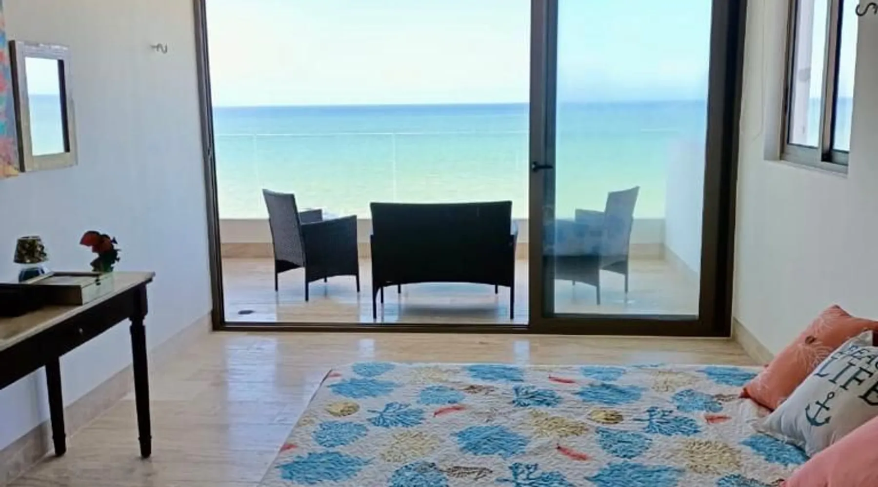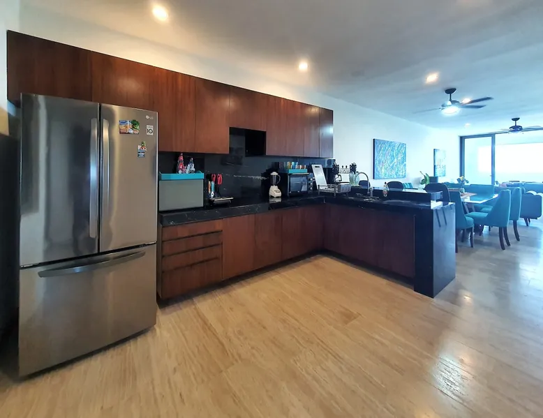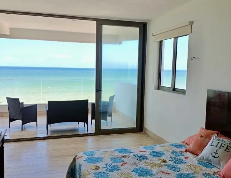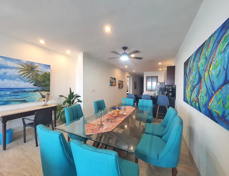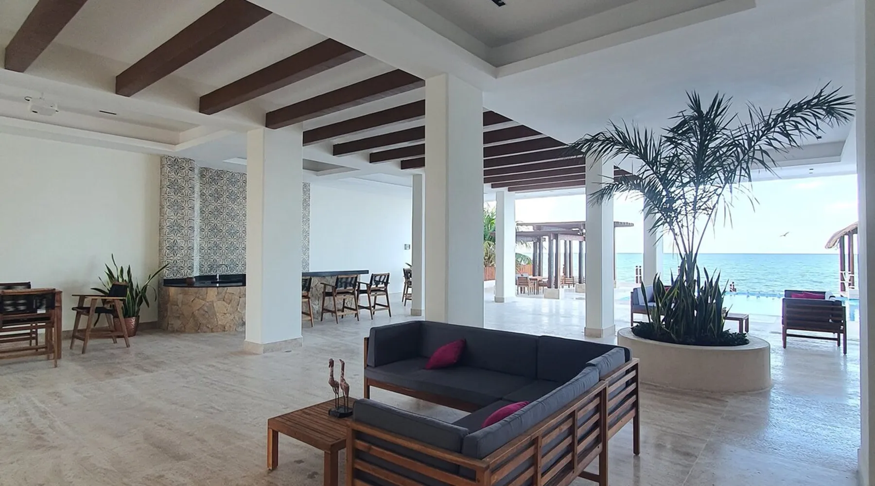 Decorated with the colors of the sea, with direct ocean views and a large social area on the terrace. The space A residential-sized apartment. Fully equipped and its common areas such as gym and pool are Free Access. A very short distance from the village you can walk. Guest access The common areas are the pool, terraces, bar, dining and lobby rooms, jacuzzi, gym, parking and elevator Other things to note We are located very close to downtown Chicxulub Puerto. Ideal for walking and returning.