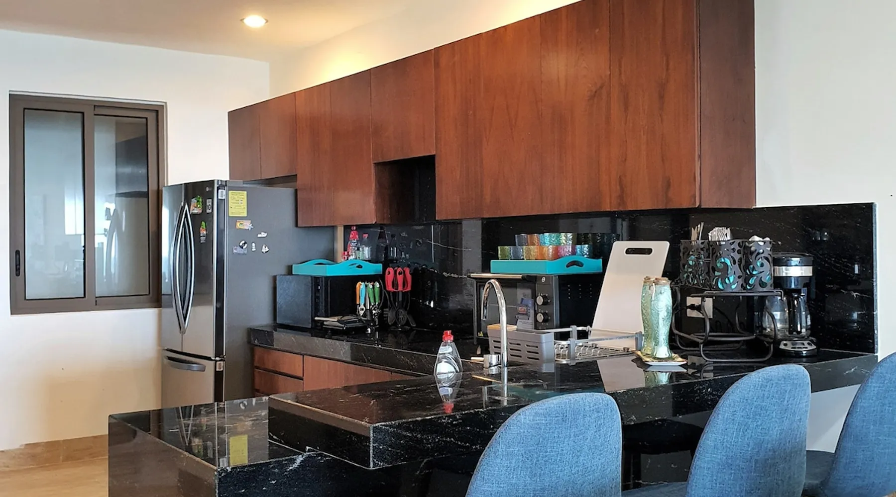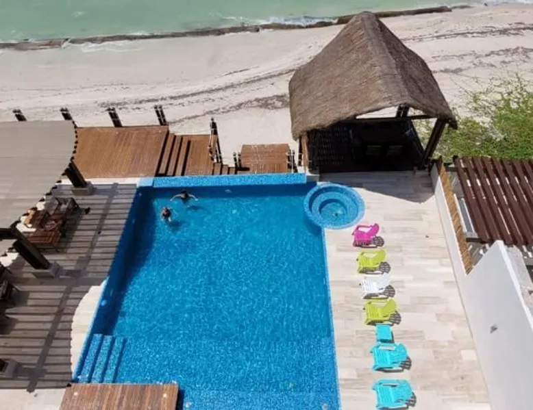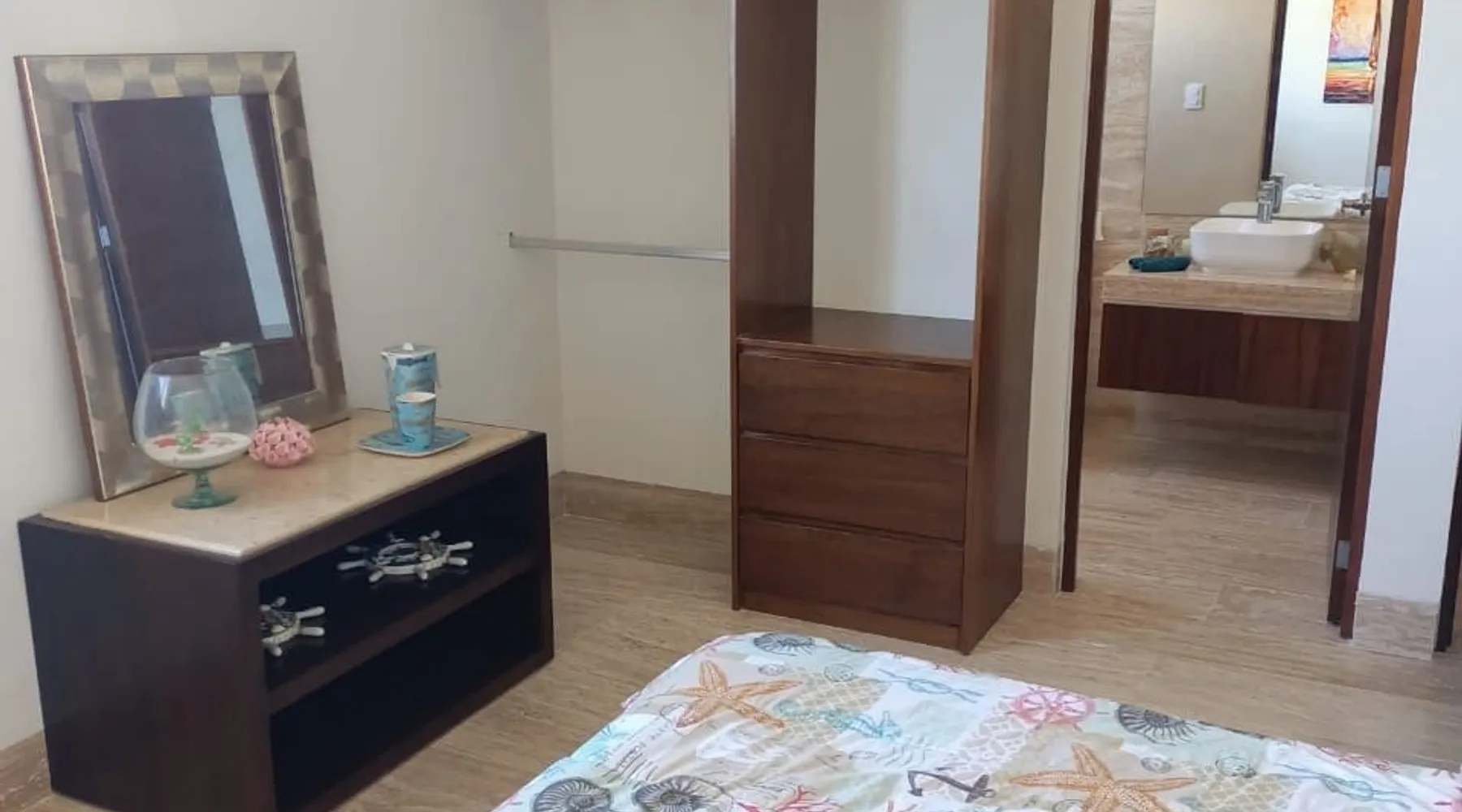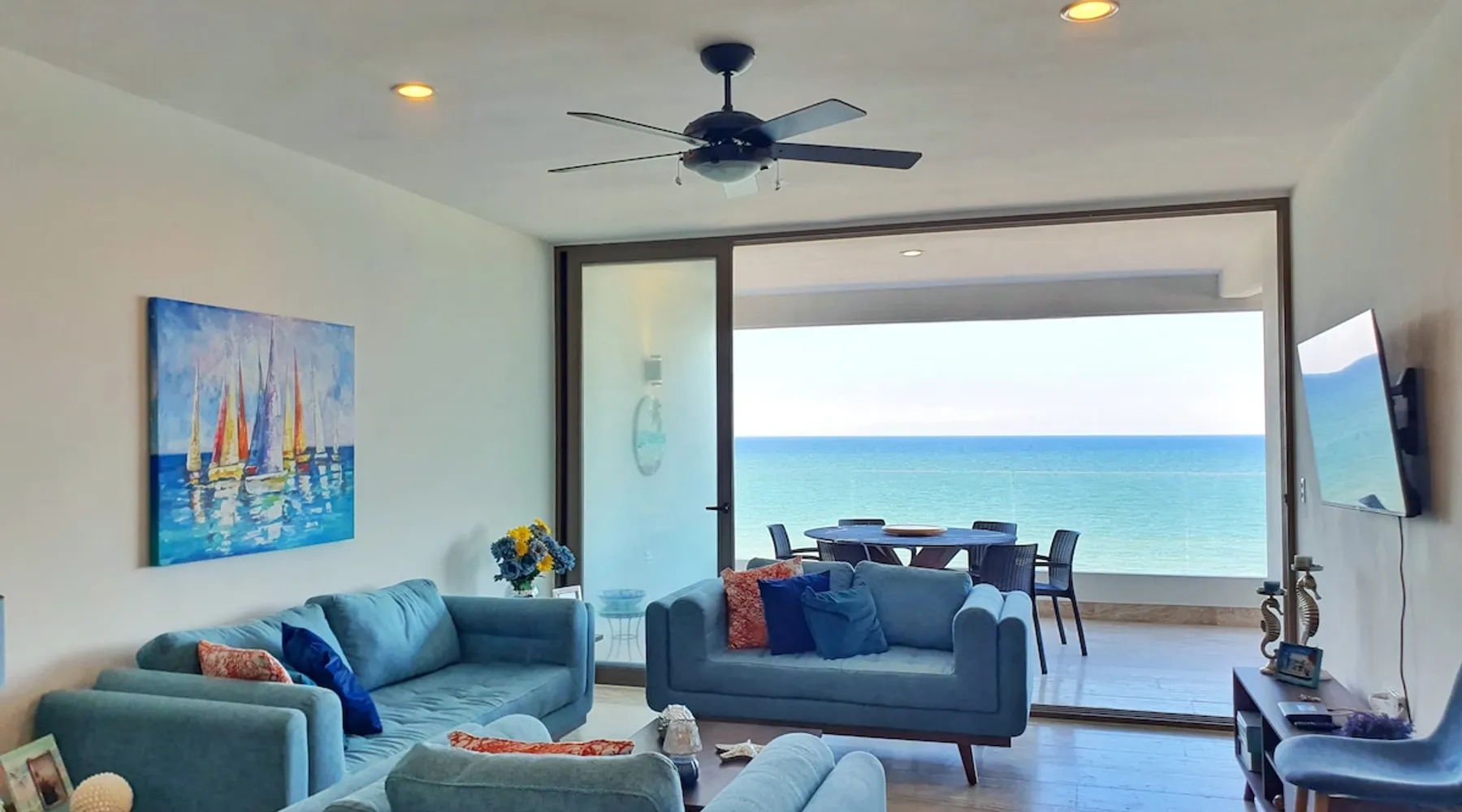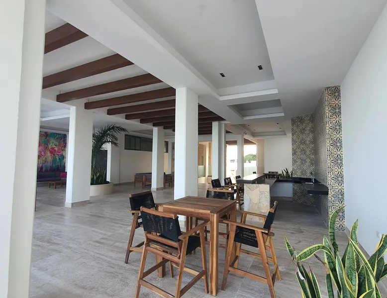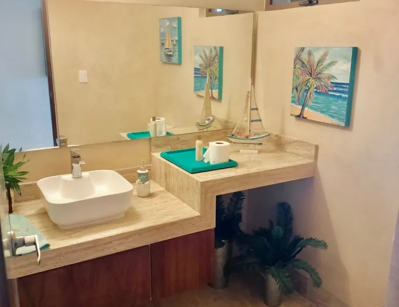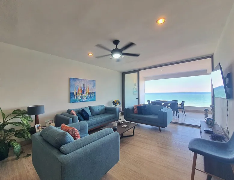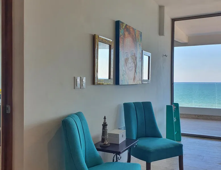 Decorated with the colors of the sea, with direct ocean views and a large social area on the terrace. The space A residential-sized apartment. Fully equipped and its common areas such as gym and pool are Free Access. A very short distance from the village you can walk. Guest access The common areas are the pool, terraces, bar, dining and lobby rooms, jacuzzi, gym, parking and elevator Other things to note We are located very close to downtown Chicxulub Puerto. Ideal for walking and returning.
