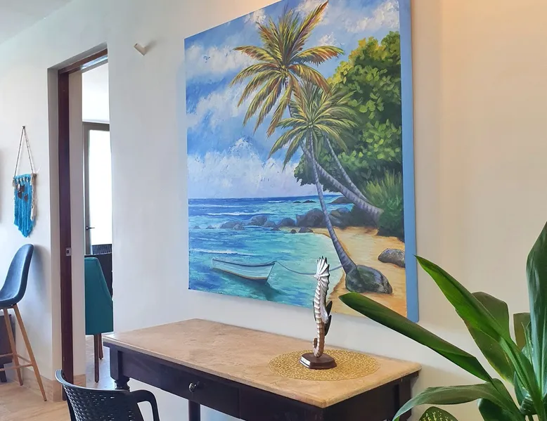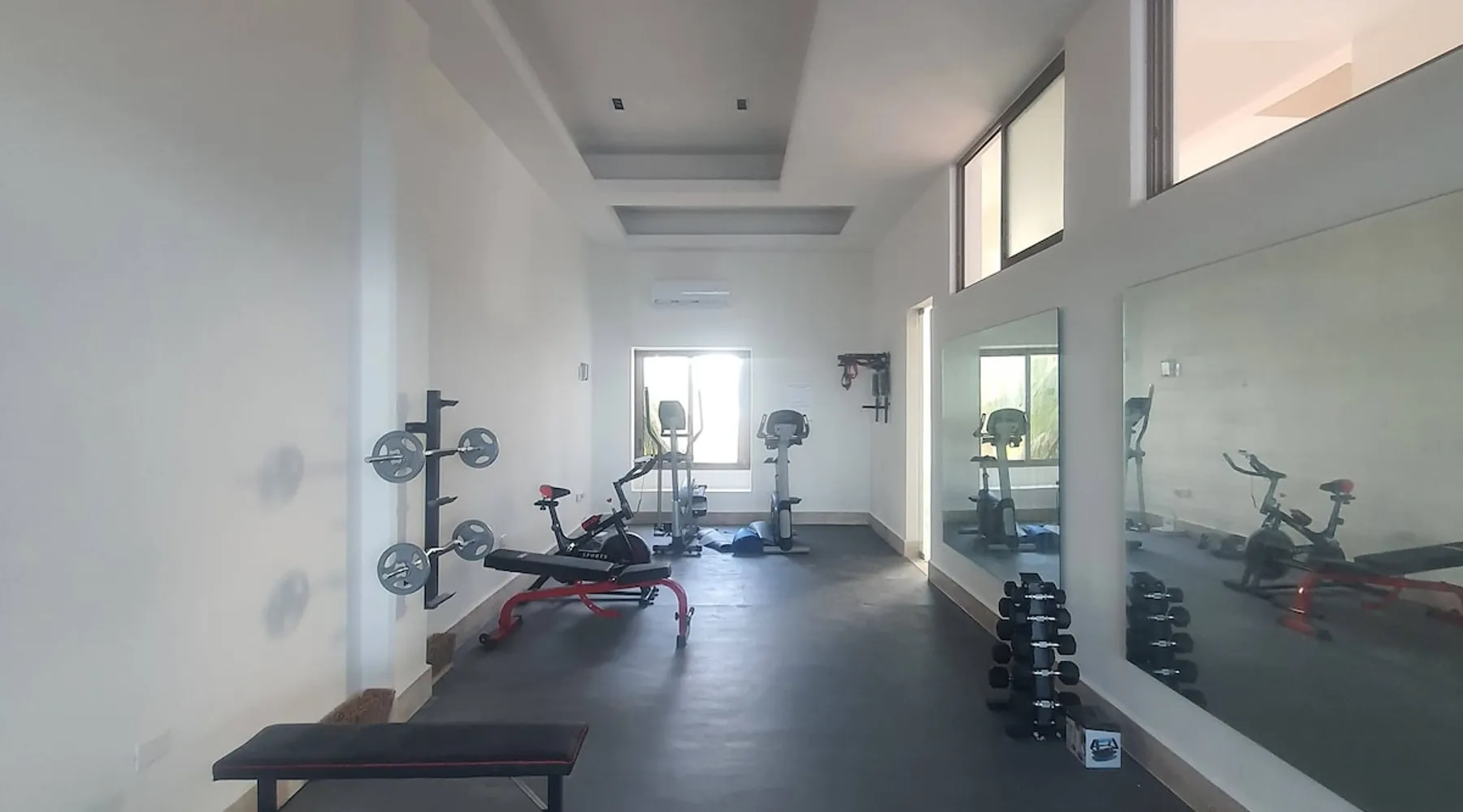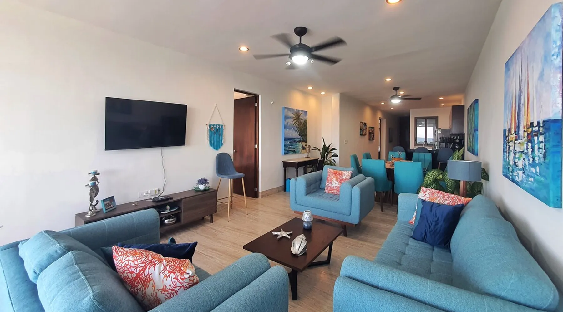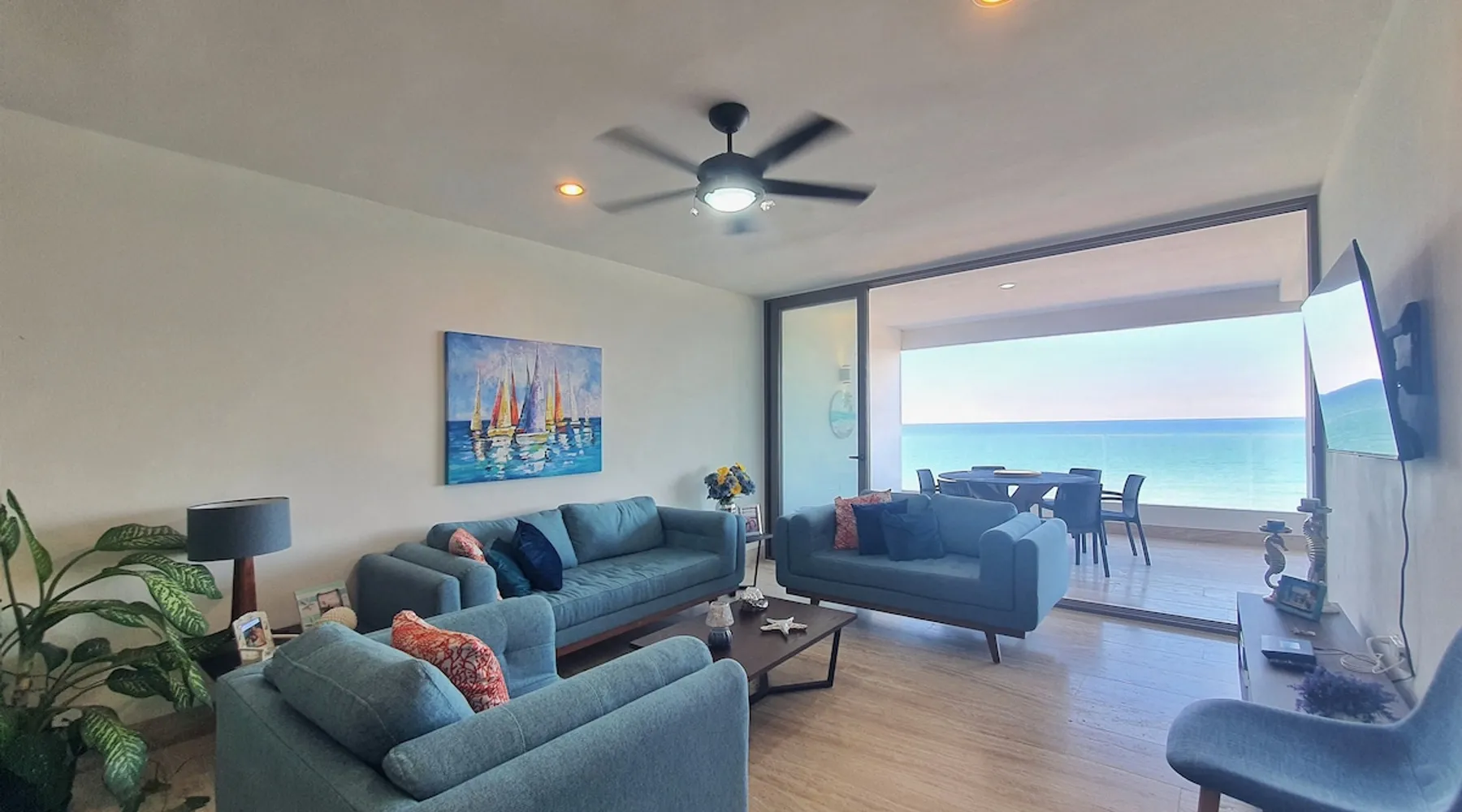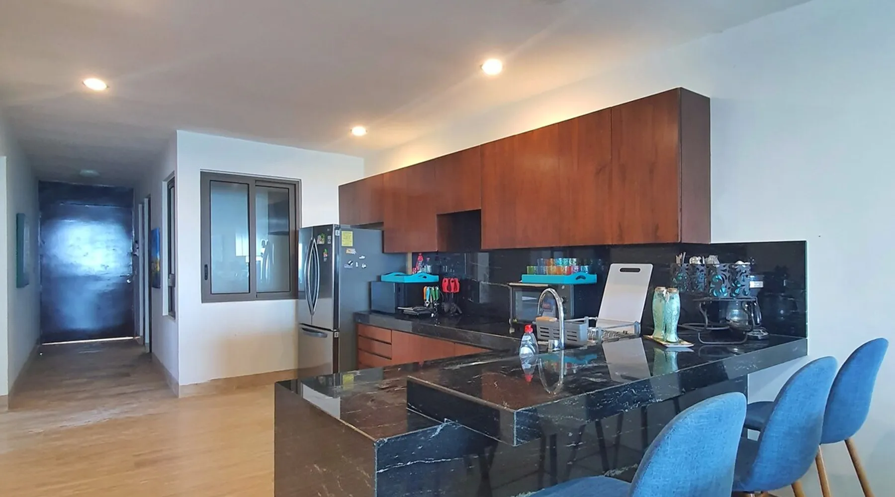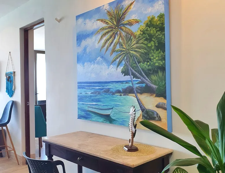 Decorated with the colors of the sea, with direct ocean views and a large social area on the terrace. The space A residential-sized apartment. Fully equipped and its common areas such as gym and pool are Free Access. A very short distance from the village you can walk. Guest access The common areas are the pool, terraces, bar, dining and lobby rooms, jacuzzi, gym, parking and elevator Other things to note We are located very close to downtown Chicxulub Puerto. Ideal for walking and returning.