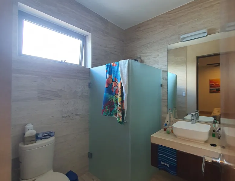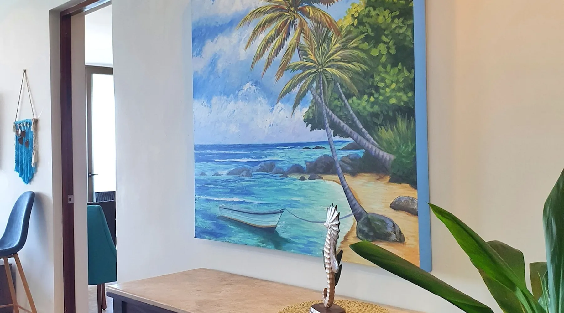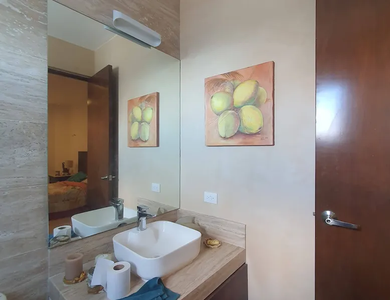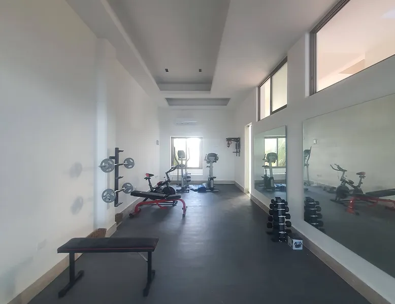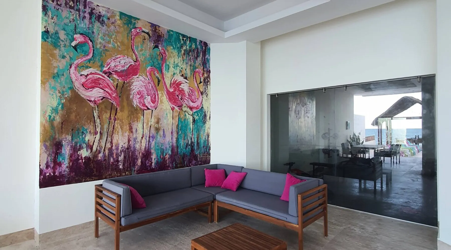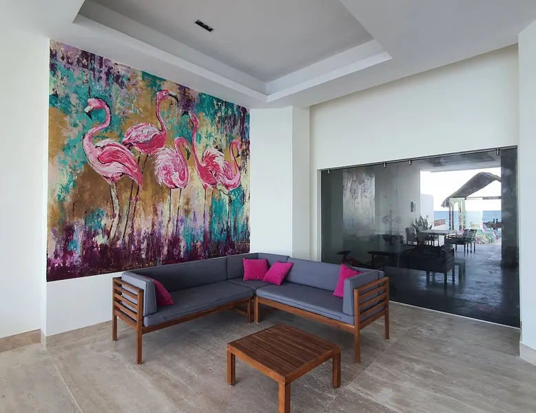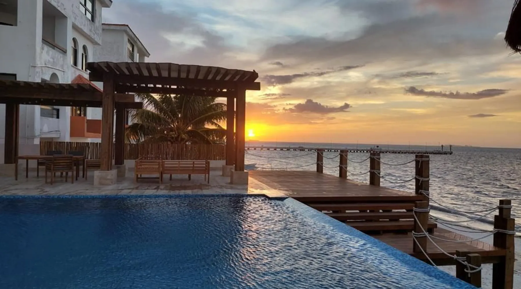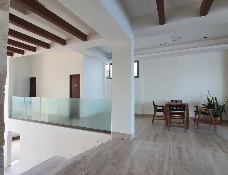 Decorated with the colors of the sea, with direct ocean views and a large social area on the terrace. The space A residential-sized apartment. Fully equipped and its common areas such as gym and pool are Free Access. A very short distance from the village you can walk. Guest access The common areas are the pool, terraces, bar, dining and lobby rooms, jacuzzi, gym, parking and elevator Other things to note We are located very close to downtown Chicxulub Puerto. Ideal for walking and returning.