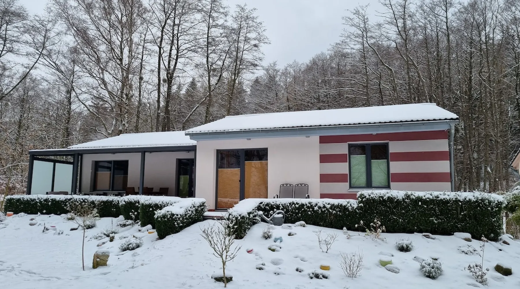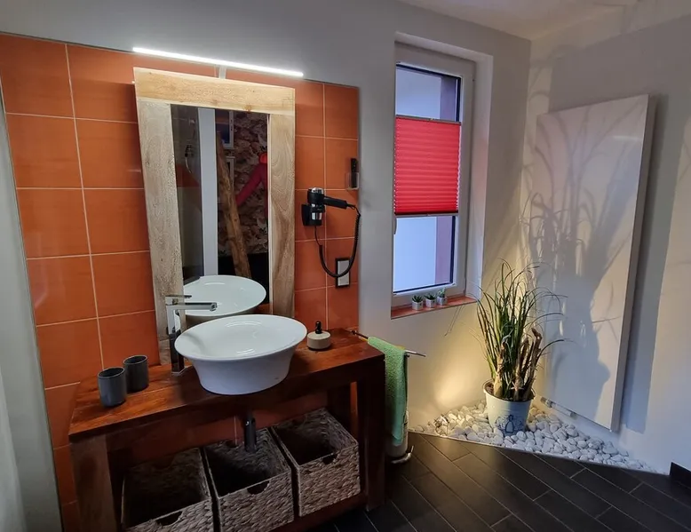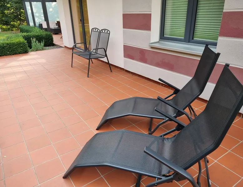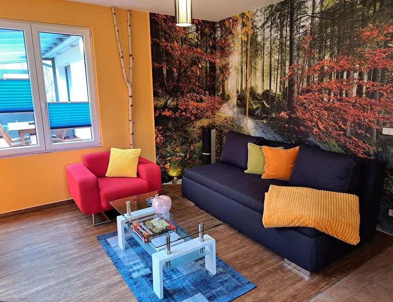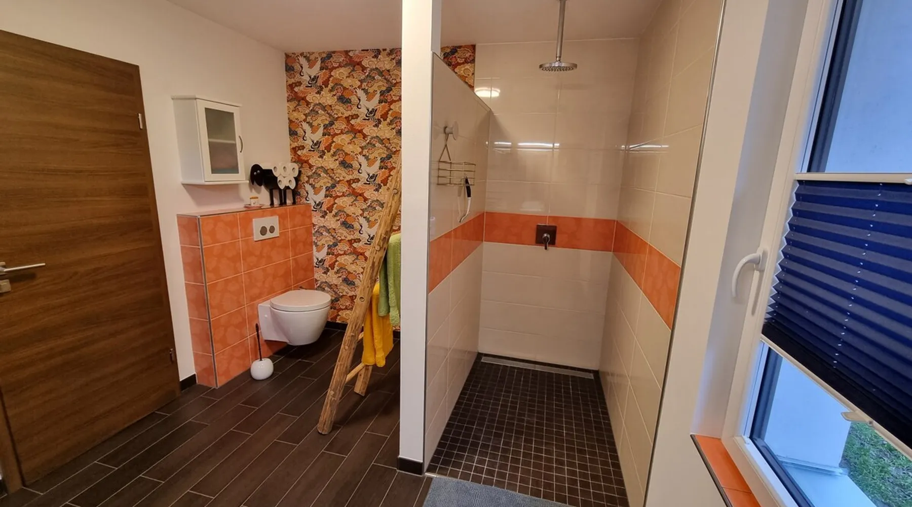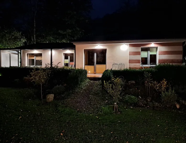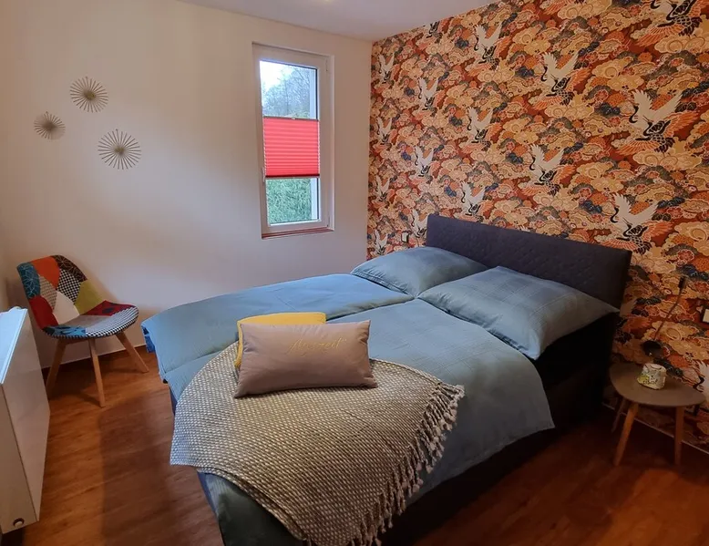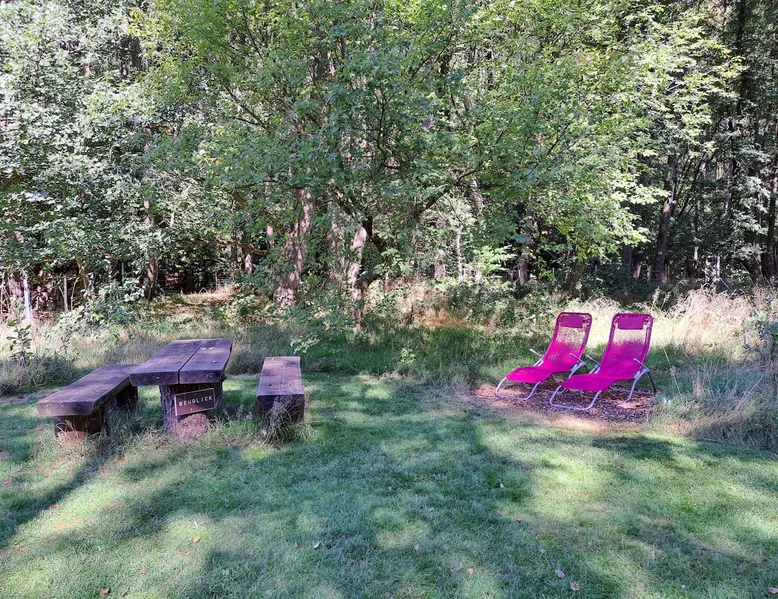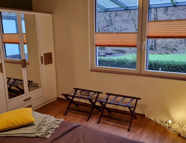 “The best of all goods, if there's freight at all, is the serenity, and a place you can call your own." Recharge your batteries from the magnificent tranquility in the middle of the surrounding forest. Listen to the chirping of the birds, hear woodpeckers knocking in the trees. Relax with the sound of the trees and enjoy peace and solitude accompanied by the gentle lapping of the stream "Badewasser". Get away from it all. The space The cottage has many amenities on a living area of 90 m² to make your stay as relaxing as possible. You can feel comfortable in the large and open living room with integrated kitchen. The kitchen is equipped with all the essentials to prepare delicious dishes. There is a coffee machine, kettle, microwave, stove, dishwasher, fridge, toaster, etc. With the large satellite TV in the living area, you can receive all kinds of programs. But be sure, you will hardly use it. You can access the first terrace from the living room via a large sliding door. There are two bedrooms available in the property. In the large bedroom you will find a cozy bed 1.80 x 2.00 m with two high-quality mattresses of different degrees of hardness (soft/medium hard). The smaller bedroom is furnished with a comfortable box spring bed 1.40 x 2.00 m. The bathroom is modern and furnished to a high standard. The stylish laundry area has a permanently installed hairdryer, and a walk-in shower makes the use of the experience. A toilet is, of course, a matter of course. In a hanging cupboard there is a first aid kit to handle small injuries immediately. The reading room provides plenty of peace and relaxation on cloudy rainy days. You will find a careful selection of literature to get away from it all. The reading room leads through a large door to the second and covered terrace. There is also a utility room in the property. You can use the permanently installed wardrobe with hangers. Furthermore, you will also find a washing machine, a tumble dryer, clothes rack, ironing board and iron. The two terraces, once covered and wind protected, once open, are perfect for enjoying the surrounding nature. Sunbathing or summer rain, the sound of the trees, the babbling of the stream, the sound of birds and and and and.... The terraces have a seating area, tables, chairs and sun loungers. From the terrace you can enter the spacious nature. On hot days you can walk barefoot through the creek to cool down. Or you can just walk a few steps away from the property and are already on the next forest path to start an exploring hike through the Thuringian Forest. In the cupboard in the hallway there is a badminton set. You can use this in the adjacent meadow. Other things to note Transportation: The district of Reinhardsbrunn has its own stop of the Thuringian Forest Railway. With the Thuringian Forest Railway, you can connect to the trains of the DB via the Gotha main station or the Südthüringenbahn in Waltershausen. From the property you can walk about 15 minutes to the stop. Motorway A4 can be reached easily via the Waltershausen junction. Since our cottage is a bit remote, a car is recommended in case of doubt. Free parking is available directly at the holiday home. The location's GPS coordinates are: 50.86971, 10.55087