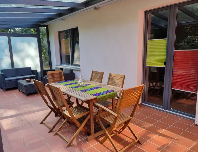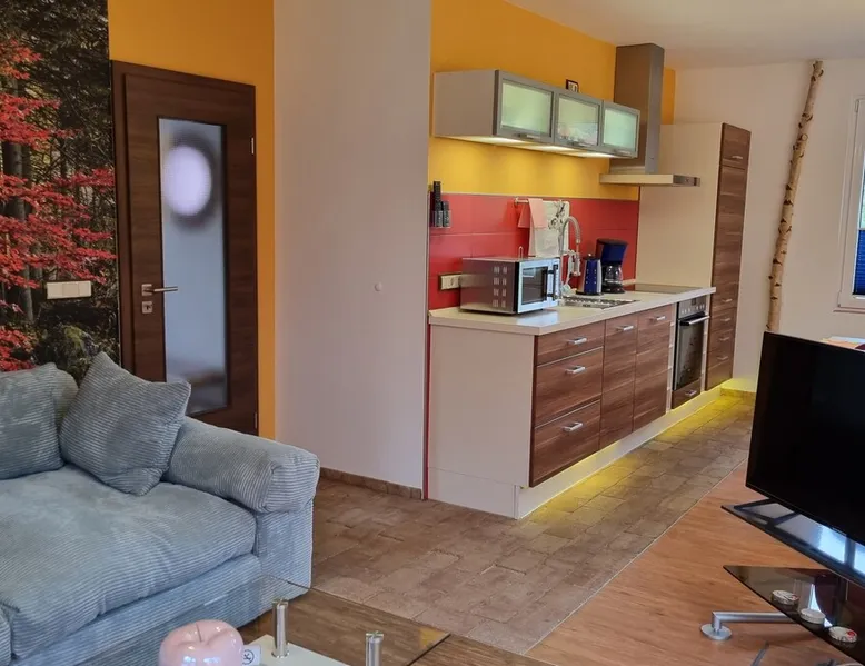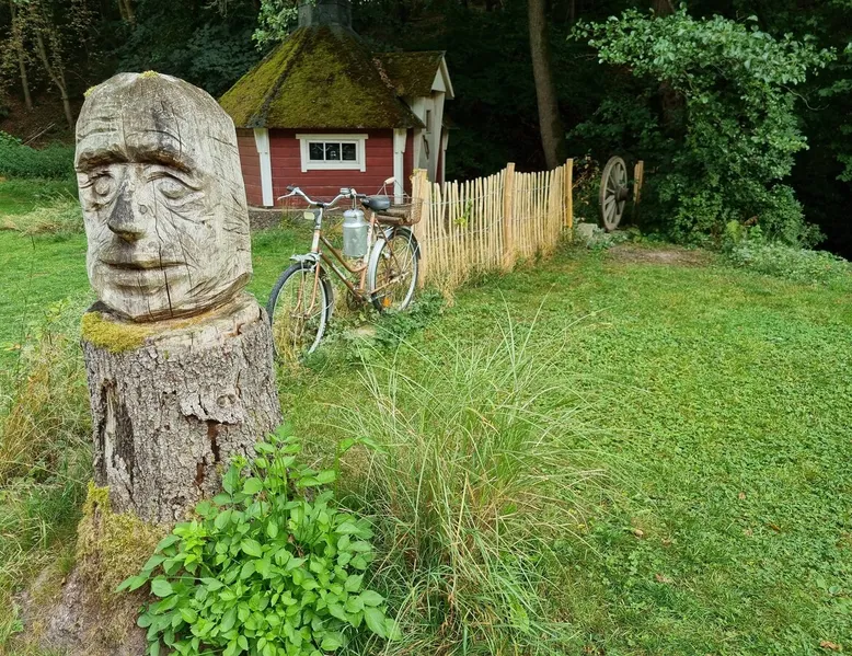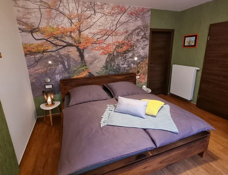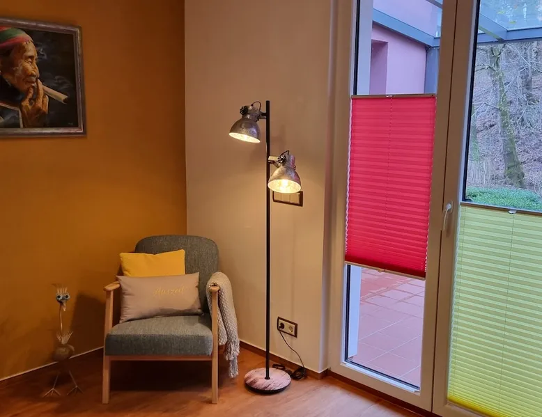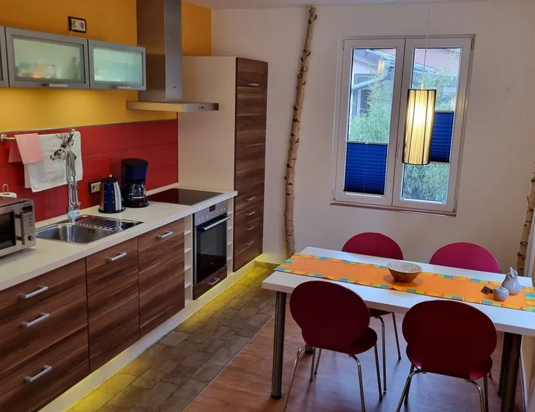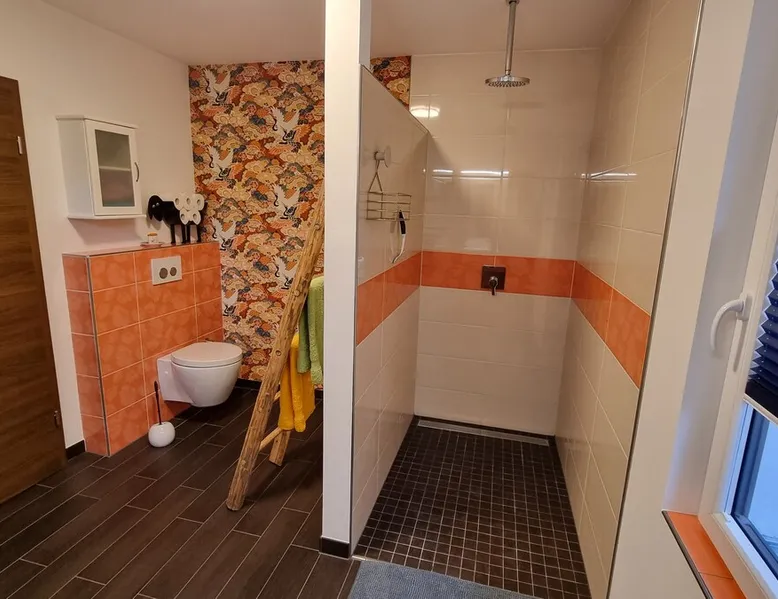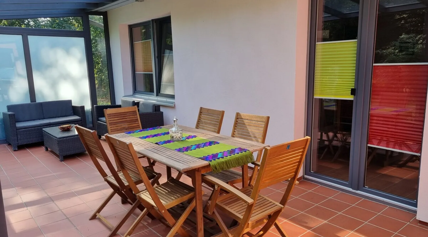 “The best of all goods, if there's freight at all, is the serenity, and a place you can call your own." Recharge your batteries from the magnificent tranquility in the middle of the surrounding forest. Listen to the chirping of the birds, hear woodpeckers knocking in the trees. Relax with the sound of the trees and enjoy peace and solitude accompanied by the gentle lapping of the stream "Badewasser". Get away from it all. The space The cottage has many amenities on a living area of 90 m² to make your stay as relaxing as possible. You can feel comfortable in the large and open living room with integrated kitchen. The kitchen is equipped with all the essentials to prepare delicious dishes. There is a coffee machine, kettle, microwave, stove, dishwasher, fridge, toaster, etc. With the large satellite TV in the living area, you can receive all kinds of programs. But be sure, you will hardly use it. You can access the first terrace from the living room via a large sliding door. There are two bedrooms available in the property. In the large bedroom you will find a cozy bed 1.80 x 2.00 m with two high-quality mattresses of different degrees of hardness (soft/medium hard). The smaller bedroom is furnished with a comfortable box spring bed 1.40 x 2.00 m. The bathroom is modern and furnished to a high standard. The stylish laundry area has a permanently installed hairdryer, and a walk-in shower makes the use of the experience. A toilet is, of course, a matter of course. In a hanging cupboard there is a first aid kit to handle small injuries immediately. The reading room provides plenty of peace and relaxation on cloudy rainy days. You will find a careful selection of literature to get away from it all. The reading room leads through a large door to the second and covered terrace. There is also a utility room in the property. You can use the permanently installed wardrobe with hangers. Furthermore, you will also find a washing machine, a tumble dryer, clothes rack, ironing board and iron. The two terraces, once covered and wind protected, once open, are perfect for enjoying the surrounding nature. Sunbathing or summer rain, the sound of the trees, the babbling of the stream, the sound of birds and and and and.... The terraces have a seating area, tables, chairs and sun loungers. From the terrace you can enter the spacious nature. On hot days you can walk barefoot through the creek to cool down. Or you can just walk a few steps away from the property and are already on the next forest path to start an exploring hike through the Thuringian Forest. In the cupboard in the hallway there is a badminton set. You can use this in the adjacent meadow. Other things to note Transportation: The district of Reinhardsbrunn has its own stop of the Thuringian Forest Railway. With the Thuringian Forest Railway, you can connect to the trains of the DB via the Gotha main station or the Südthüringenbahn in Waltershausen. From the property you can walk about 15 minutes to the stop. Motorway A4 can be reached easily via the Waltershausen junction. Since our cottage is a bit remote, a car is recommended in case of doubt. Free parking is available directly at the holiday home. The location's GPS coordinates are: 50.86971, 10.55087