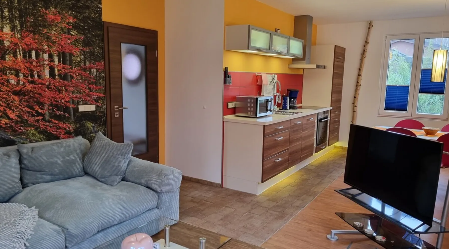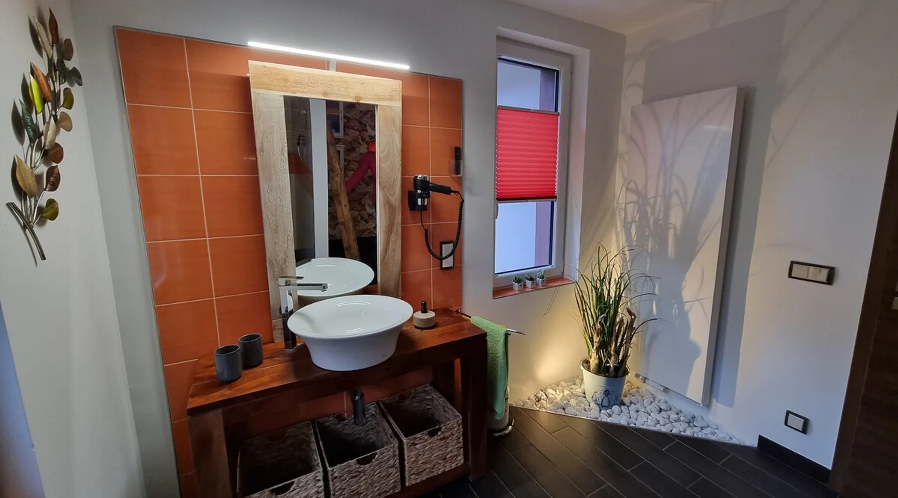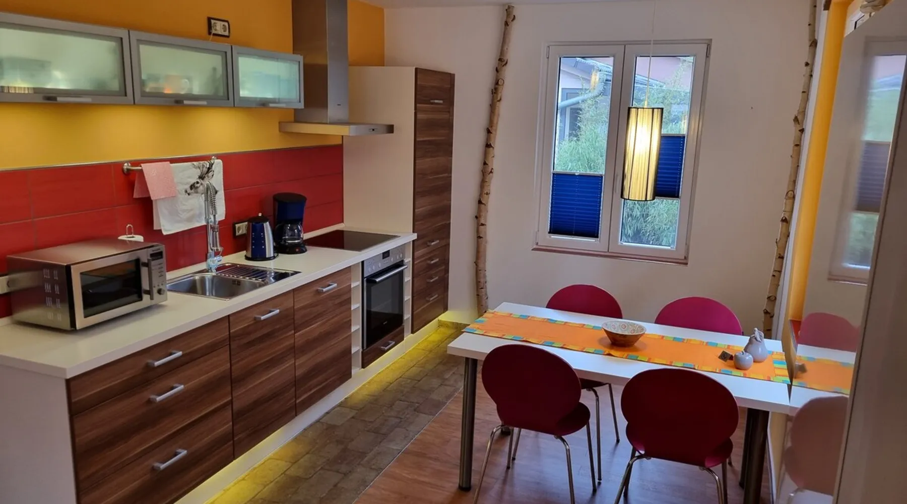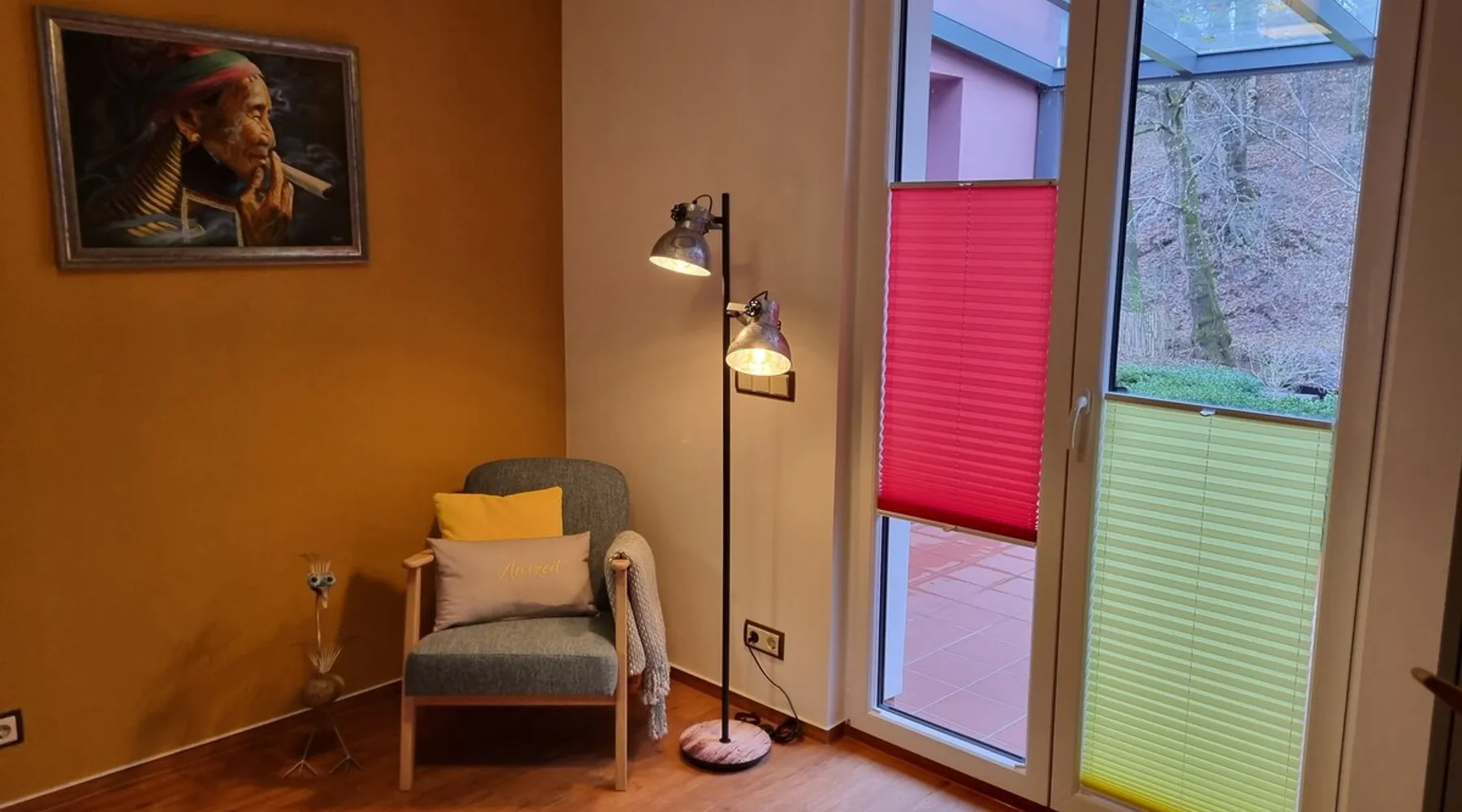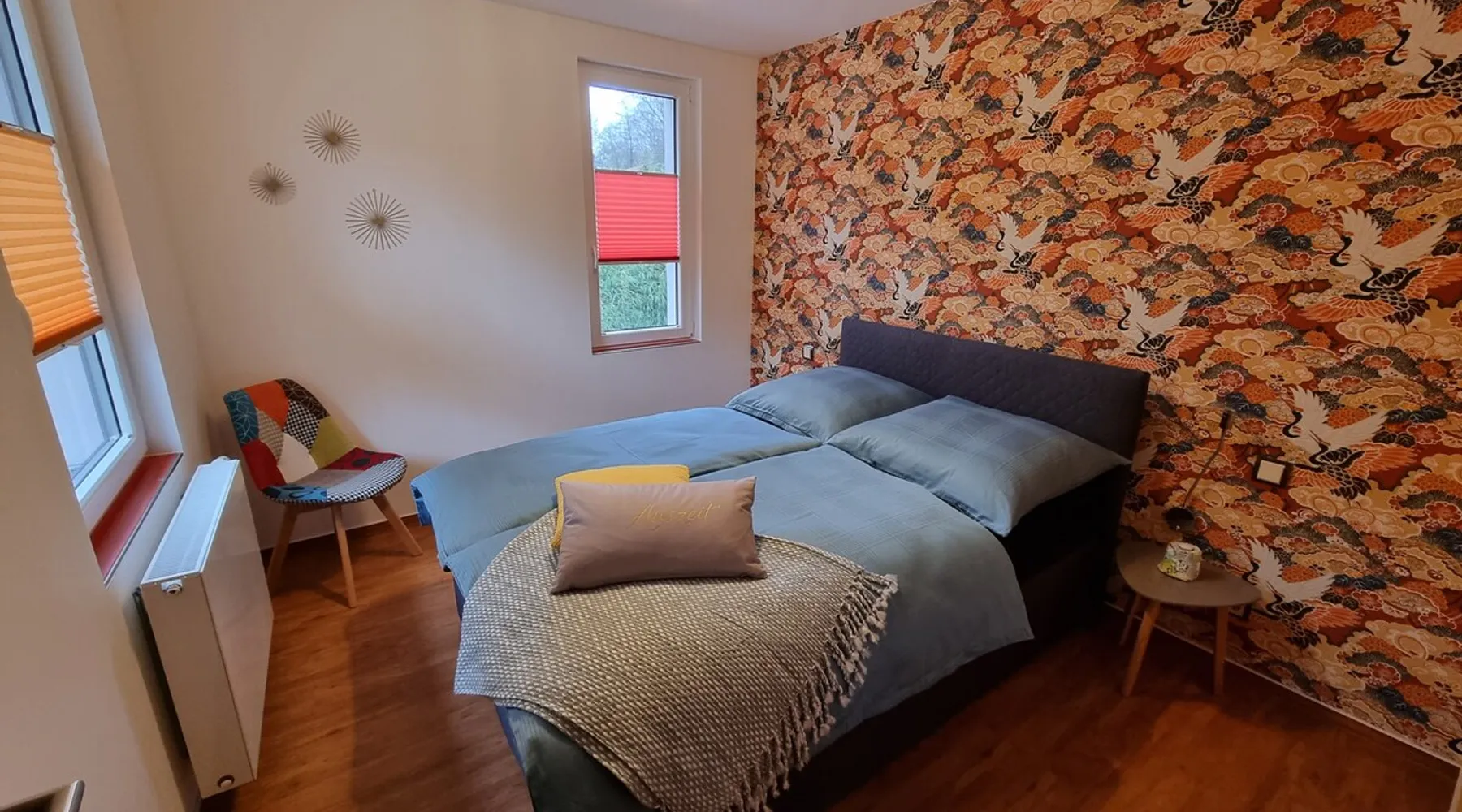 “The best of all goods, if there's freight at all, is the serenity, and a place you can call your own." Recharge your batteries from the magnificent tranquility in the middle of the surrounding forest. Listen to the chirping of the birds, hear woodpeckers knocking in the trees. Relax with the sound of the trees and enjoy peace and solitude accompanied by the gentle lapping of the stream "Badewasser". Get away from it all. The space The cottage has many amenities on a living area of 90 m² to make your stay as relaxing as possible. You can feel comfortable in the large and open living room with integrated kitchen. The kitchen is equipped with all the essentials to prepare delicious dishes. There is a coffee machine, kettle, microwave, stove, dishwasher, fridge, toaster, etc. With the large satellite TV in the living area, you can receive all kinds of programs. But be sure, you will hardly use it. You can access the first terrace from the living room via a large sliding door. There are two bedrooms available in the property. In the large bedroom you will find a cozy bed 1.80 x 2.00 m with two high-quality mattresses of different degrees of hardness (soft/medium hard). The smaller bedroom is furnished with a comfortable box spring bed 1.40 x 2.00 m. The bathroom is modern and furnished to a high standard. The stylish laundry area has a permanently installed hairdryer, and a walk-in shower makes the use of the experience. A toilet is, of course, a matter of course. In a hanging cupboard there is a first aid kit to handle small injuries immediately. The reading room provides plenty of peace and relaxation on cloudy rainy days. You will find a careful selection of literature to get away from it all. The reading room leads through a large door to the second and covered terrace. There is also a utility room in the property. You can use the permanently installed wardrobe with hangers. Furthermore, you will also find a washing machine, a tumble dryer, clothes rack, ironing board and iron. The two terraces, once covered and wind protected, once open, are perfect for enjoying the surrounding nature. Sunbathing or summer rain, the sound of the trees, the babbling of the stream, the sound of birds and and and and.... The terraces have a seating area, tables, chairs and sun loungers. From the terrace you can enter the spacious nature. On hot days you can walk barefoot through the creek to cool down. Or you can just walk a few steps away from the property and are already on the next forest path to start an exploring hike through the Thuringian Forest. In the cupboard in the hallway there is a badminton set. You can use this in the adjacent meadow. Other things to note Transportation: The district of Reinhardsbrunn has its own stop of the Thuringian Forest Railway. With the Thuringian Forest Railway, you can connect to the trains of the DB via the Gotha main station or the Südthüringenbahn in Waltershausen. From the property you can walk about 15 minutes to the stop. Motorway A4 can be reached easily via the Waltershausen junction. Since our cottage is a bit remote, a car is recommended in case of doubt. Free parking is available directly at the holiday home. The location's GPS coordinates are: 50.86971, 10.55087