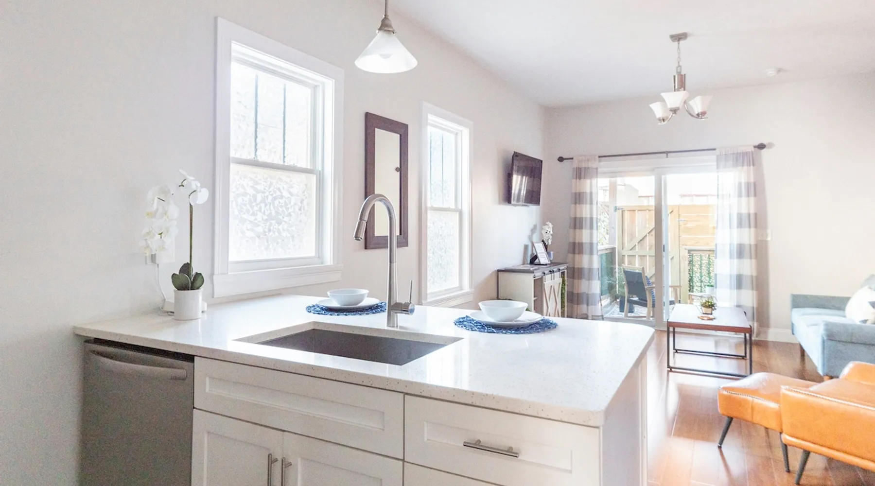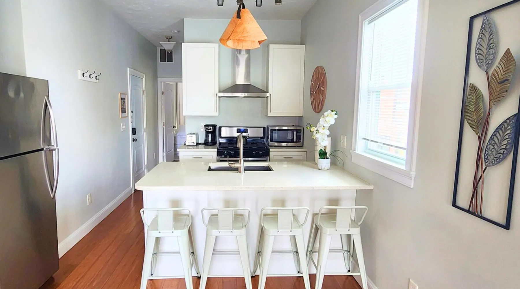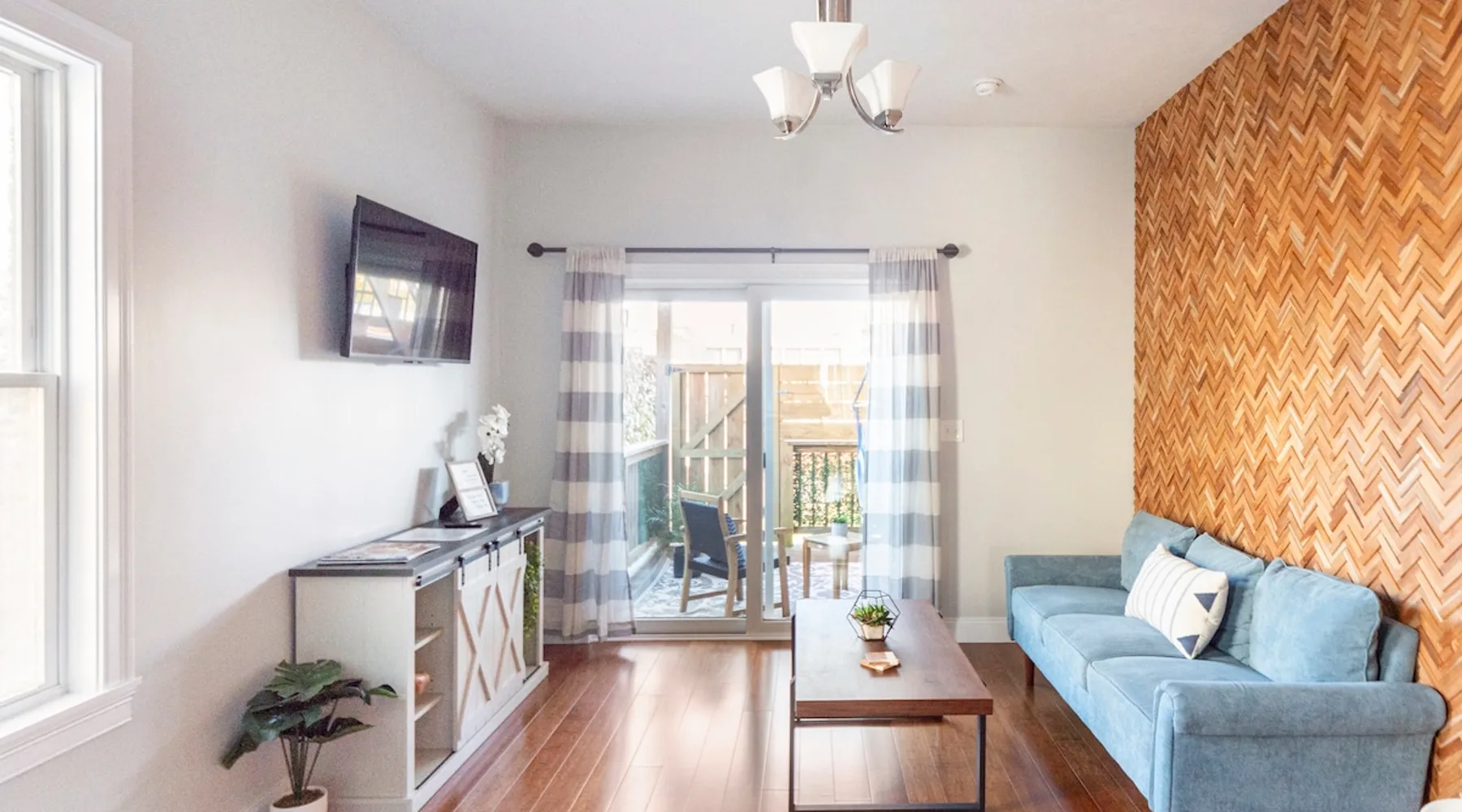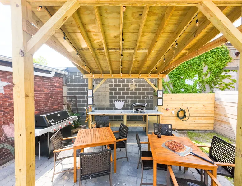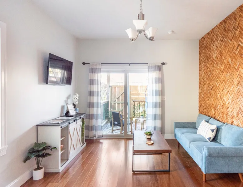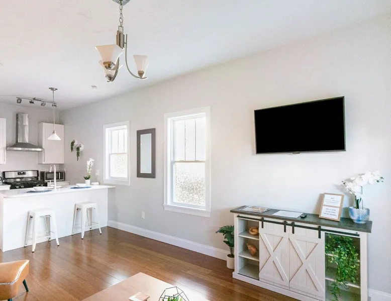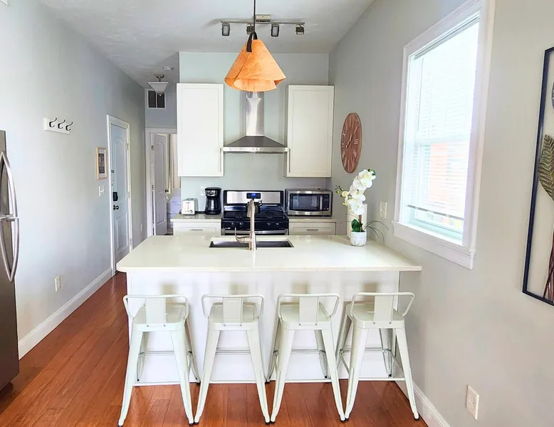 Step into style and comfort in this beautifully curated apartment that blends cozy charm with modern elegance. Featuring an open living space, charming kitchen, and sleeper sofa. Open the glass doors to enjoy your private deck with a hammock & seating area. Down the hall, the spacious bedroom also has a work nook & is set next to a full bathroom, making this space perfect for up to 4 guests. A short walk to restaurants, 15 minutes to Airport & 10 minutes to the train this is an ideal location. The space . WHY JENNIFER'S? Book with Jennifer’s and see why OVER 5,000 guests trust her 25 Top-Rated Providence rentals for spotless, reliable, stress-free stays. With every detail cared for and 24/7 support from our communications team, you can travel with total peace of mind! NO PARTIES We wish to continue hosting guests; therefore, this space is NOT suitable for Parties or Events. THE LAYOUT: KITCHEN: Walk inside and be welcomed by a bright, modern kitchen that instantly sets the tone for your stay. The oversized island doubles as a dining space with seating for four. There is a full suite of stainless steel appliances; including a full-size refrigerator, stove, microwave, and dishwasher—make cooking & meal prep feel effortless. Whether you're preparing a quick breakfast or a full dinner, you'll find all the essentials: cookware, utensils, dishes, glassware, and even a coffee maker to start your morning right. LIVING AREA: Steps away from the kitchen you’ll find a living area that blends comfort with character. Enjoy a textured wood accent wall, mounted 55-inch Smart TV, blue sofa that easily converts in a queen-size bed, and sleek coffee table creating the perfect space to relax or gather. Natural light pours in through the sliding glass doors, leading to your own private deck, this inviting space is designed for both ease and style. SPECIAL NOTE - OUR SLEEPER SOFAS Not all sleeper sofas are created equal—and trust us, we’ve tested a LOT of them! After a year of searching, sitting, and yes… even napping, we finally found “THE ONE.” These premium sleeper sofas are so comfy that even adults can get a great night’s sleep. We invested over $15,000 upgrading them across our properties, so go ahead—test ours out… you won’t be disappointed! SLEEPING AREA: Down the hall, this serene bedroom offers a comfortable space to unwind. It features a queen size bed, bench, white noise sound machine, and a closet for style and comfort. The work area is perfectly positioned in front of a stunning bay window, filling the space with natural light throughout the day. With a desk and chair, it's a stylish spot for catching up on emails. BATHROOM: This stylish bathroom, located just off the bedroom, is thoughtfully designed with modern touches throughout. Including a modern vanity and mirror. This bathroom is fully stocked with the essentials that any guest would need including shampoo, conditioner, body wash, hand soap, and a hair dryer to ensure a smooth and convenient stay. THE DECK: Step through the glass sliding doors in the living area and discover your own private deck—an inviting outdoor extension of the apartment. This charming space features cozy seating and a hammock chair perfect for relaxing. Surrounded by wooden fencing the gate opens up to the shared backyard, creating a seamless flow between indoor comfort and outdoor enjoyment. THE SHARED BACKYARD Welcome to your Urban Oasis in Providence. While the backyard is shared among eight apartments, it still feels like your own private retreat thanks to thoughtful design and cozy nooks. Relax in comfort with lounge chairs arranged around a coffee table—perfect for a game of Jenga. Fire up the pizza oven, keep your drinks chilled in the mini fridge, and take advantage of the gas grill. Each apartment is stocked with grilling tools you can bring outside, and there are prep counters for easy outdoor cooking. String lights overhead create a warm, inviting glow for evenings. Dine al fresco (in the open air) at the outdoor table or get active with the professional-grade ping pong table and regulation cornhole setup on the lawn. Just steps from your door, this backyard is your go-to spot for relaxing, crafting a meal, and enjoying the outdoors. THE BUILDING: This beautifully restored building on Dean Street in Providence features a bold blue exterior with crisp white trim, reflecting the charm of its historic neighborhood while offering fully updated interiors. Located in a walkable, well-connected neighborhood, the home houses five separate short-term rental units—including this inviting first-floor apartment. Despite the thorough renovations of all our apartments, the building itself remains an older structure and is considered unsuitable for young children. However, if your children are 2 years or older and you understand these considerations, we would be happy to accommodate your stay. We will provide instructions for 1 free parking spot in the lot diagonally across the street. If you park in any other lot or driveway around the building, your car WILL BE TOWED! ABOUT JENNIFER'S Jennifer is a dedicated host who owns and operates 25, ALL Top-Rated, short-term rentals across Providence—an achievement that only comes with hard work, consistency, and a true passion for hospitality. Her and her team put tremendous care into every detail of your stay. Between checkout and check-in, they work quickly to ensure your unit is immaculately clean, thoughtfully curated and fully stocked for a comfortable stay. Many of our Guest's Reviews highlight the same thing: "just how Clean and Welcoming everything feels upon arrival!" Our communications team is available 24/7, ready to answer questions, offer local tips, or assist with anything you need. And for added peace of mind, we even provide an emergency call line if immediate help is ever required. What sets Jennifer apart is that she brings the personal touch of a single-property host, but at s