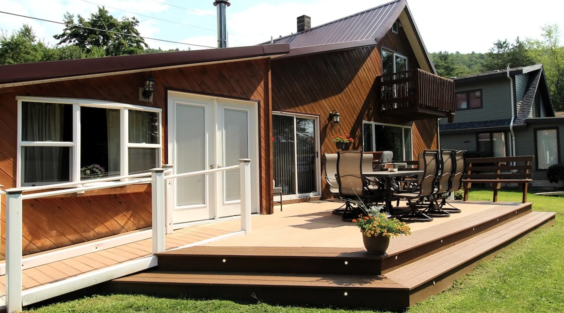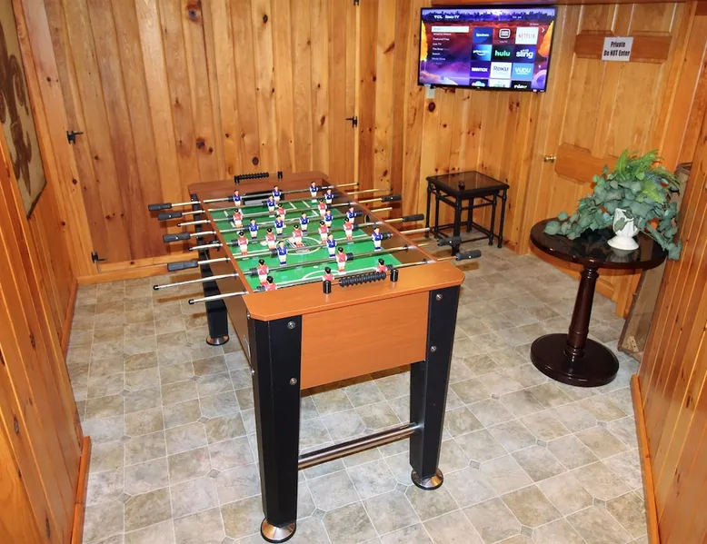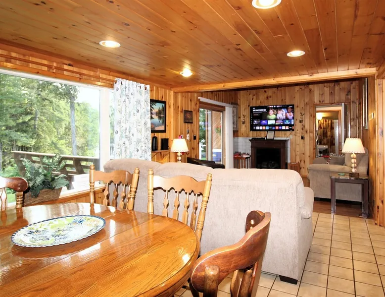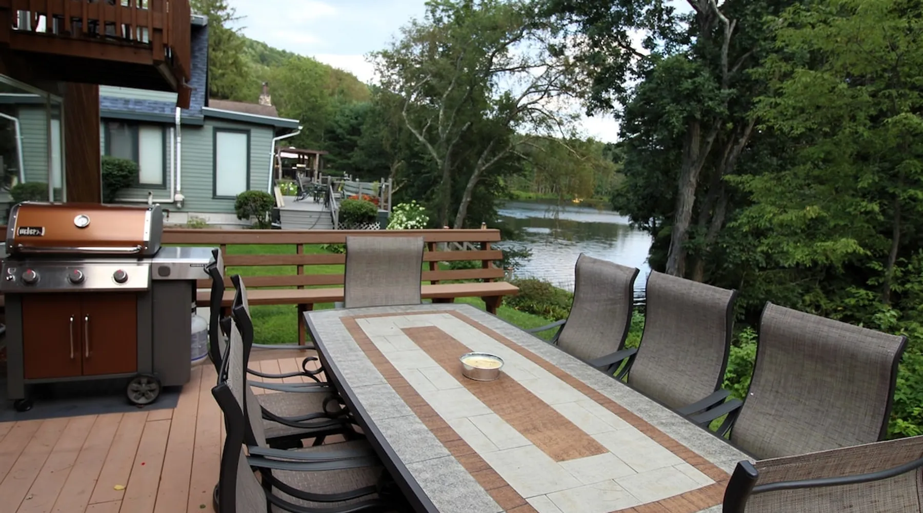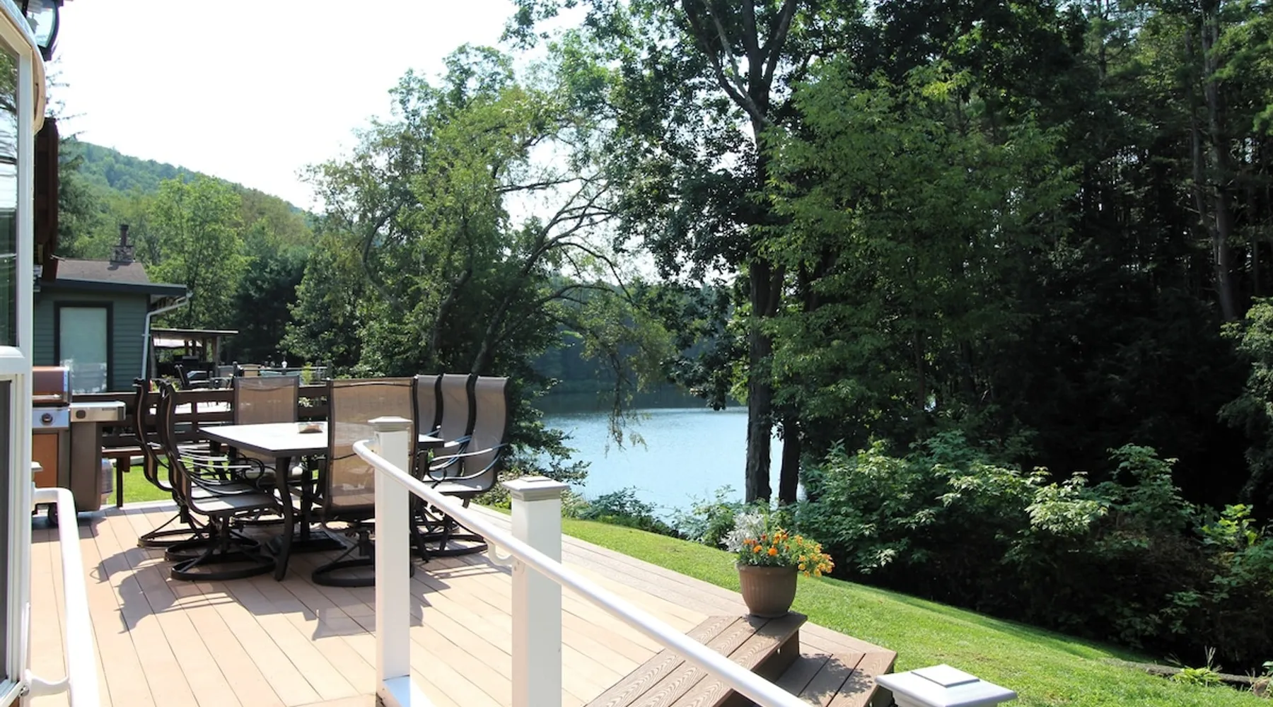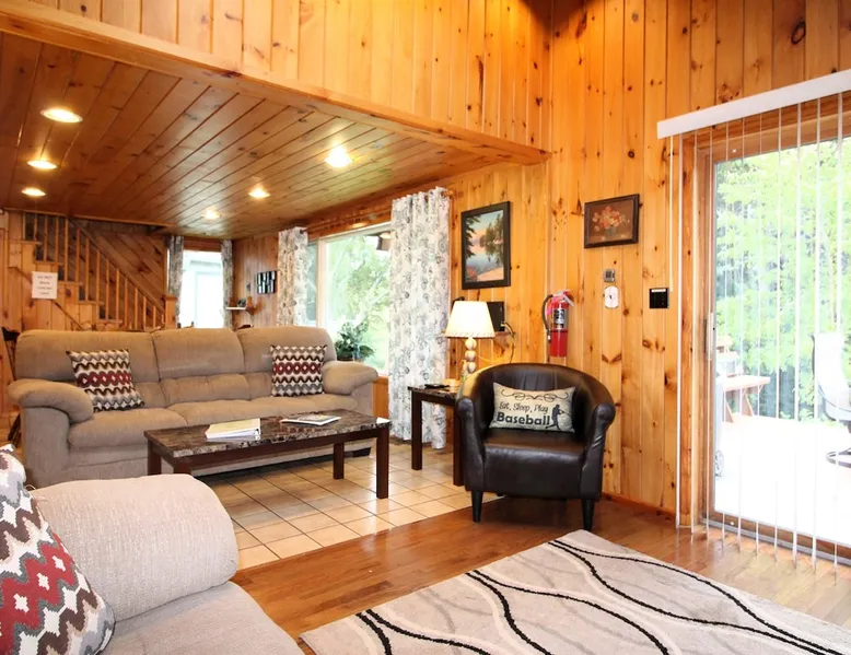 Conveniently located just: • 10.6 miles to Cooperstown Dreams Park • 11.8 miles to Cooperstown All-Star Village • 9.3 miles to Cooperstown Baseball World Anglewoods is the perfect choice for your baseball tournament vacation home-away-from-home. The space Central air conditioning will keep you cool and comfortable in this well-appointed home. The kitchen has granite counter tops, a triple basin sink and stainless steel appliances. There are ceramic tile floors in main areas of first floor. Bedroom #1 has ceramic tile floors, bedroom #2 & 3 have hardwood flooring. The 2 bedrooms upstairs are both carpeted. The walls and ceilings are finished with V-groove pine boards. One of the baths on the first floor is handicapped accessible, and another bath features heated flooring and a "his & hers" shower with dual shower heads. The third bathroom on the first floor features a jetted shower with sound system. There are 3 bedrooms located on the first floor; one with a king size bed, one with a queen size bed, and one with a full size bed. On the second floor, there is a fourth bedroom with a king size bed and a fifth "railroad style" bedroom with two twin beds. There are 1.5 baths located on the second floor. Guest access This picturesque home features a deck off the main floor and a second floor balcony, which both overlook the water. The outdoor fire pit is a lovely location for relaxation and conversation at the end of a busy day. There is a private dock for swimming and fishing, and we even provide two single kayaks and personal flotation devices (PFD's) for your enjoyment and safety. There is a game room in the basement, complete with a foosball table and a flat screen smart Roku TV. Other things to note Just added for 2025! A bonus refrigerator in the game room to keep your cold beverages handy while you enjoy a game of foosball!