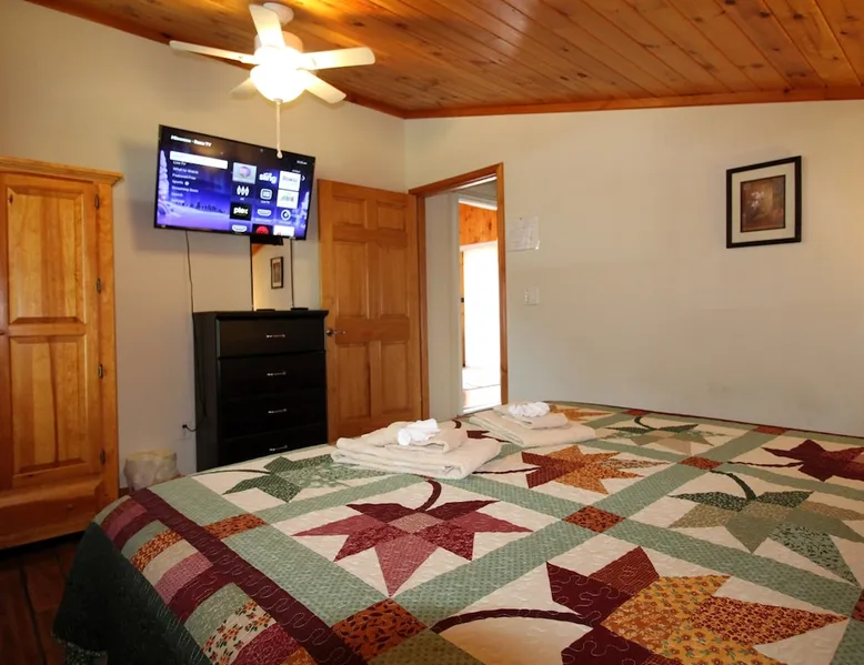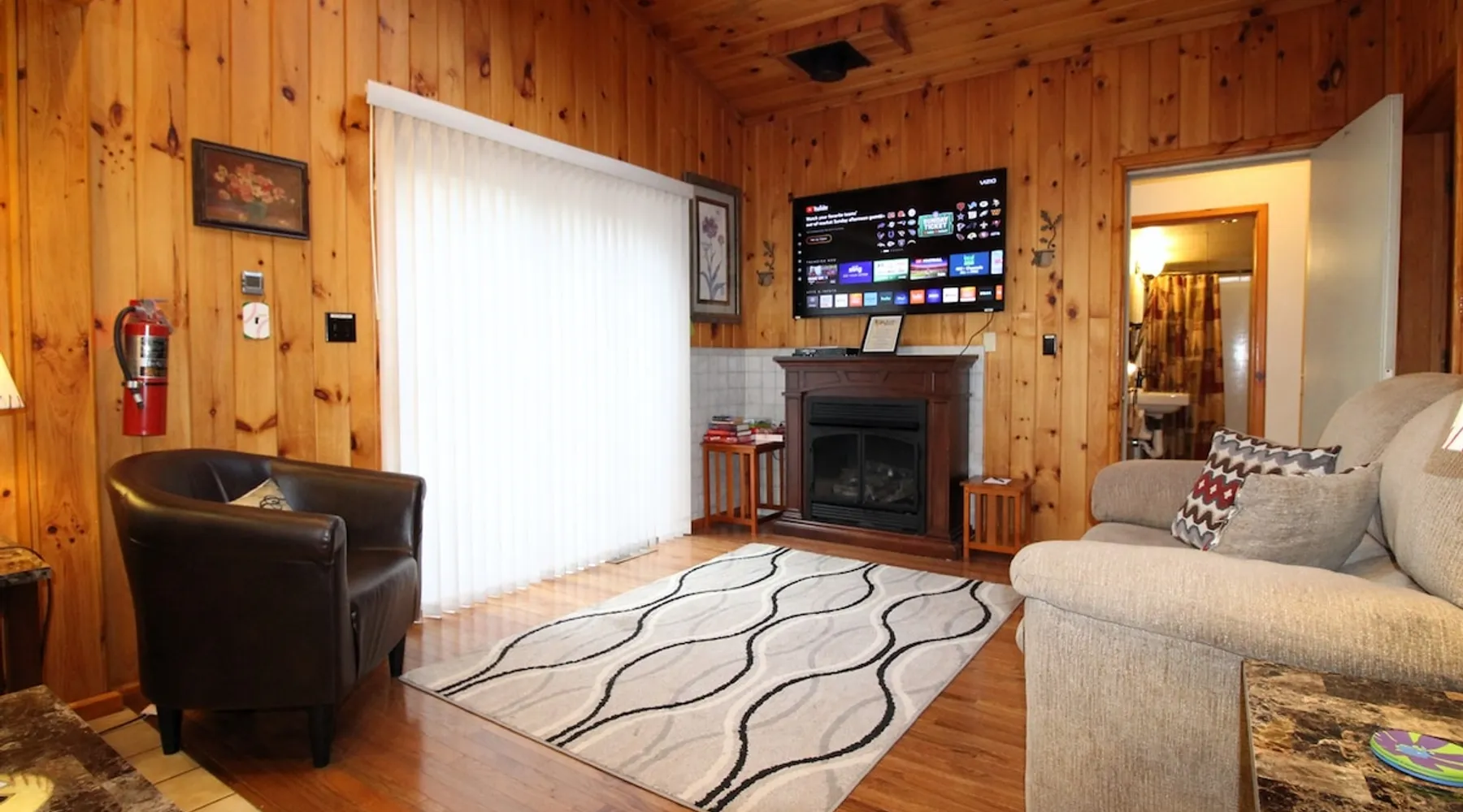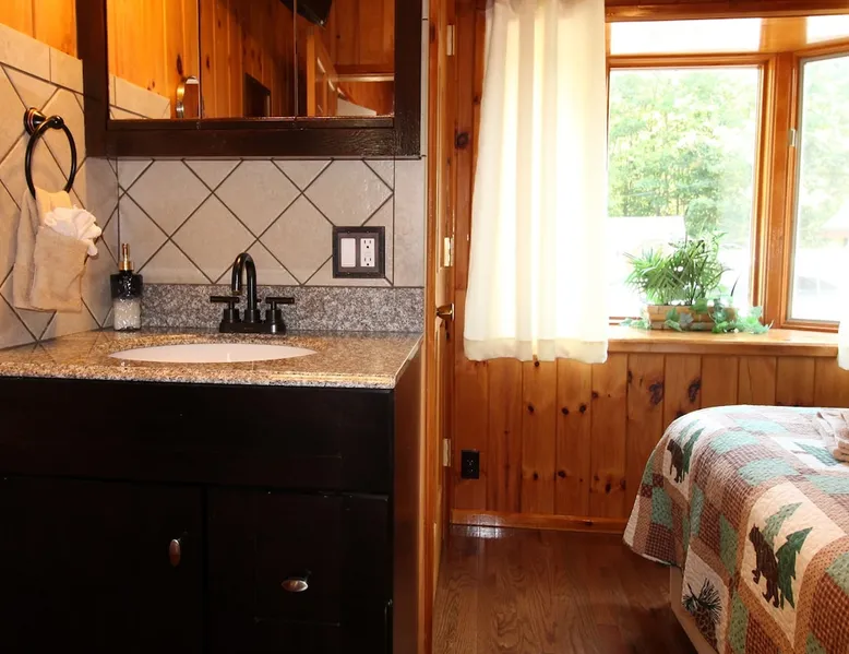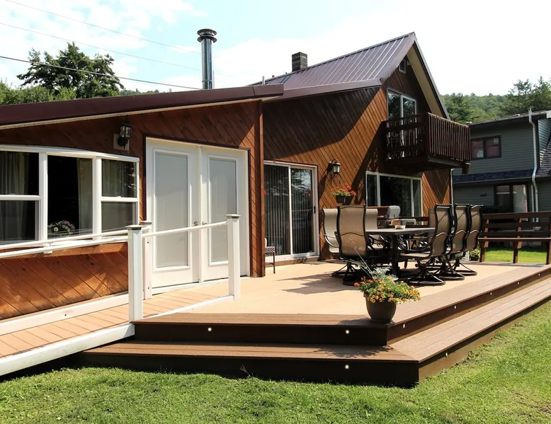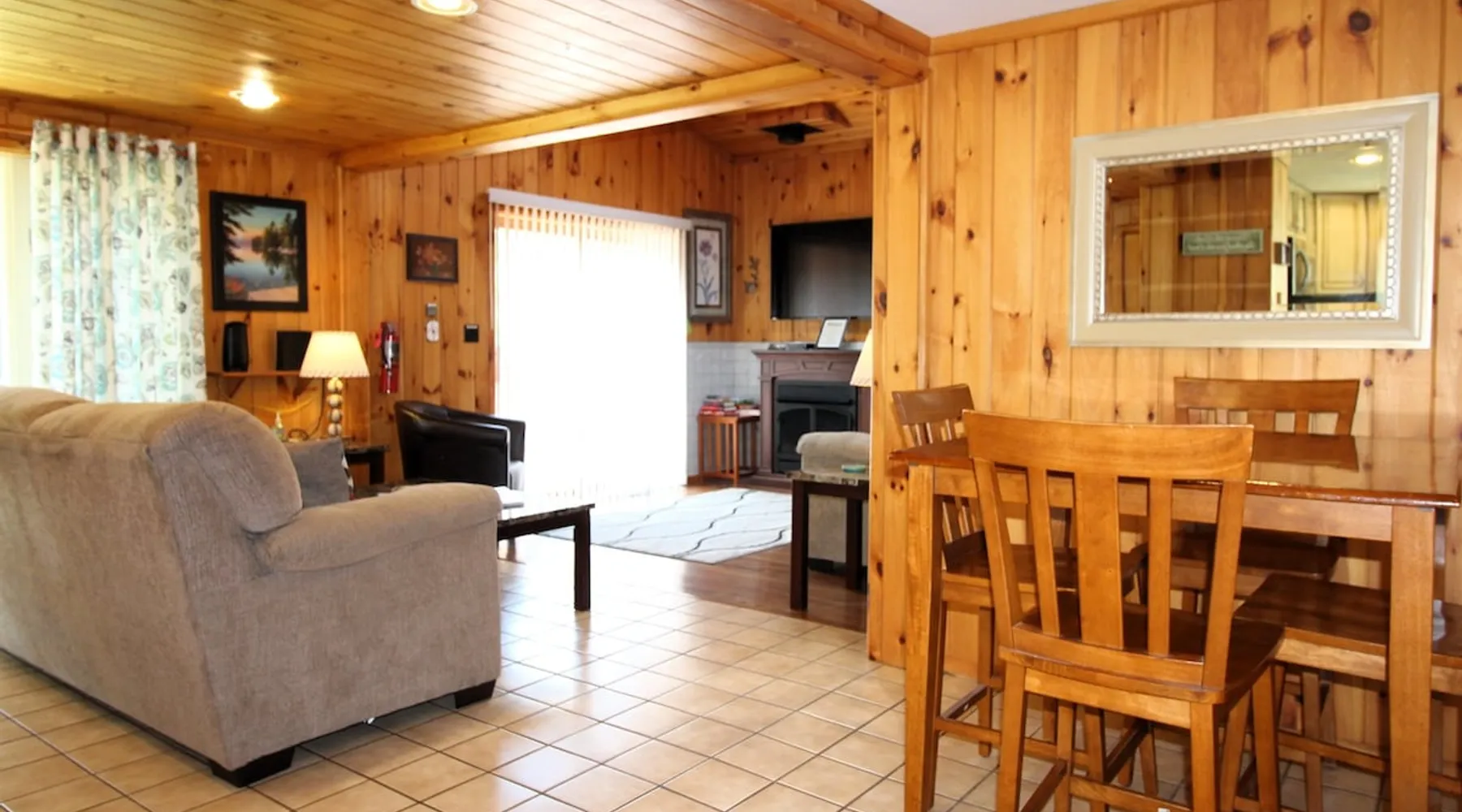 Conveniently located just: • 10.6 miles to Cooperstown Dreams Park • 11.8 miles to Cooperstown All-Star Village • 9.3 miles to Cooperstown Baseball World Anglewoods is the perfect choice for your baseball tournament vacation home-away-from-home. The space Central air conditioning will keep you cool and comfortable in this well-appointed home. The kitchen has granite counter tops, a triple basin sink and stainless steel appliances. There are ceramic tile floors in main areas of first floor. Bedroom #1 has ceramic tile floors, bedroom #2 & 3 have hardwood flooring. The 2 bedrooms upstairs are both carpeted. The walls and ceilings are finished with V-groove pine boards. One of the baths on the first floor is handicapped accessible, and another bath features heated flooring and a "his & hers" shower with dual shower heads. The third bathroom on the first floor features a jetted shower with sound system. There are 3 bedrooms located on the first floor; one with a king size bed, one with a queen size bed, and one with a full size bed. On the second floor, there is a fourth bedroom with a king size bed and a fifth "railroad style" bedroom with two twin beds. There are 1.5 baths located on the second floor. Guest access This picturesque home features a deck off the main floor and a second floor balcony, which both overlook the water. The outdoor fire pit is a lovely location for relaxation and conversation at the end of a busy day. There is a private dock for swimming and fishing, and we even provide two single kayaks and personal flotation devices (PFD's) for your enjoyment and safety. There is a game room in the basement, complete with a foosball table and a flat screen smart Roku TV. Other things to note Just added for 2025! A bonus refrigerator in the game room to keep your cold beverages handy while you enjoy a game of foosball!