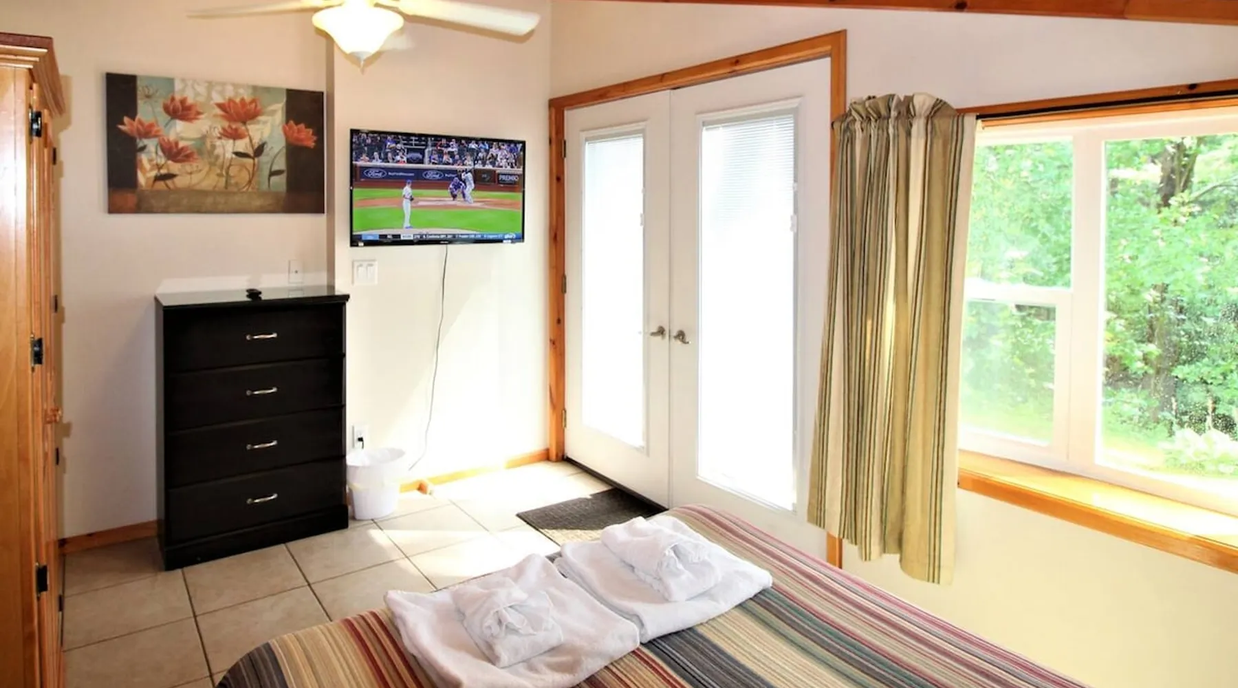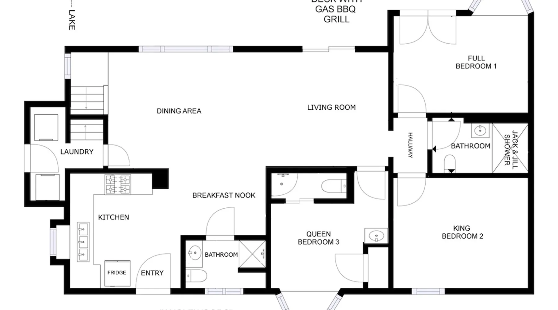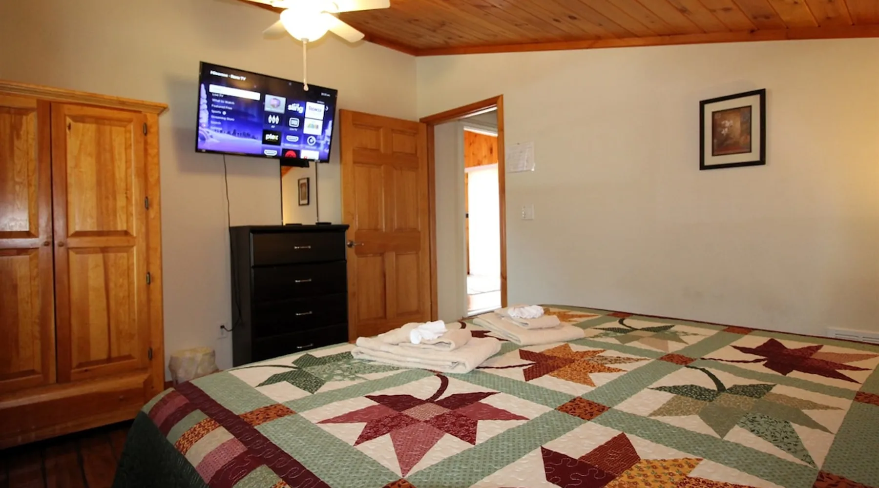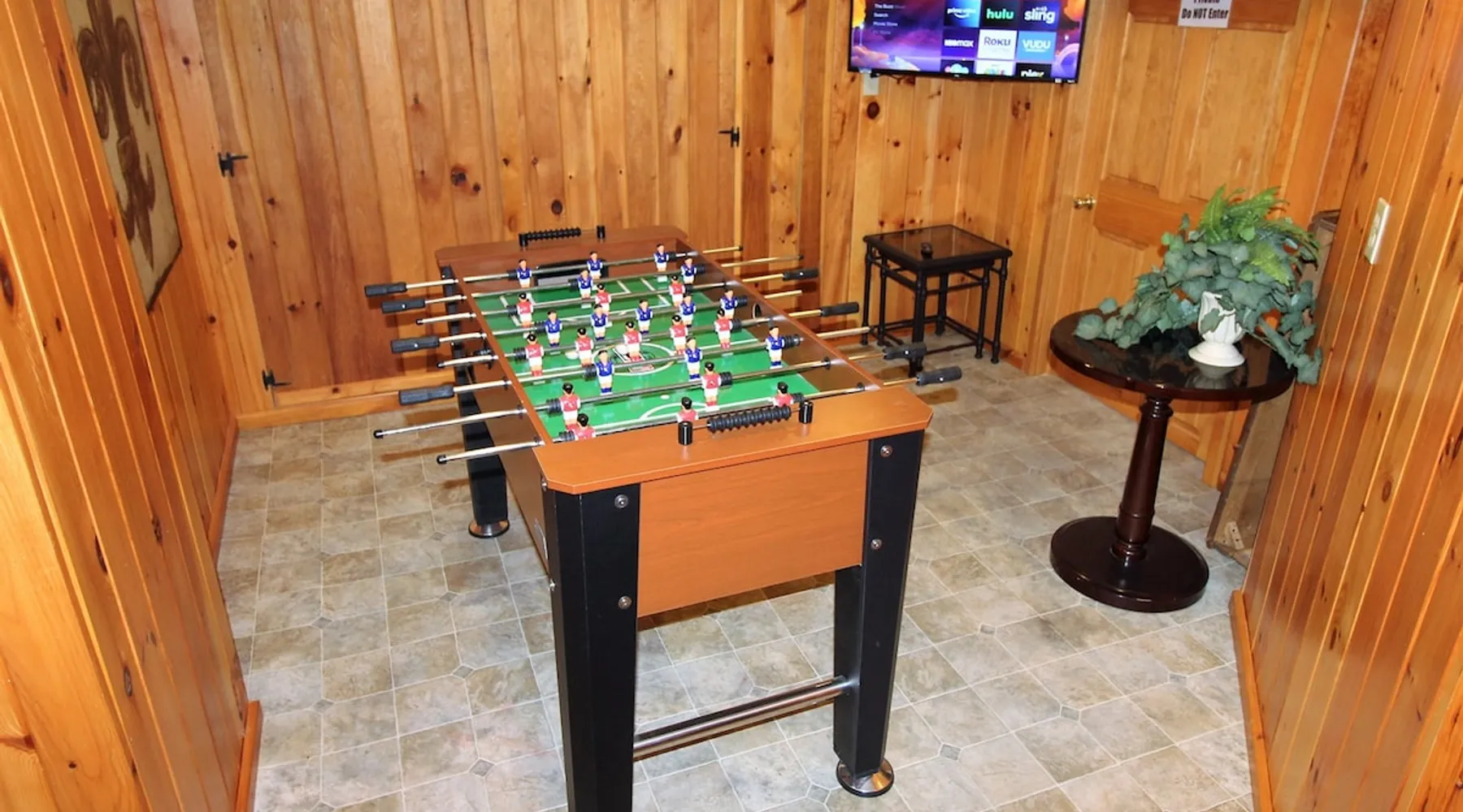 Conveniently located just: • 10.6 miles to Cooperstown Dreams Park • 11.8 miles to Cooperstown All-Star Village • 9.3 miles to Cooperstown Baseball World Anglewoods is the perfect choice for your baseball tournament vacation home-away-from-home. The space Central air conditioning will keep you cool and comfortable in this well-appointed home. The kitchen has granite counter tops, a triple basin sink and stainless steel appliances. There are ceramic tile floors in main areas of first floor. Bedroom #1 has ceramic tile floors, bedroom #2 & 3 have hardwood flooring. The 2 bedrooms upstairs are both carpeted. The walls and ceilings are finished with V-groove pine boards. One of the baths on the first floor is handicapped accessible, and another bath features heated flooring and a "his & hers" shower with dual shower heads. The third bathroom on the first floor features a jetted shower with sound system. There are 3 bedrooms located on the first floor; one with a king size bed, one with a queen size bed, and one with a full size bed. On the second floor, there is a fourth bedroom with a king size bed and a fifth "railroad style" bedroom with two twin beds. There are 1.5 baths located on the second floor. Guest access This picturesque home features a deck off the main floor and a second floor balcony, which both overlook the water. The outdoor fire pit is a lovely location for relaxation and conversation at the end of a busy day. There is a private dock for swimming and fishing, and we even provide two single kayaks and personal flotation devices (PFD's) for your enjoyment and safety. There is a game room in the basement, complete with a foosball table and a flat screen smart Roku TV. Other things to note Just added for 2025! A bonus refrigerator in the game room to keep your cold beverages handy while you enjoy a game of foosball!