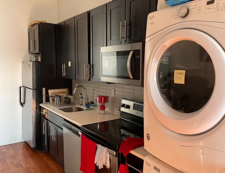 Private bedroom with double bed in a shared flat with two other people. Two bathrooms. Kitchen (all equipped), washing machine and dryer. In the area of Bushwick at 5 min walk from L line (Wilson ave station) and 10 min to the J line (Halsey street). Natalie your roommates will be there if you need anything!
