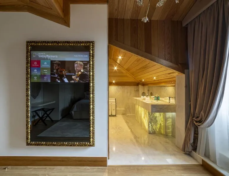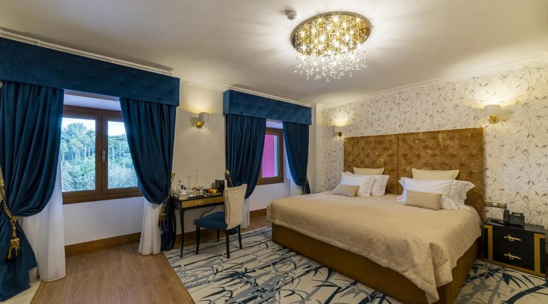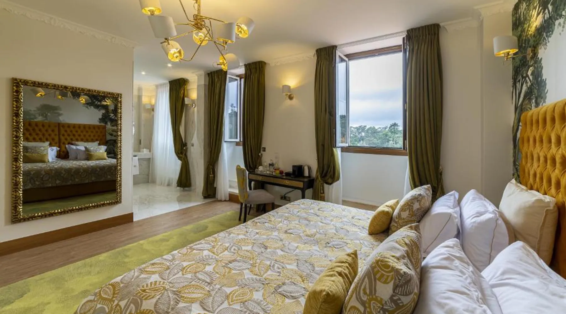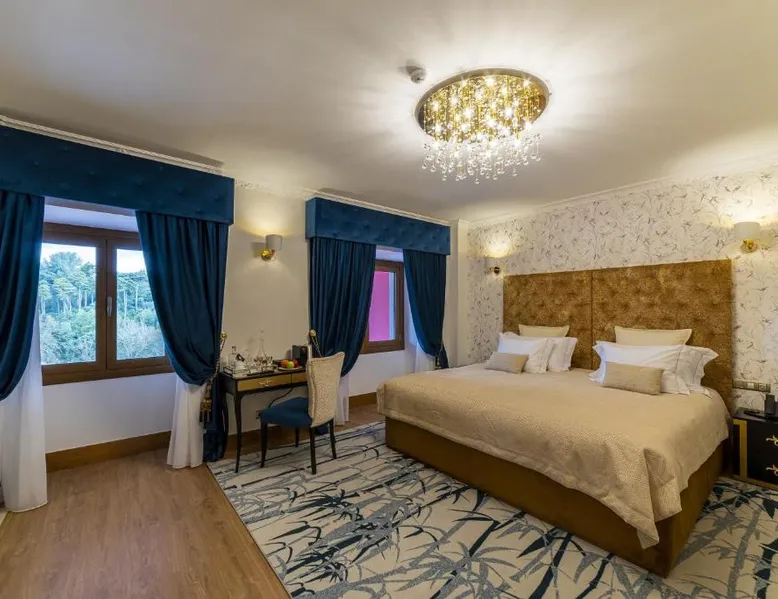 Comfortable Accommodations: Sintra Marmòris Camélia in Sintra offers family rooms with air-conditioning, private bathrooms, and modern amenities. Each room includes a work desk, free WiFi, and a flat-screen TV. Exceptional Facilities: Guests can relax on the terrace or enjoy the outdoor seating area. The property provides free WiFi, a coffee shop, and a child-friendly buffet. Additional services include a shuttle, concierge, and live music. Prime Location: Located 7.5 mi from Cascais Municipal Airport, the guest house is a short walk from Sintra National Palace and Moors Castle. Nearby attractions include Quinta da Regaleira and Pena Palace. Guest Satisfaction: Highly rated for its breakfast, attentive staff, and convenient location, Sintra Marmòris Camélia ensures a pleasant stay for all visitors. This spacious suite consists of 1 living room, 1 separate bedroom and 2 bathrooms with a bath and free toiletries. The air-conditioned suite provides a flat-screen TV with cable channels, soundproof walls, a mini-bar, a tea and coffee maker as well as city views. The unit offers 2 beds.