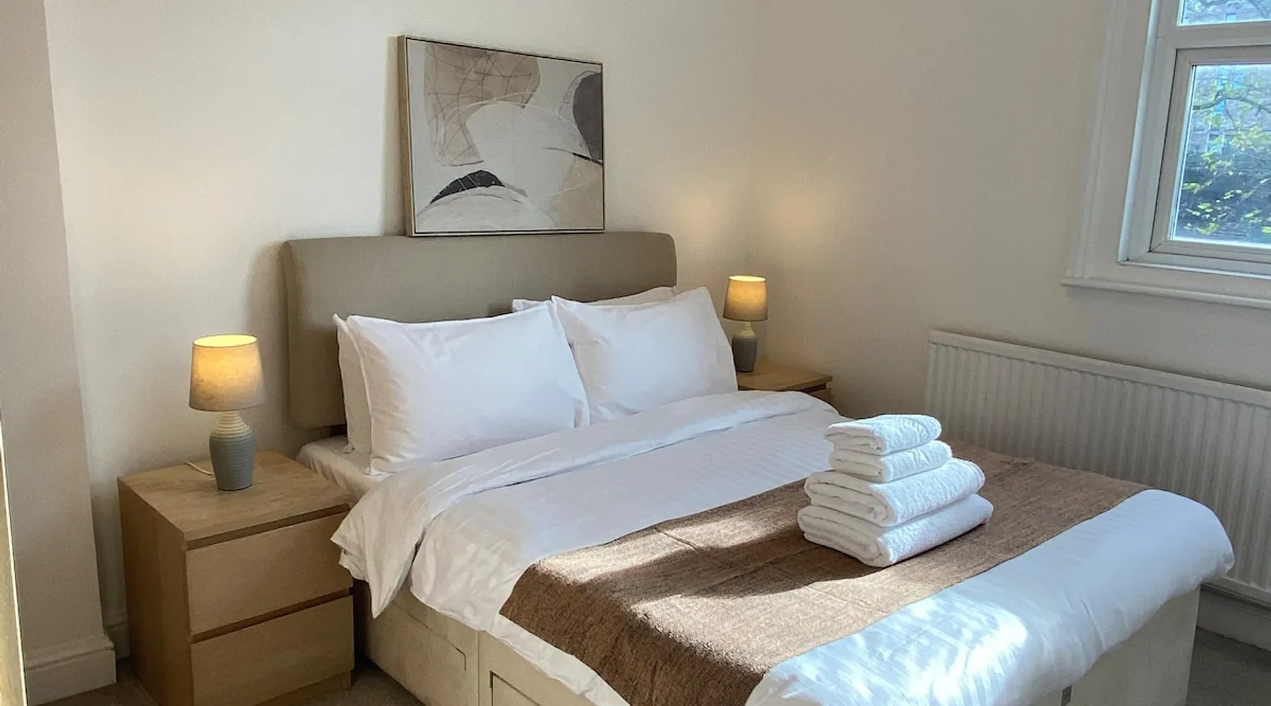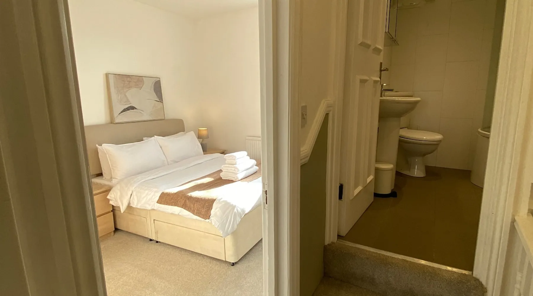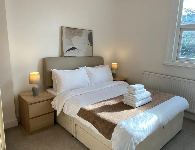 *2 bed house with 1 x king and 1 x double bedroom *maximum of 4 guests *private entrance *1 min walk from Queens Park tube (Bakerloo and Overground lines) *5 min walk to local supermarkets, bars, restaurants and cafes *40 mins to Heathrow airport *15 mins into central London *safe and family-friendly area Read on for a full written description of the home and area! The space Enjoy a great stay at this recently renovated 2-bedroom coachhouse apartment 1 min walk from Queen’s Park tube! The space is cosy but perfectly formed, with everything you’ll need for a lovely stay, accommodating up to 4 guests. You enter the apartment from a small door tucked on the side of a Victorian era townhouse typical of the local area. On the ground floor you’ll find a lovely light-filled living and dining room, with comfortable sofas, dining table and chairs and smart TV. This room looks out onto the private back garden! Right next door you’ll find the separate full service kitchen, and a guest toilet. Head up the staircase and you’ll find 2 bedrooms- a larger principle bedroom with a king bed, and a smaller bedroom with a UK double bed. Also on this floor you’ll find the family bathroom with bath and a shower overhead. Guest access You have access to the whole apartment, including private rear garden. There is a locked storage shed in the garden which guests do not have access to. Other things to note Being a stone's throw from Queens Park tube is great for moving around London, but means you’ll hear train noise. This doesn’t bother most guests, but it’s something to be aware of if you’re a light sleeper. If you have any questions around this please send an enquiry before booking!