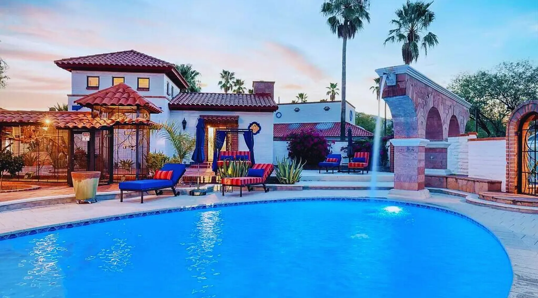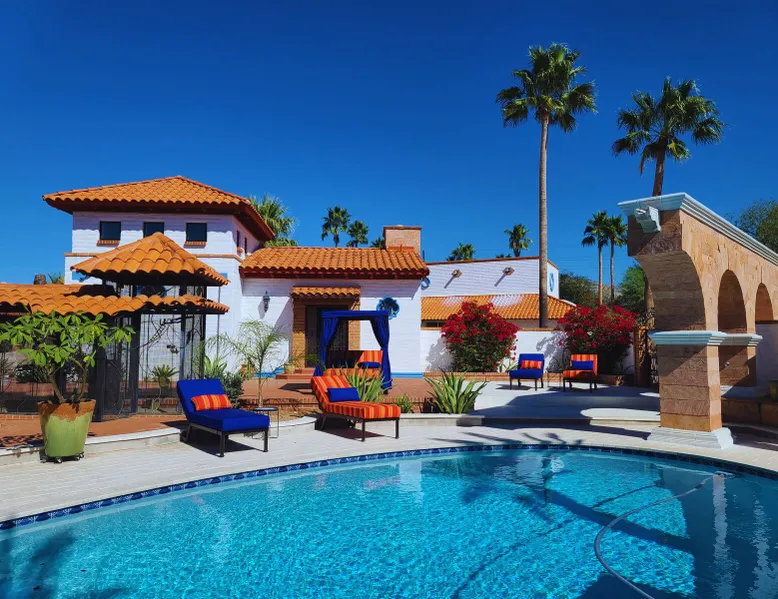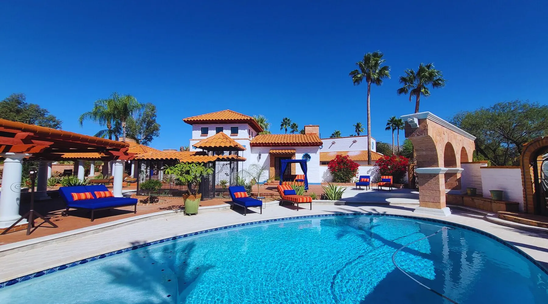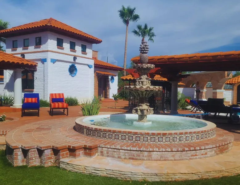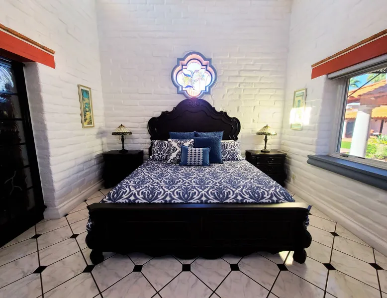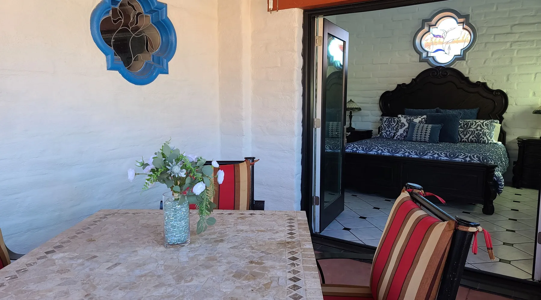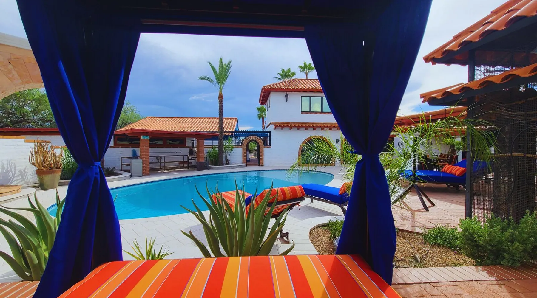 The White Hacienda is a private estate located in sought-after Casas Adobes. Located in the northern metropolitan area of Tucson, the owners are excited to share a rare piece of history with those that appreciate a thoughtfully crafted and timeless "Adobe Estate". This one-of-a kind casita allows you the opportunity to immerse yourself in your own private resort. The luxurious 1 bedroom, 1 bathroom casita offers a mini kitchen with a cooktop, microwave, mini fridge, and quartz countertops. You'll fall in love with the custom mesquite wood finishes throughout the casita and beautiful exposed wood beam ceilings. Did we mention your own private patio to have morning coffee or afternoon high tea? The property features a fully equipped outdoor kitchen(s) with a rotisserie, pizza oven, smoker and grill, large salt water pool with large lagoon fountains, water features throughout the property, and a large, covered patio and Ramada for outdoor living. Other unique features include an aviary for exotic birds, UofA Basketball court, an indoor racquetball court and gym. The property is right off the main road here in Tucson (Casas Adobes), we are within walking distance to the upscale shopping center, Casas Adobes Plaza, a historical retail destination, dating back to 1948 (Casas Adobes is considered to be the first developed suburb of Tucson). This incredible location has it all-walkability to fantastic restaurants, coffee, bars, shops, and more, easy access to world-class golf resorts & country clubs, and access to I-10, the University of Arizona, and downtown Tucson. The following amenities are included with your stay at NO EXTRA charge: - Basketball Court - Racquetball Court - Private Gym - Outdoor Pool Table - Outdoor Kitchen(s) - Outdoor Pizza Wood Oven(s) - Outdoor Pool - Cabana The total square footage of the casita is 763 square feet *** Please note that renting the casita does not include hosting events on the property. While we understand that our location and property can be a beautiful backdrop for events, we would like to emphasize that event hosting is completely separate from casita rental. We kindly ask that you do not assume that renting our casita entitles you to host an event on the property. If you are interested in hosting an event at our location, please contact us to discuss further arrangements. We will be happy to work with you to find the perfect solution for your event needs.*** More pictures coming soon, we are still getting the property set-up... **The property has been and will continue to be updated**