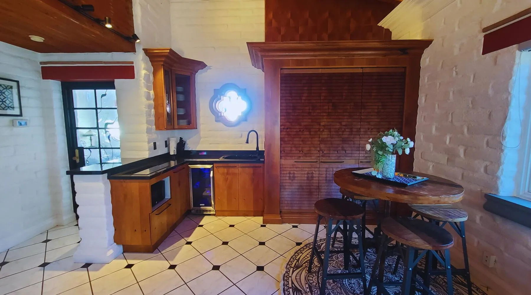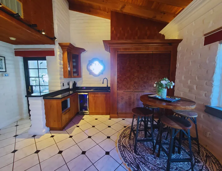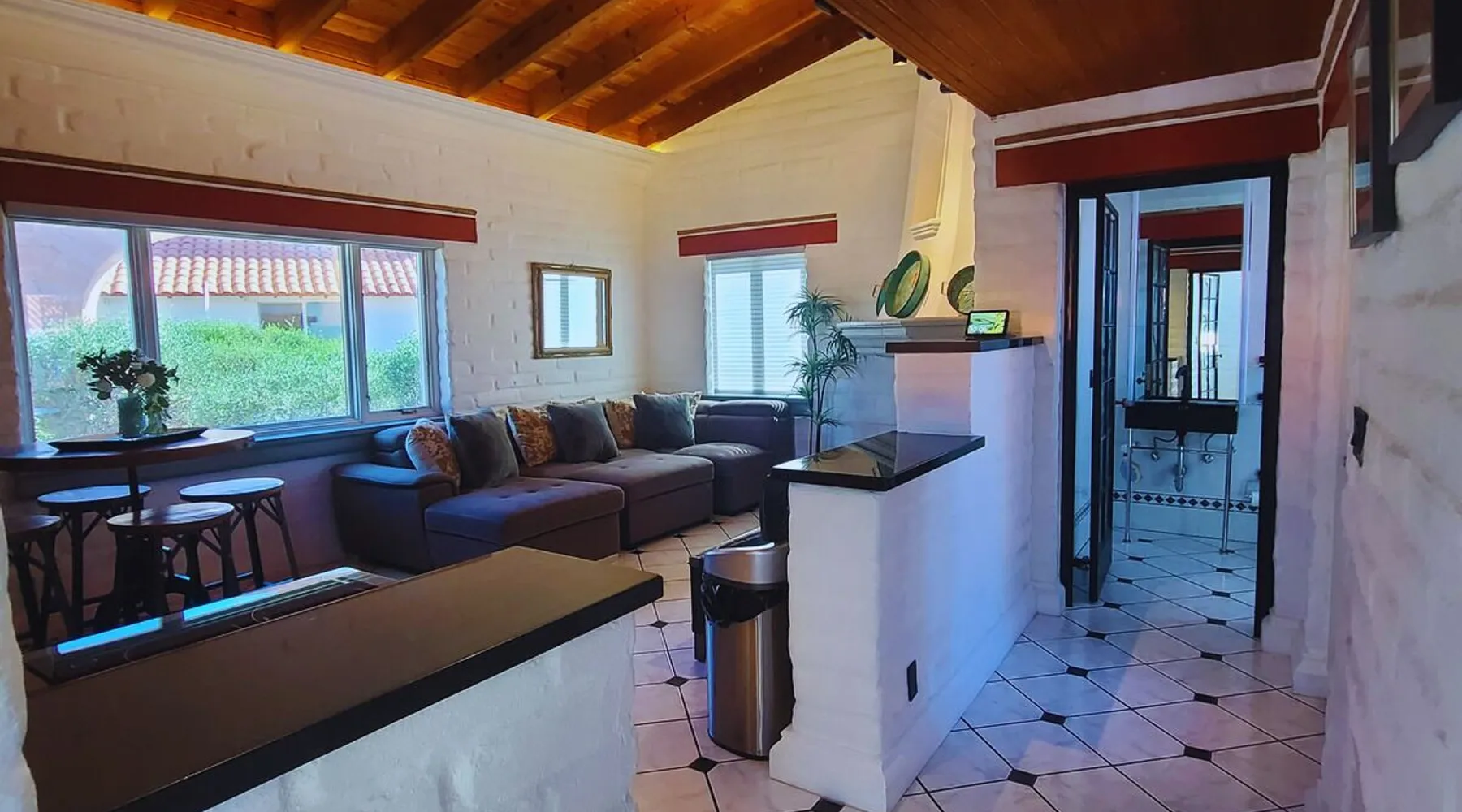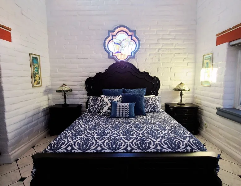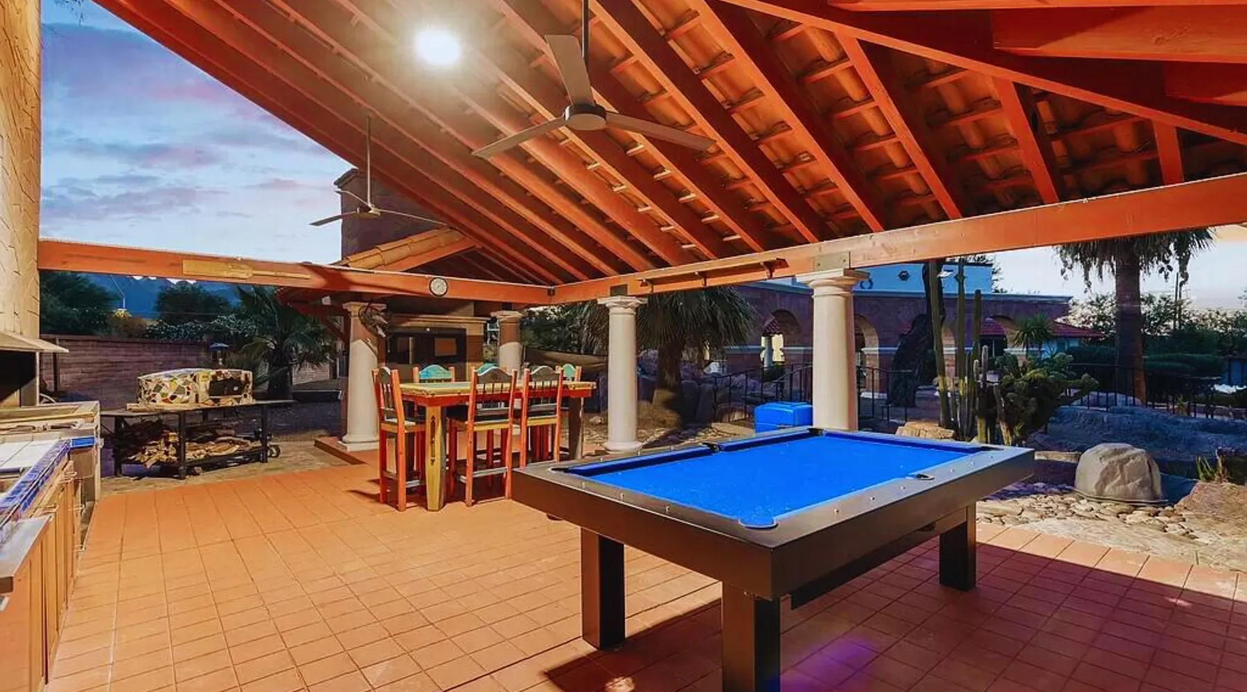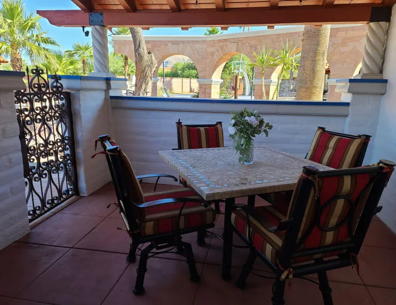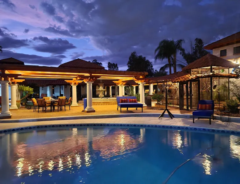 The White Hacienda is a private estate located in sought-after Casas Adobes. Located in the northern metropolitan area of Tucson, the owners are excited to share a rare piece of history with those that appreciate a thoughtfully crafted and timeless "Adobe Estate". This one-of-a kind casita allows you the opportunity to immerse yourself in your own private resort. The luxurious 1 bedroom, 1 bathroom casita offers a mini kitchen with a cooktop, microwave, mini fridge, and quartz countertops. You'll fall in love with the custom mesquite wood finishes throughout the casita and beautiful exposed wood beam ceilings. Did we mention your own private patio to have morning coffee or afternoon high tea? The property features a fully equipped outdoor kitchen(s) with a rotisserie, pizza oven, smoker and grill, large salt water pool with large lagoon fountains, water features throughout the property, and a large, covered patio and Ramada for outdoor living. Other unique features include an aviary for exotic birds, UofA Basketball court, an indoor racquetball court and gym. The property is right off the main road here in Tucson (Casas Adobes), we are within walking distance to the upscale shopping center, Casas Adobes Plaza, a historical retail destination, dating back to 1948 (Casas Adobes is considered to be the first developed suburb of Tucson). This incredible location has it all-walkability to fantastic restaurants, coffee, bars, shops, and more, easy access to world-class golf resorts & country clubs, and access to I-10, the University of Arizona, and downtown Tucson. The following amenities are included with your stay at NO EXTRA charge: - Basketball Court - Racquetball Court - Private Gym - Outdoor Pool Table - Outdoor Kitchen(s) - Outdoor Pizza Wood Oven(s) - Outdoor Pool - Cabana The total square footage of the casita is 763 square feet *** Please note that renting the casita does not include hosting events on the property. While we understand that our location and property can be a beautiful backdrop for events, we would like to emphasize that event hosting is completely separate from casita rental. We kindly ask that you do not assume that renting our casita entitles you to host an event on the property. If you are interested in hosting an event at our location, please contact us to discuss further arrangements. We will be happy to work with you to find the perfect solution for your event needs.*** More pictures coming soon, we are still getting the property set-up... **The property has been and will continue to be updated**
