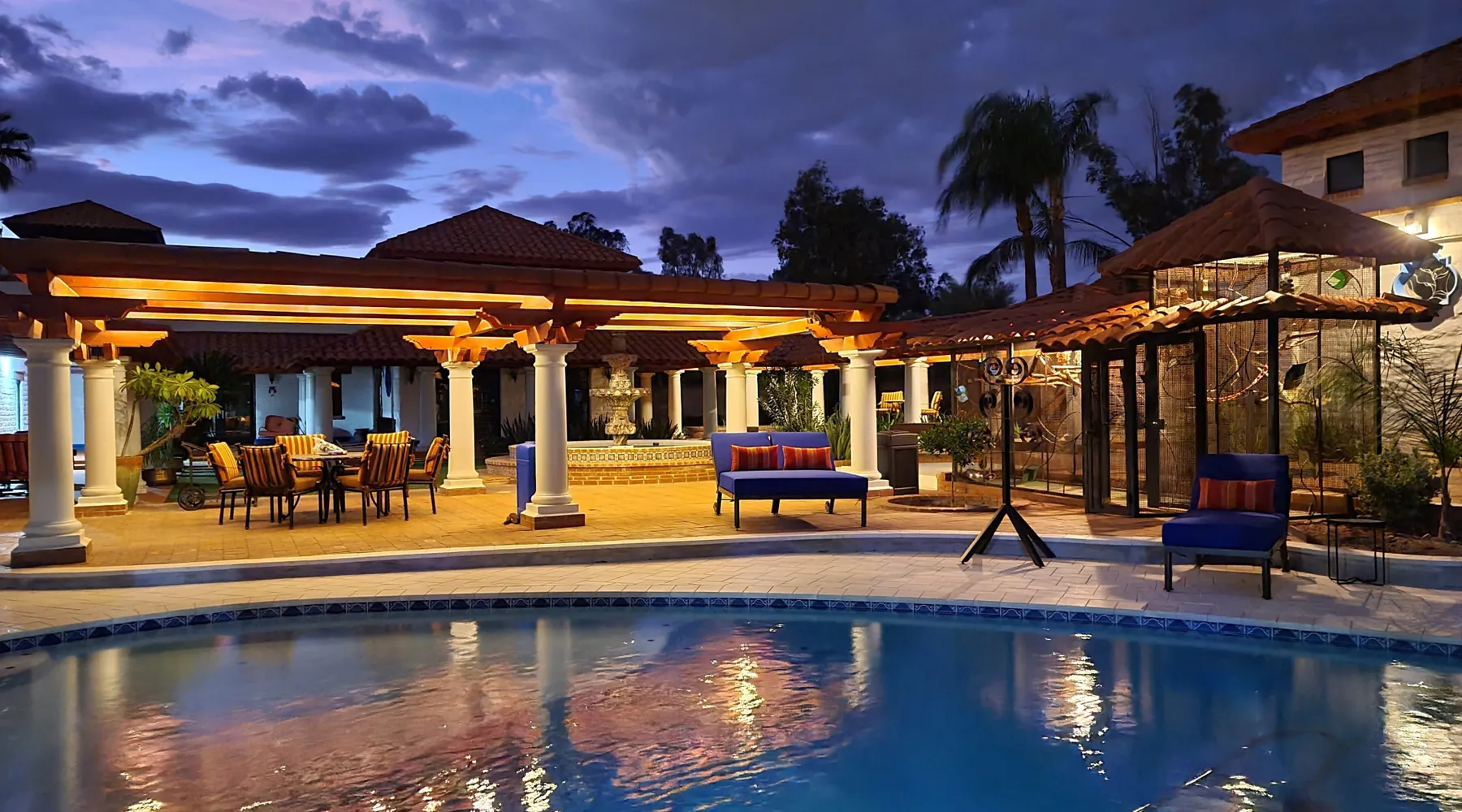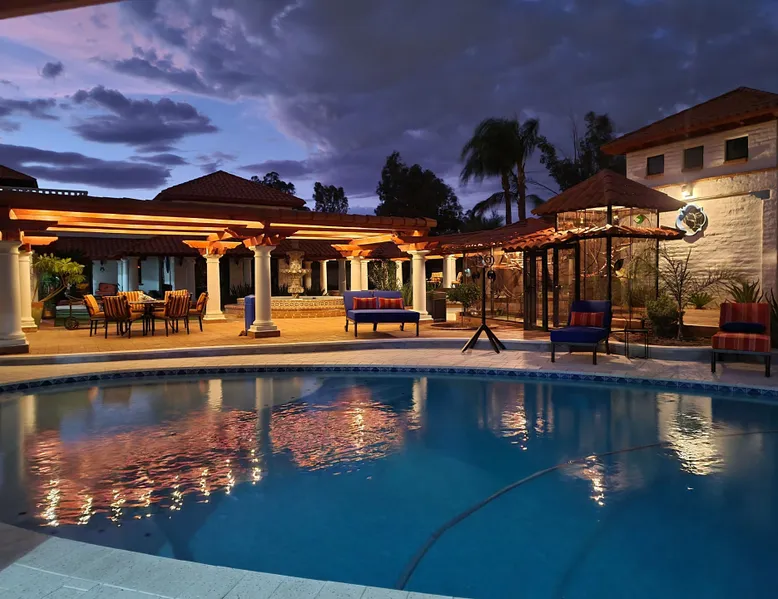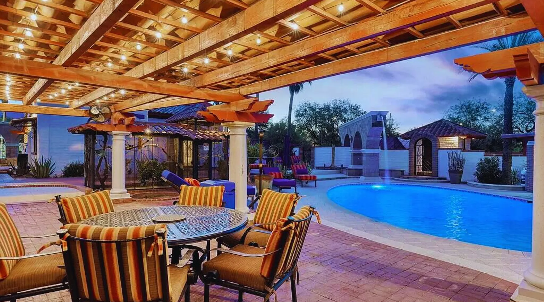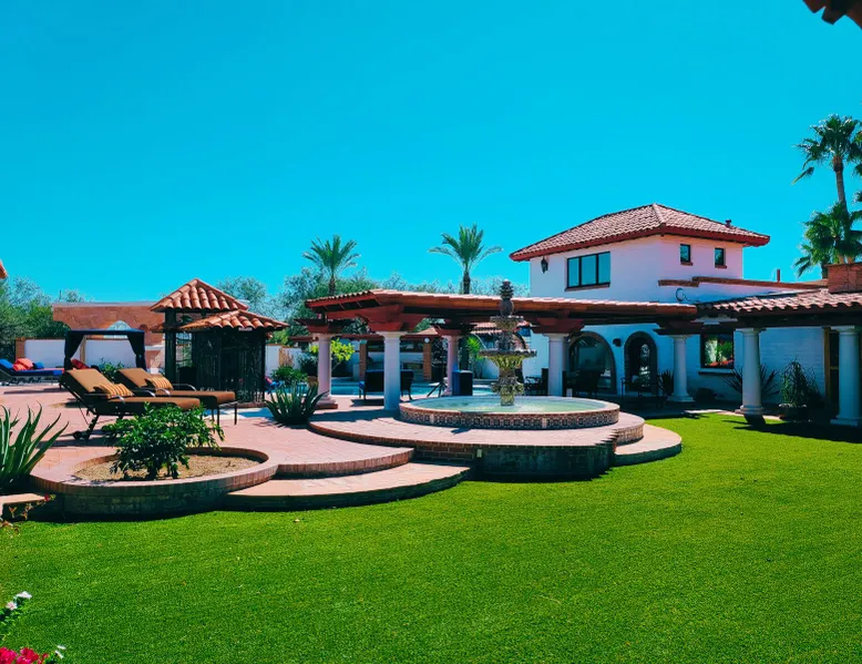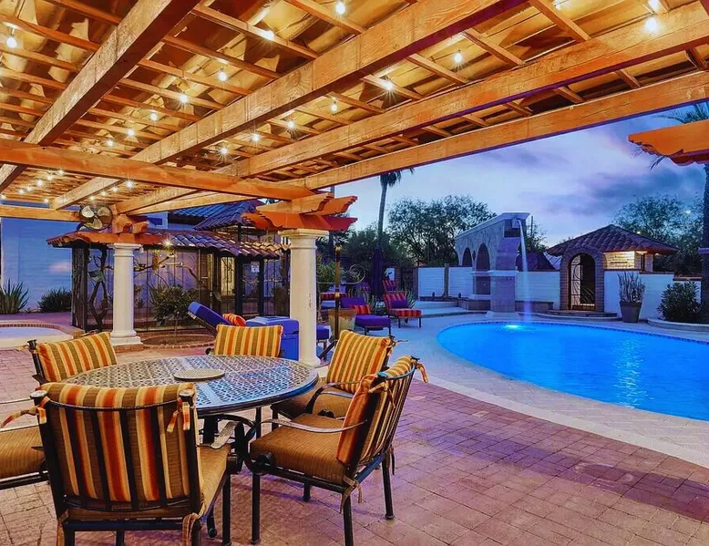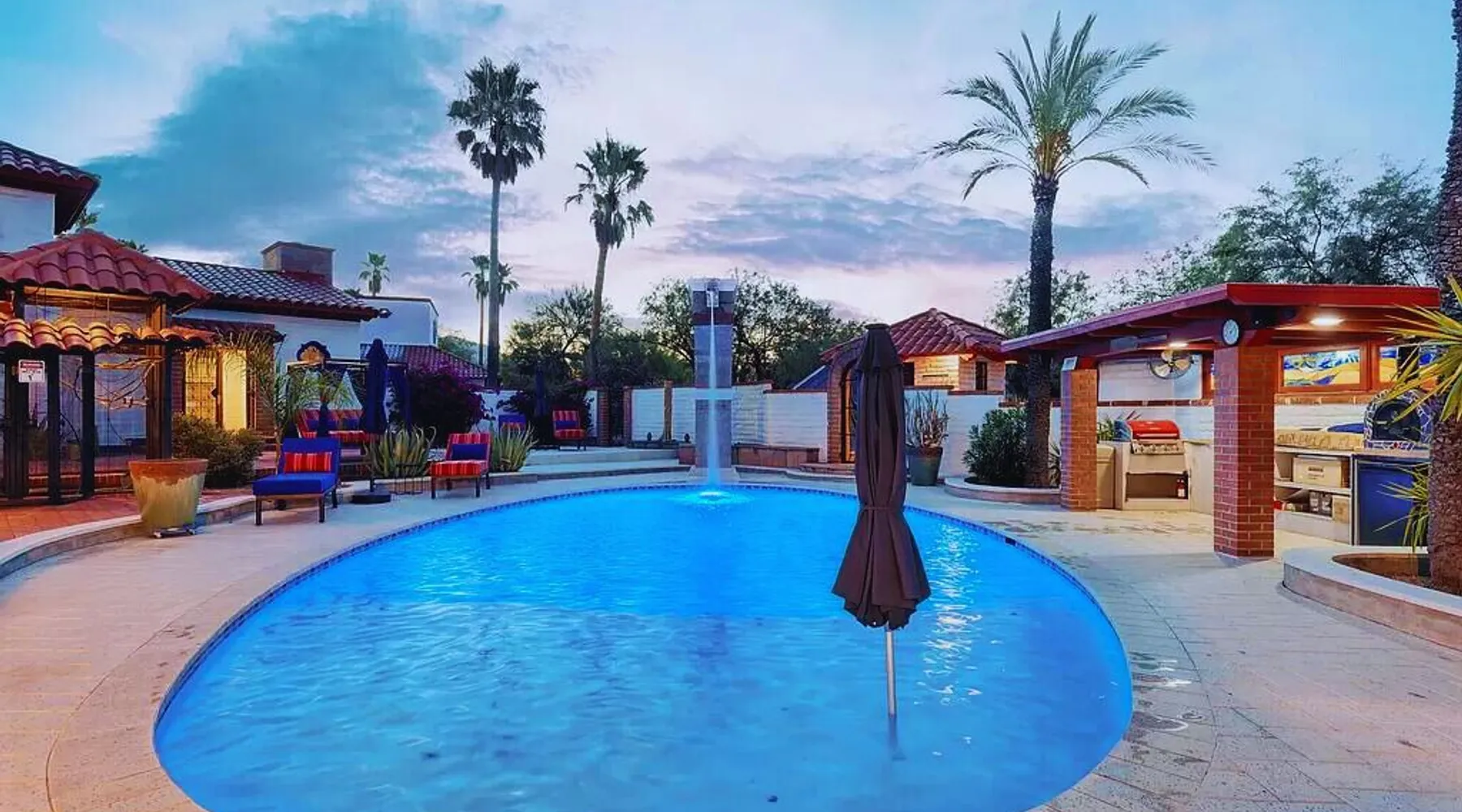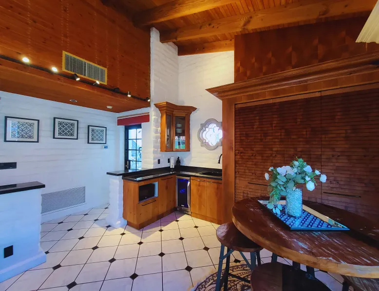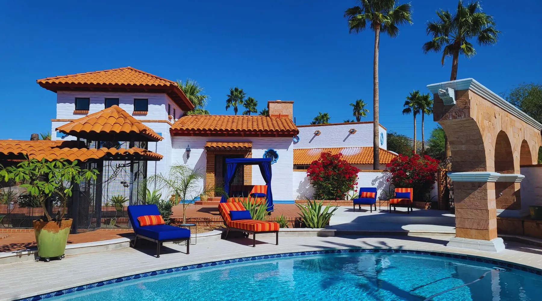 The White Hacienda is a private estate located in sought-after Casas Adobes. Located in the northern metropolitan area of Tucson, the owners are excited to share a rare piece of history with those that appreciate a thoughtfully crafted and timeless "Adobe Estate". This one-of-a kind casita allows you the opportunity to immerse yourself in your own private resort. The luxurious 1 bedroom, 1 bathroom casita offers a mini kitchen with a cooktop, microwave, mini fridge, and quartz countertops. You'll fall in love with the custom mesquite wood finishes throughout the casita and beautiful exposed wood beam ceilings. Did we mention your own private patio to have morning coffee or afternoon high tea? The property features a fully equipped outdoor kitchen(s) with a rotisserie, pizza oven, smoker and grill, large salt water pool with large lagoon fountains, water features throughout the property, and a large, covered patio and Ramada for outdoor living. Other unique features include an aviary for exotic birds, UofA Basketball court, an indoor racquetball court and gym. The property is right off the main road here in Tucson (Casas Adobes), we are within walking distance to the upscale shopping center, Casas Adobes Plaza, a historical retail destination, dating back to 1948 (Casas Adobes is considered to be the first developed suburb of Tucson). This incredible location has it all-walkability to fantastic restaurants, coffee, bars, shops, and more, easy access to world-class golf resorts & country clubs, and access to I-10, the University of Arizona, and downtown Tucson. The following amenities are included with your stay at NO EXTRA charge: - Basketball Court - Racquetball Court - Private Gym - Outdoor Pool Table - Outdoor Kitchen(s) - Outdoor Pizza Wood Oven(s) - Outdoor Pool - Cabana The total square footage of the casita is 763 square feet *** Please note that renting the casita does not include hosting events on the property. While we understand that our location and property can be a beautiful backdrop for events, we would like to emphasize that event hosting is completely separate from casita rental. We kindly ask that you do not assume that renting our casita entitles you to host an event on the property. If you are interested in hosting an event at our location, please contact us to discuss further arrangements. We will be happy to work with you to find the perfect solution for your event needs.*** More pictures coming soon, we are still getting the property set-up... **The property has been and will continue to be updated**